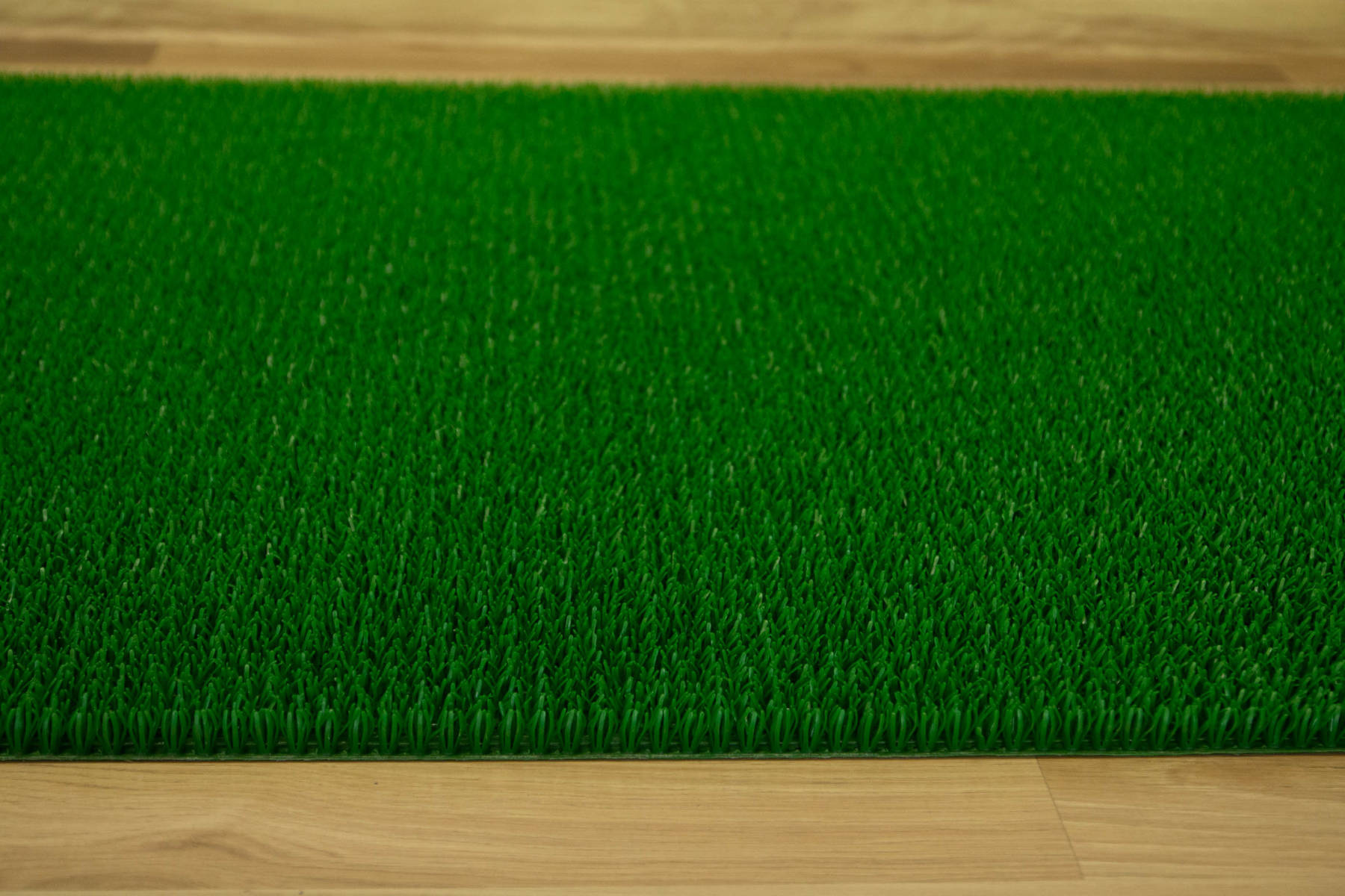 - Wycieraczka Astroturf o trwałym, szorstkim funkcjonalnym runie w kolorze żywej zieleni - idealna do zastosowania na zewnątrz przed domem, urzędem, sklepem przez cały rok.