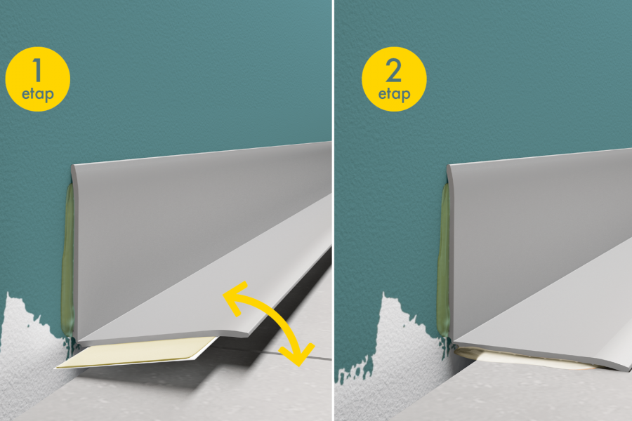 Po zdjęciu papieru ochronnego przykleić listwę mocno dociskając do podłoża.
