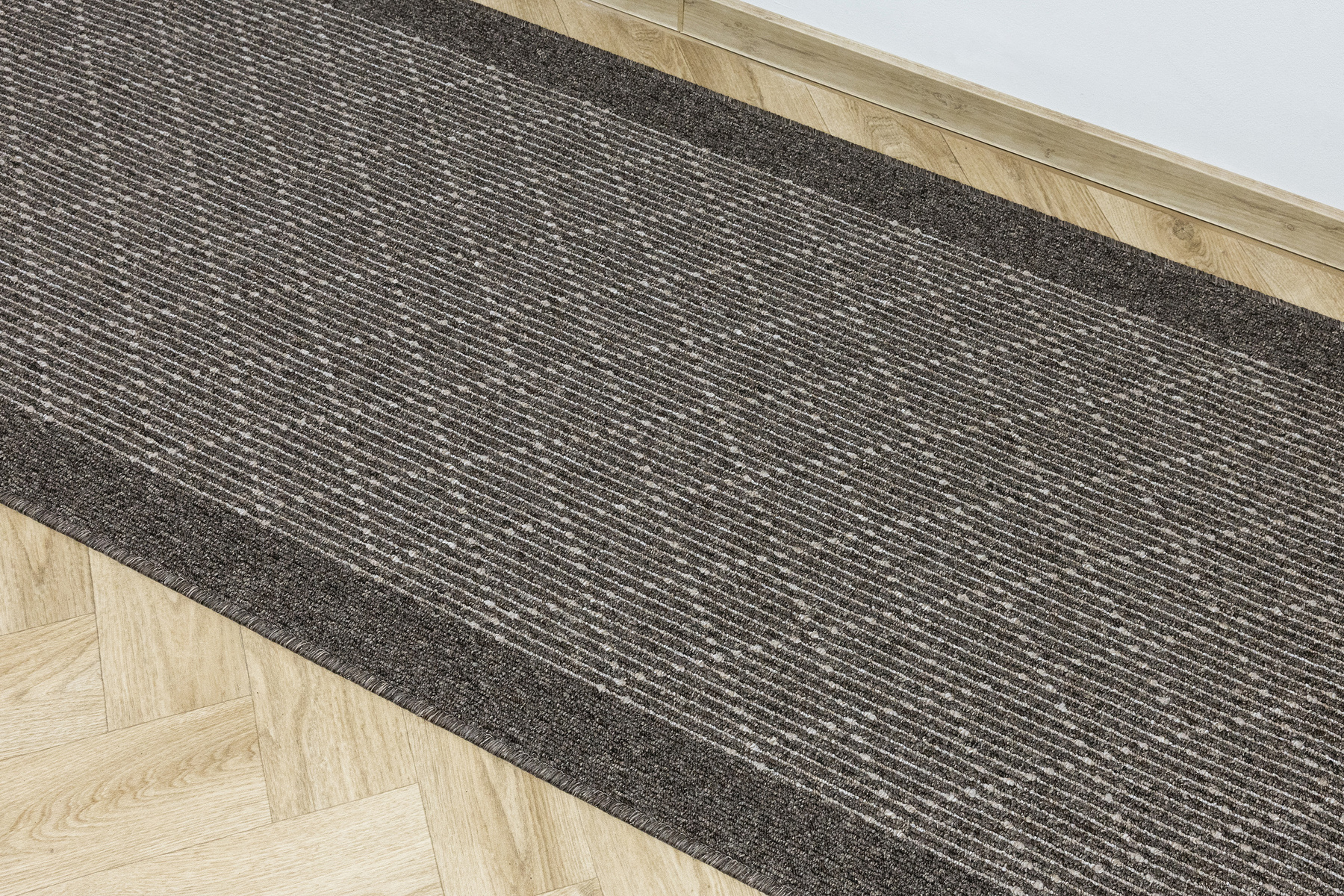 - Antypoślizgowy chodnik pętelkowy Boulevard o runie ze wzorem geometrycznym z motywem rombów w odcieniach brązu i beżu oraz filcowanym spodem Eco Grip o antypoślizgowych właściwościach.