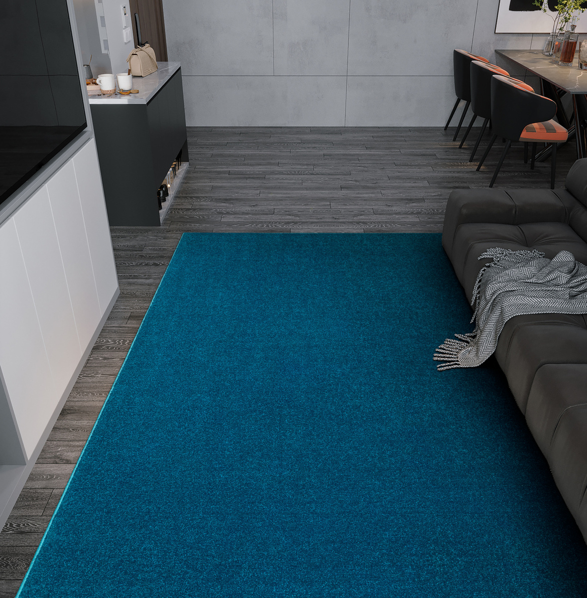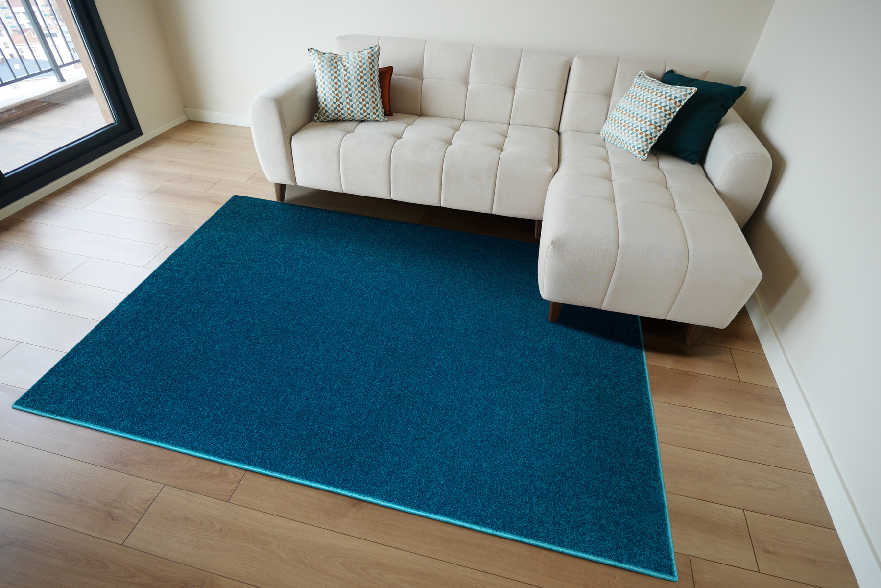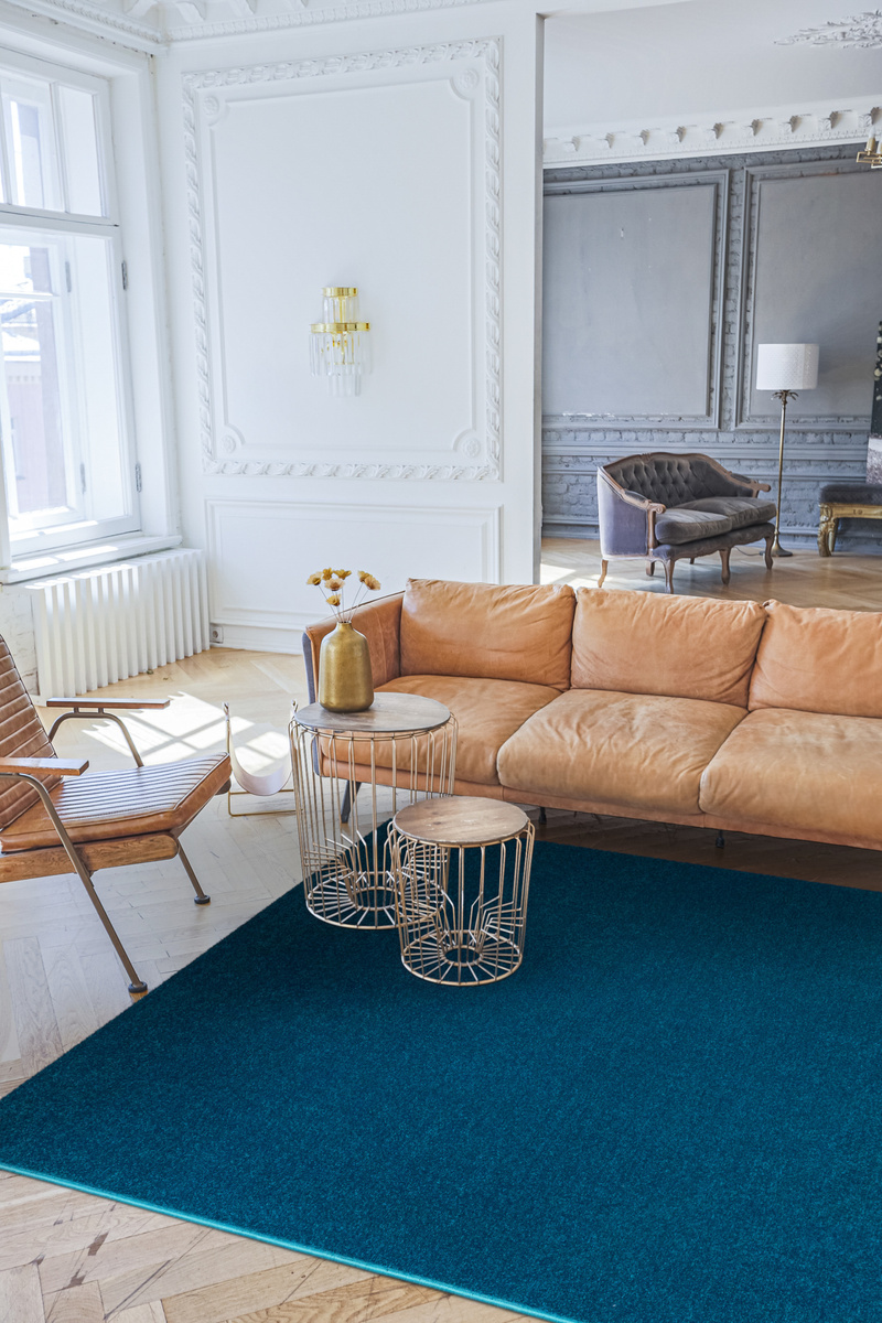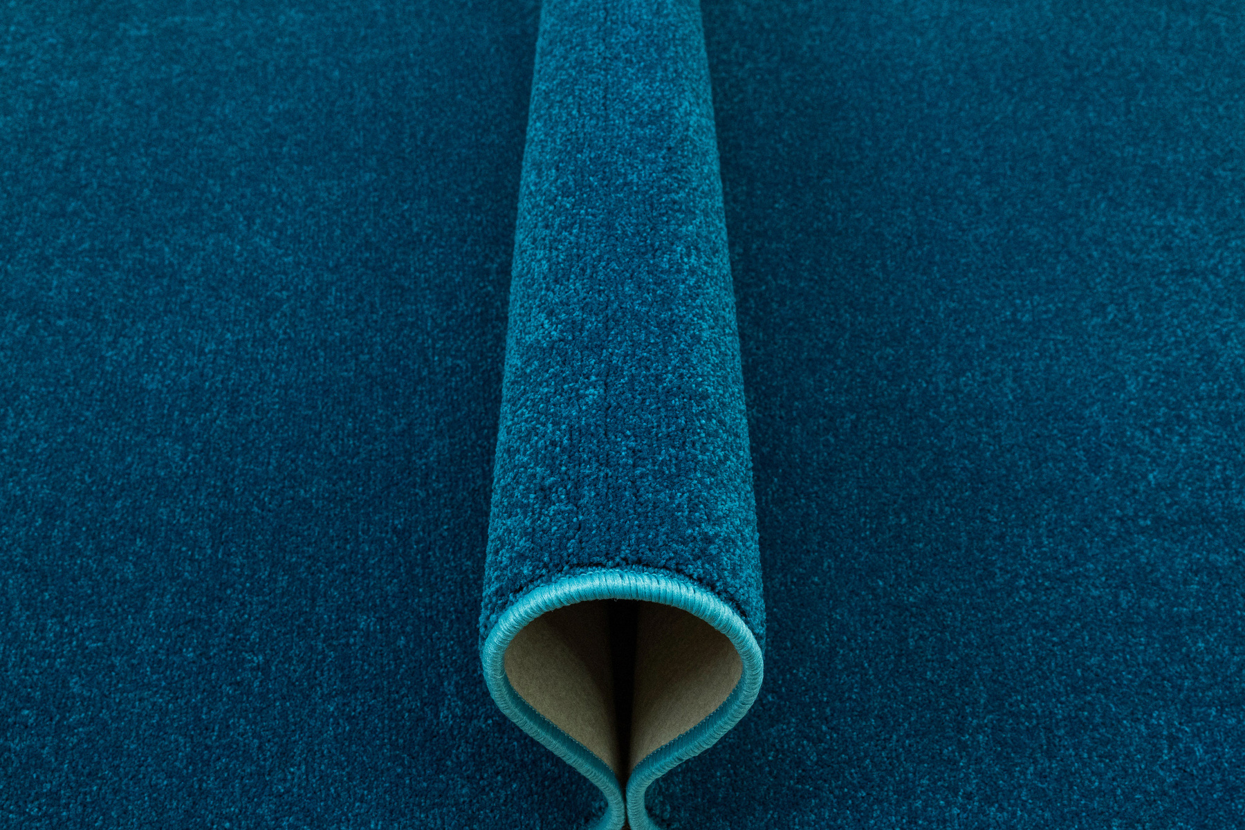 - Miękka i przyjemna w dotyku wykładzina dywanowa Carousel z runem ciętym typu saxon w nasyconym odcieniu turkusu i filcowym spodem.