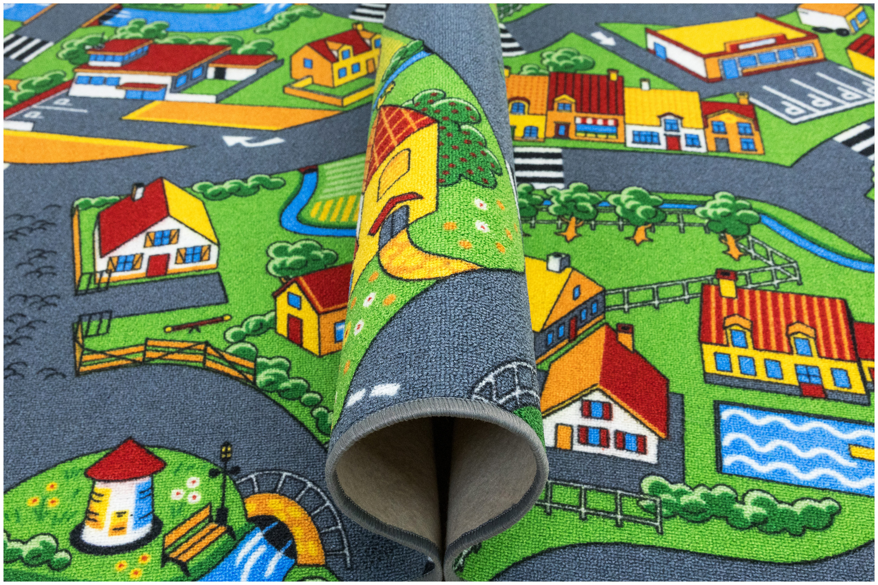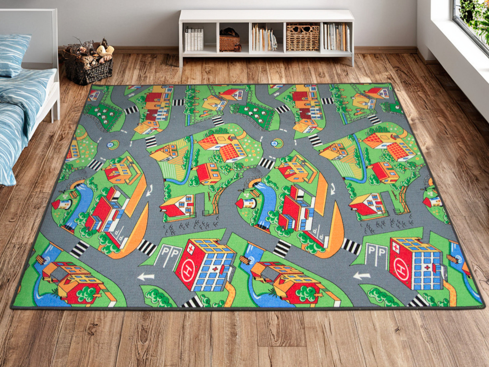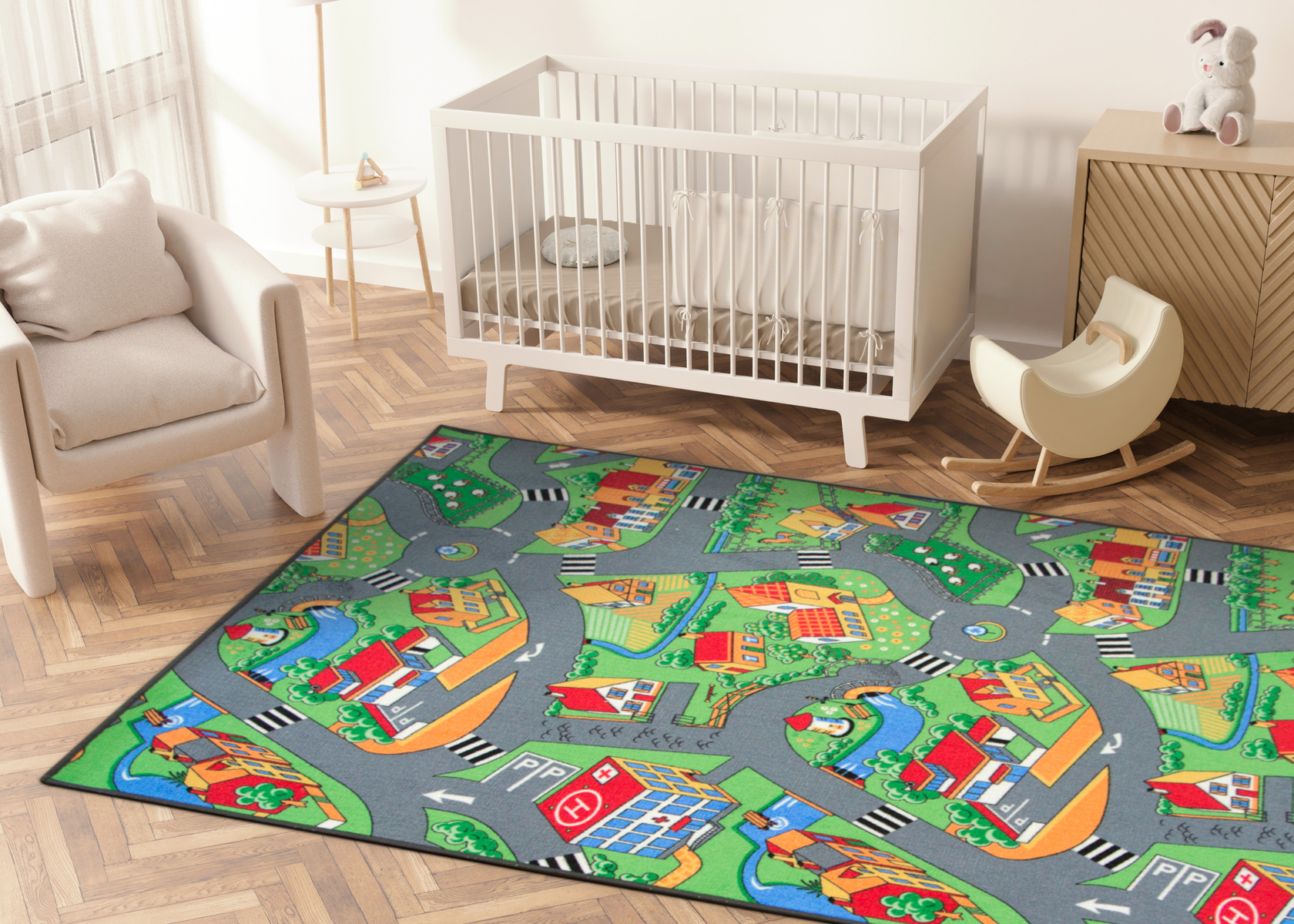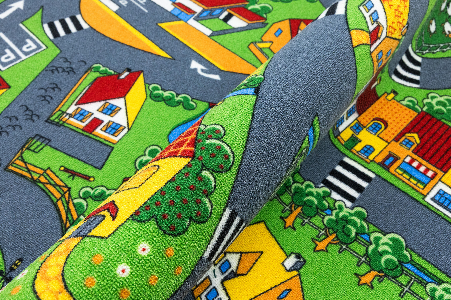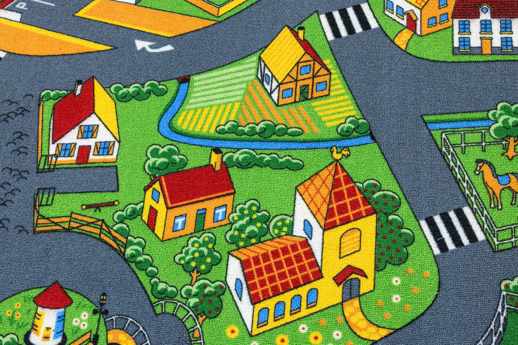 Uliczna wykładzina sprawi, że w pokoju Twojego dziecka zagości radosny klimat i piękno barw.  Wykładzina stanowi bardzo wygodne miejsce do bawienia się lub odpoczynku.