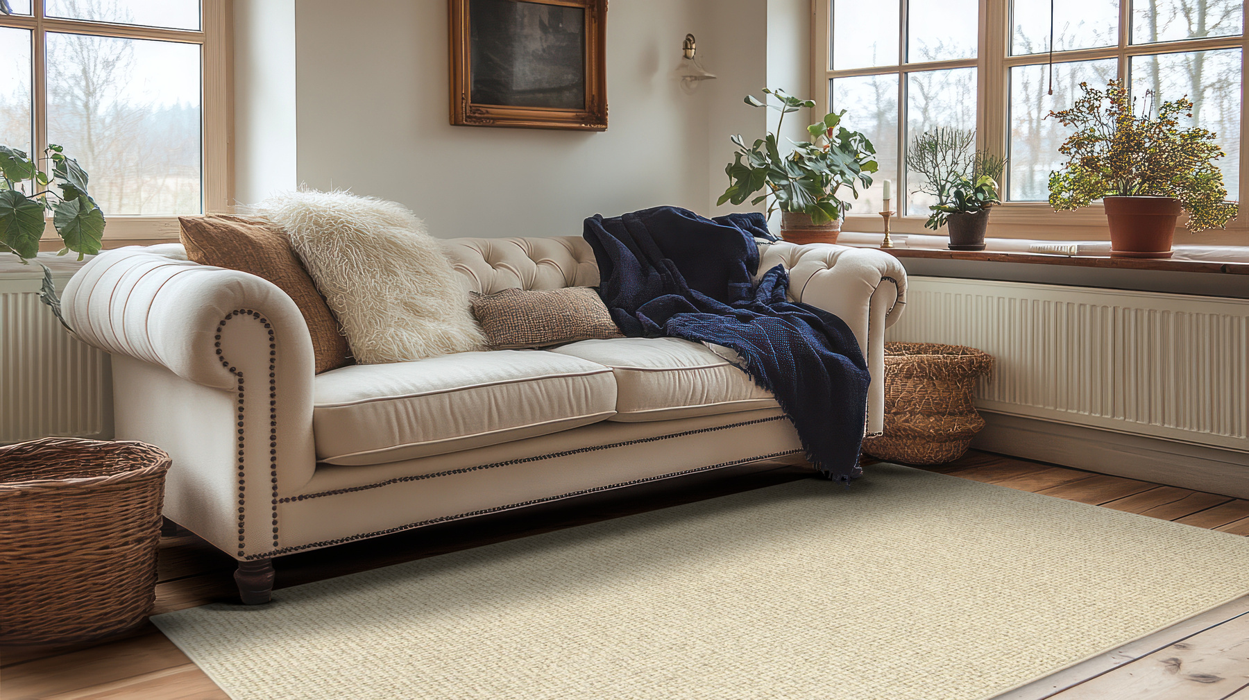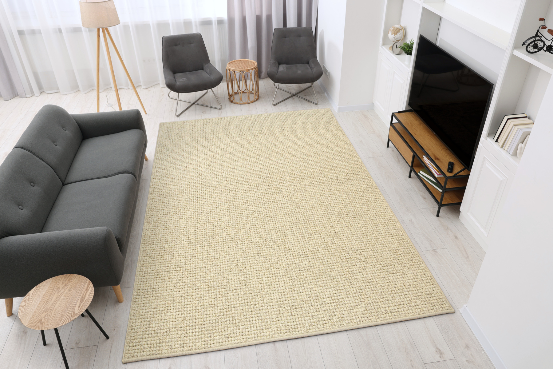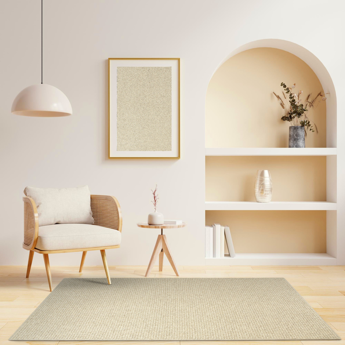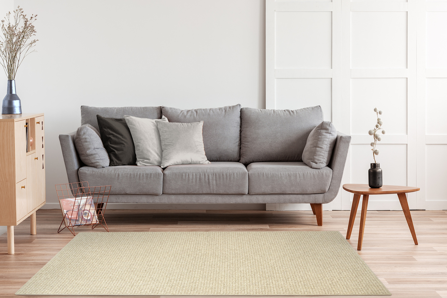 • Dywan pętelkowy Daytona z niespotykanie grubym splotem supełkowym w jasnych odcieniach kremu, beżu i szarości i spodem wykończonym filcem