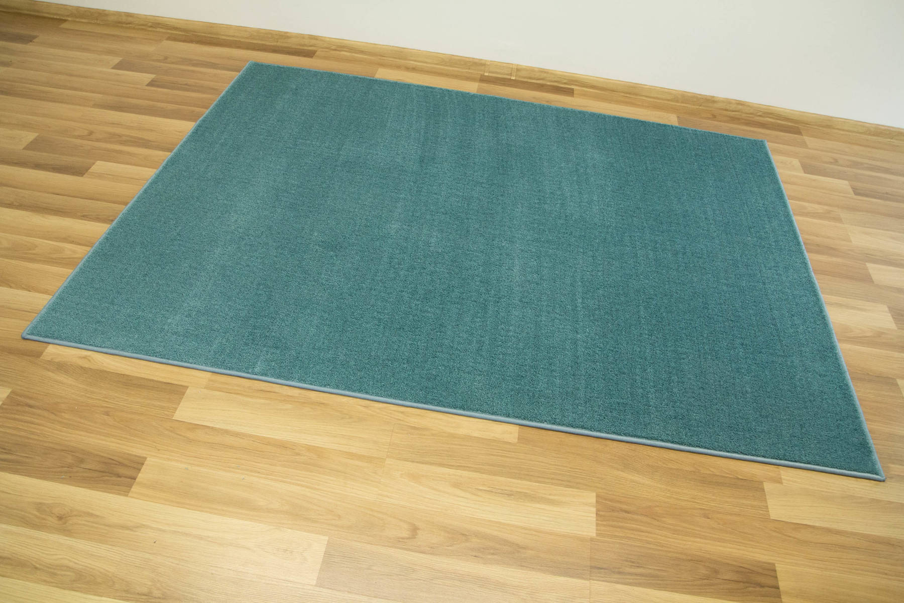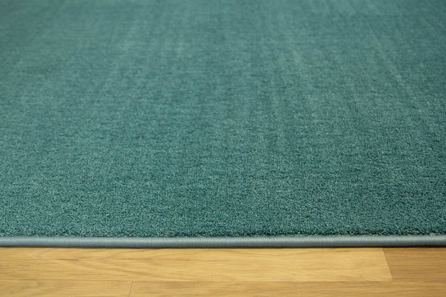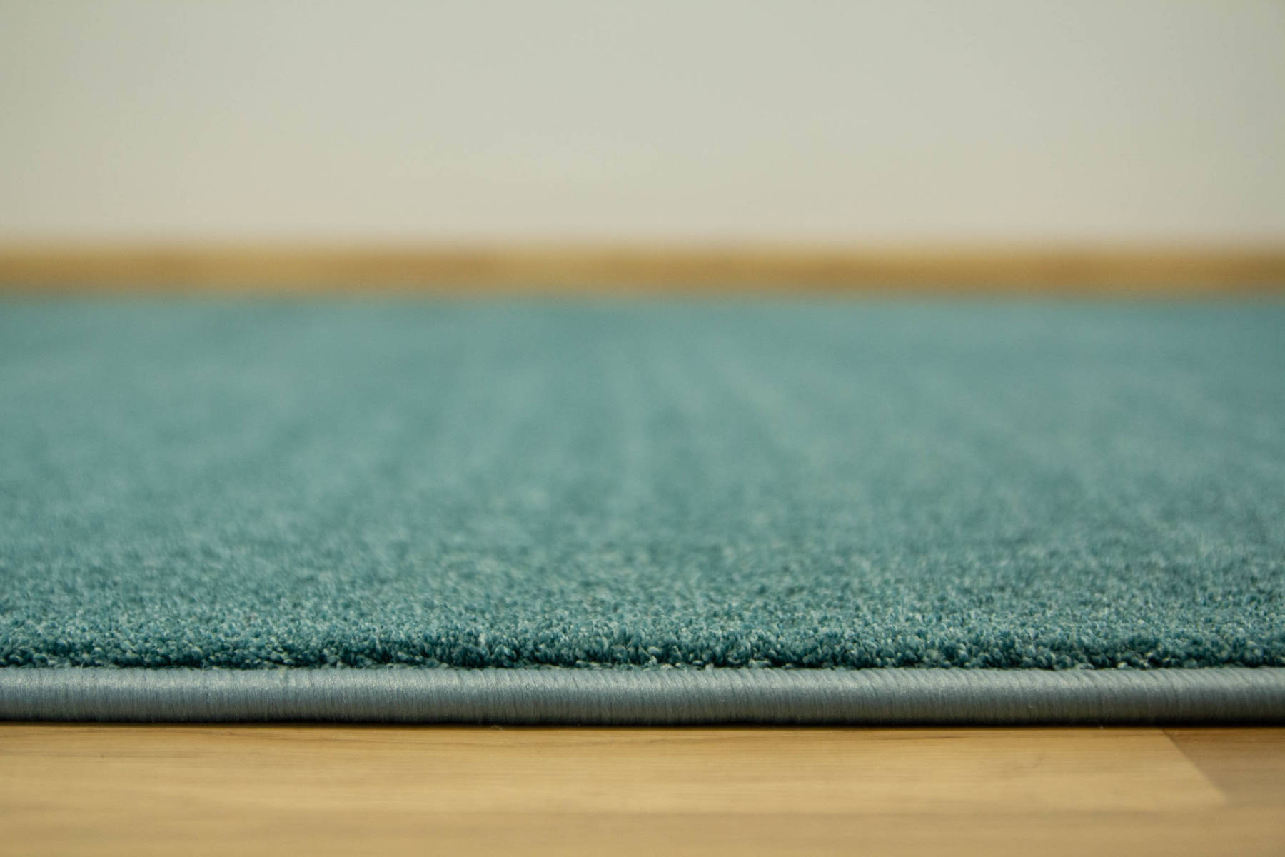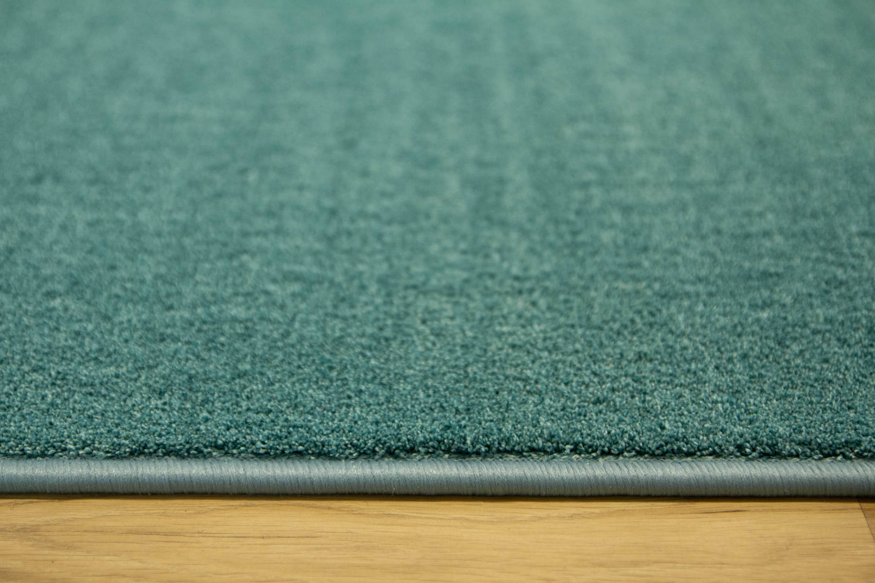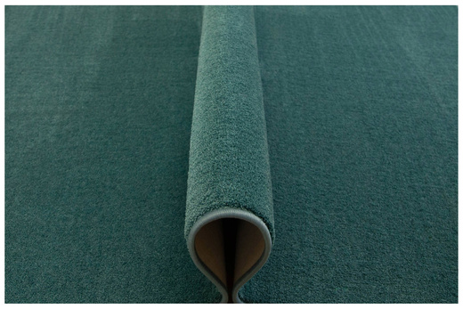 - Dywan z wykładziny Java z miękkim runem ciętym typu saxon w melanżu odcieni turkusu oraz spodem wykończonym filcem.