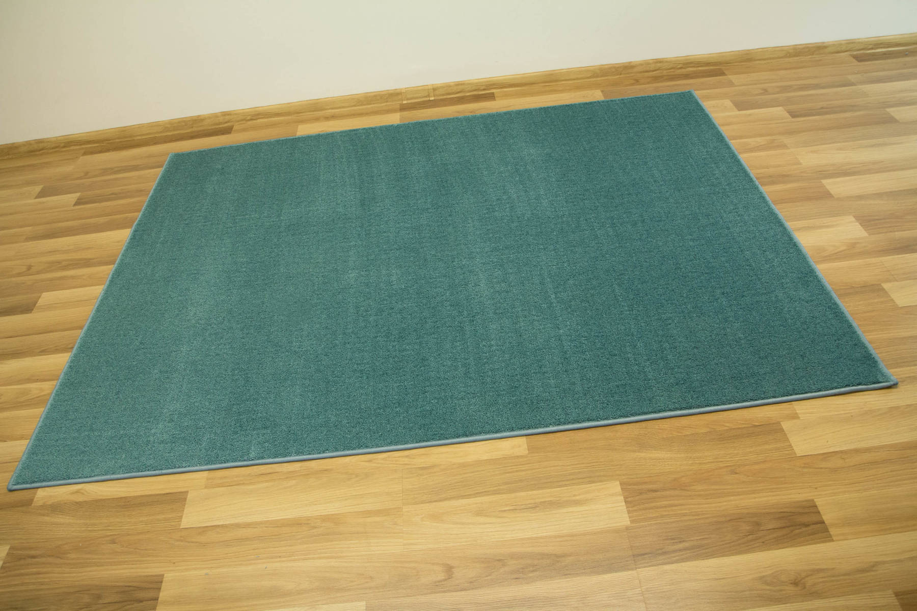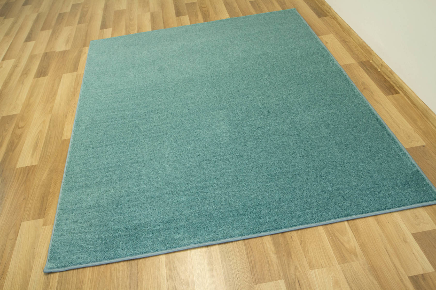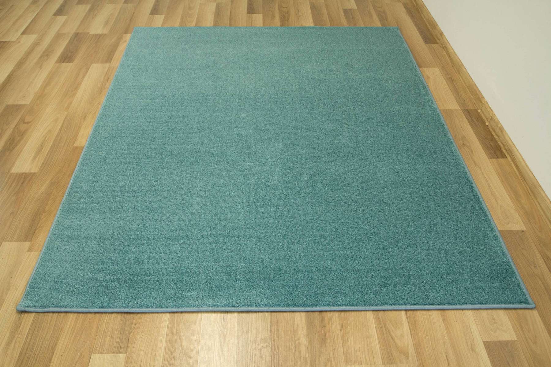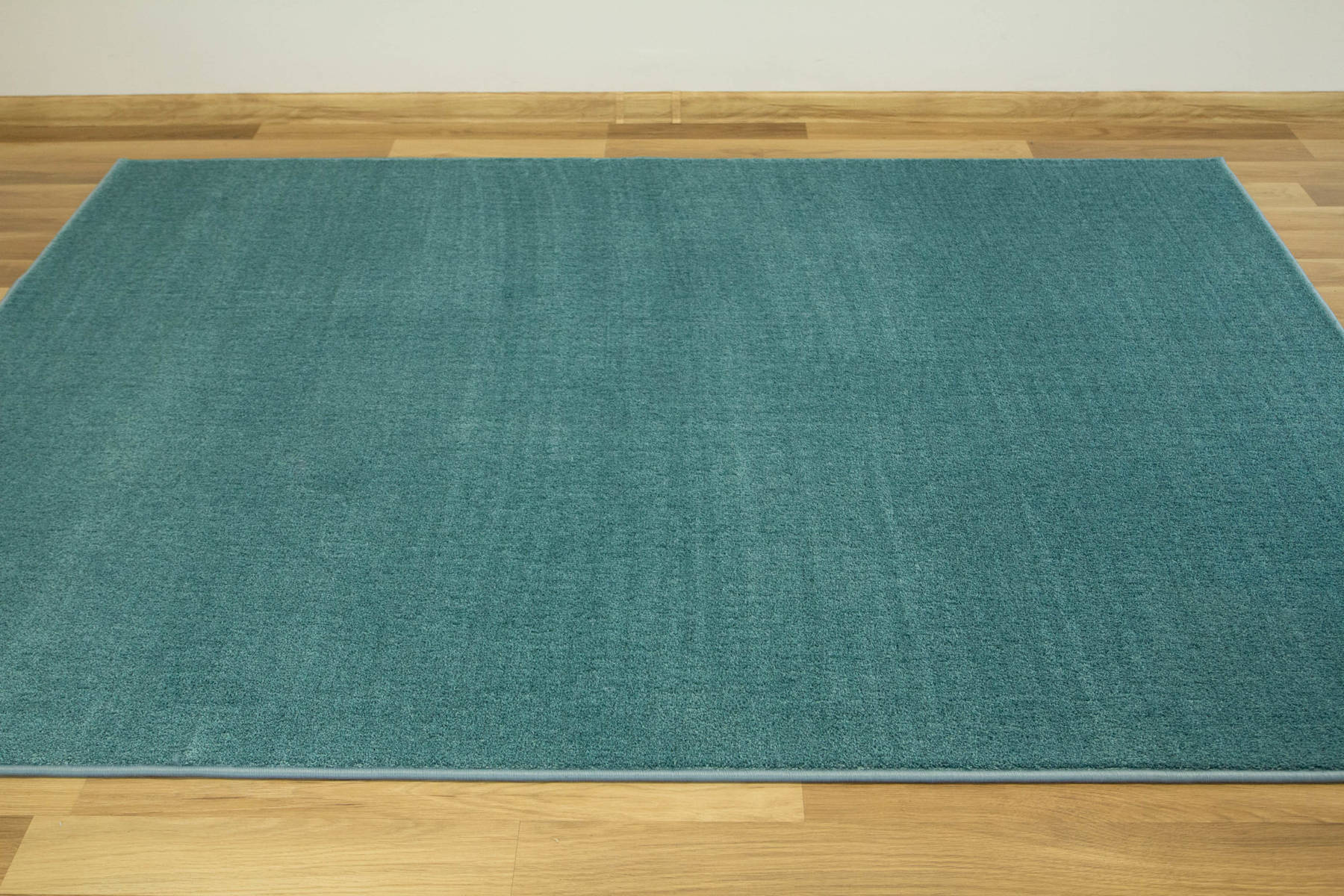 - Dywan z wykładziny Java z miękkim runem ciętym typu saxon w melanżu odcieni turkusu oraz spodem wykończonym filcem.