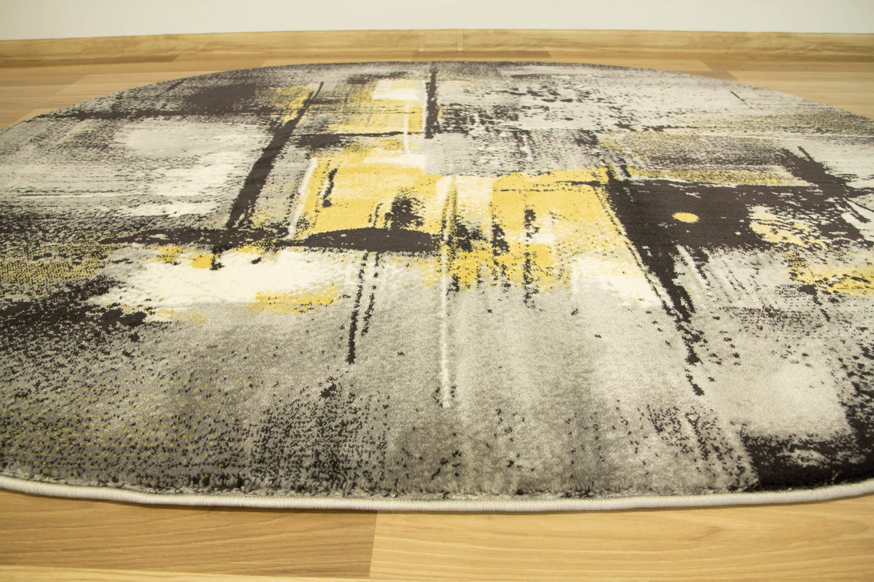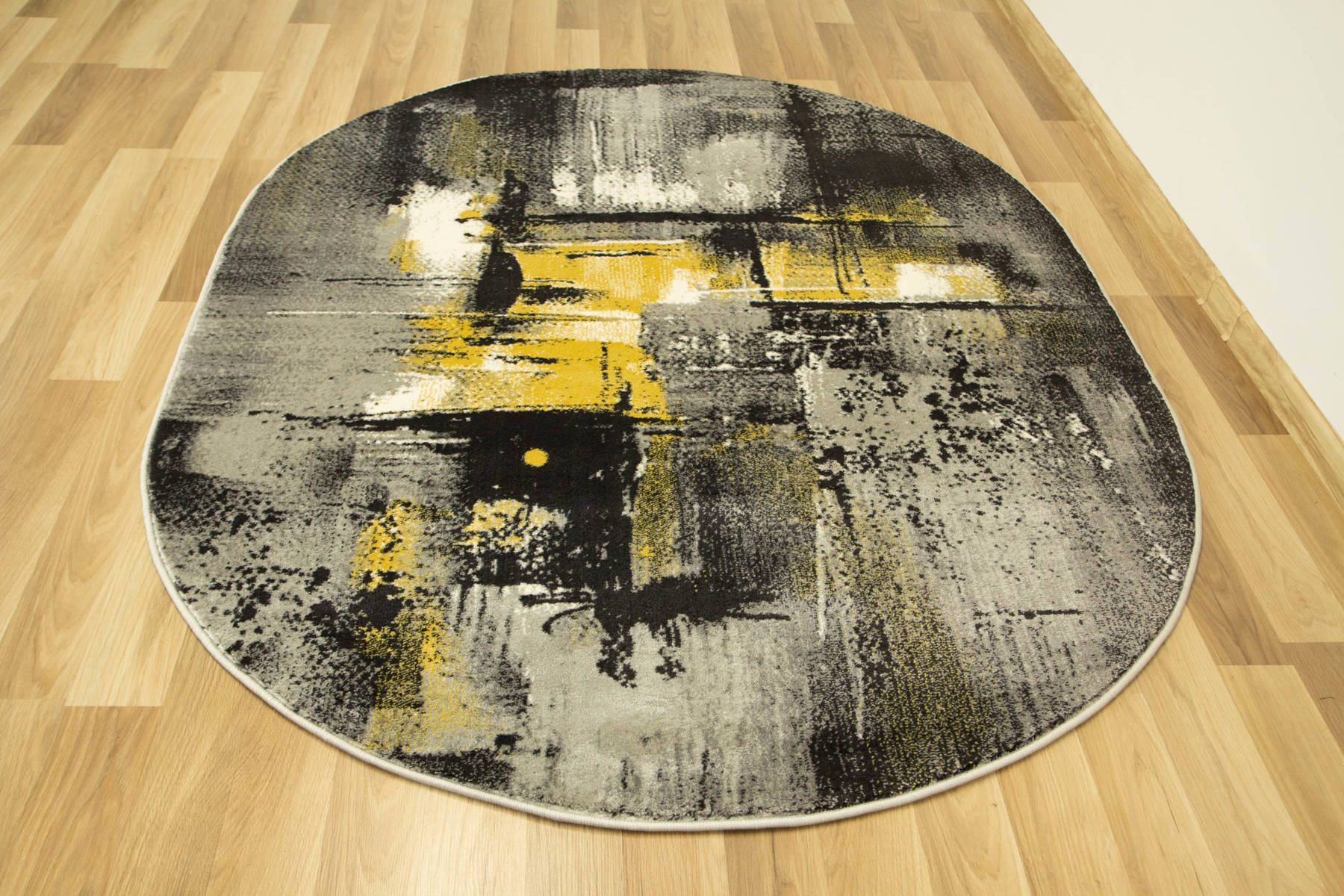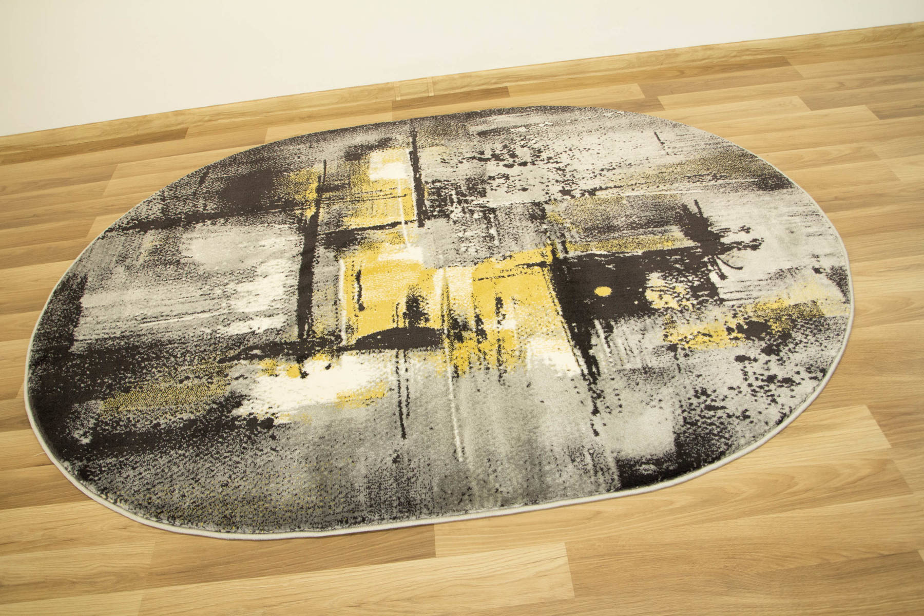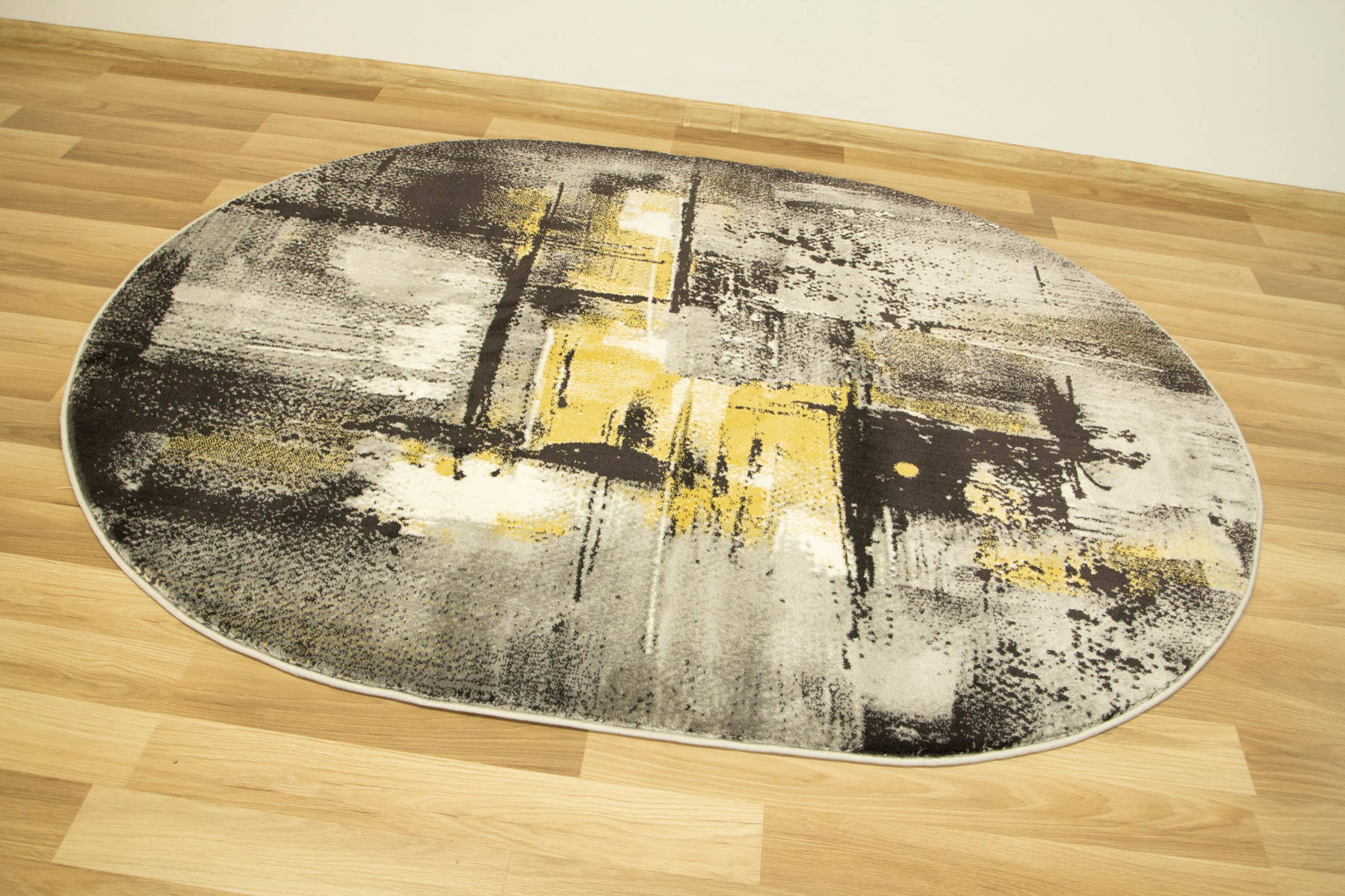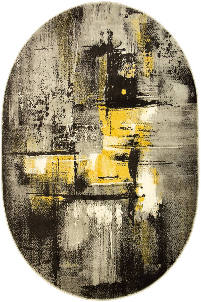 Owalny Dywan Victoria 7657A grey/antracyt O Abstrakcyjny Antrayt Żółty Krem