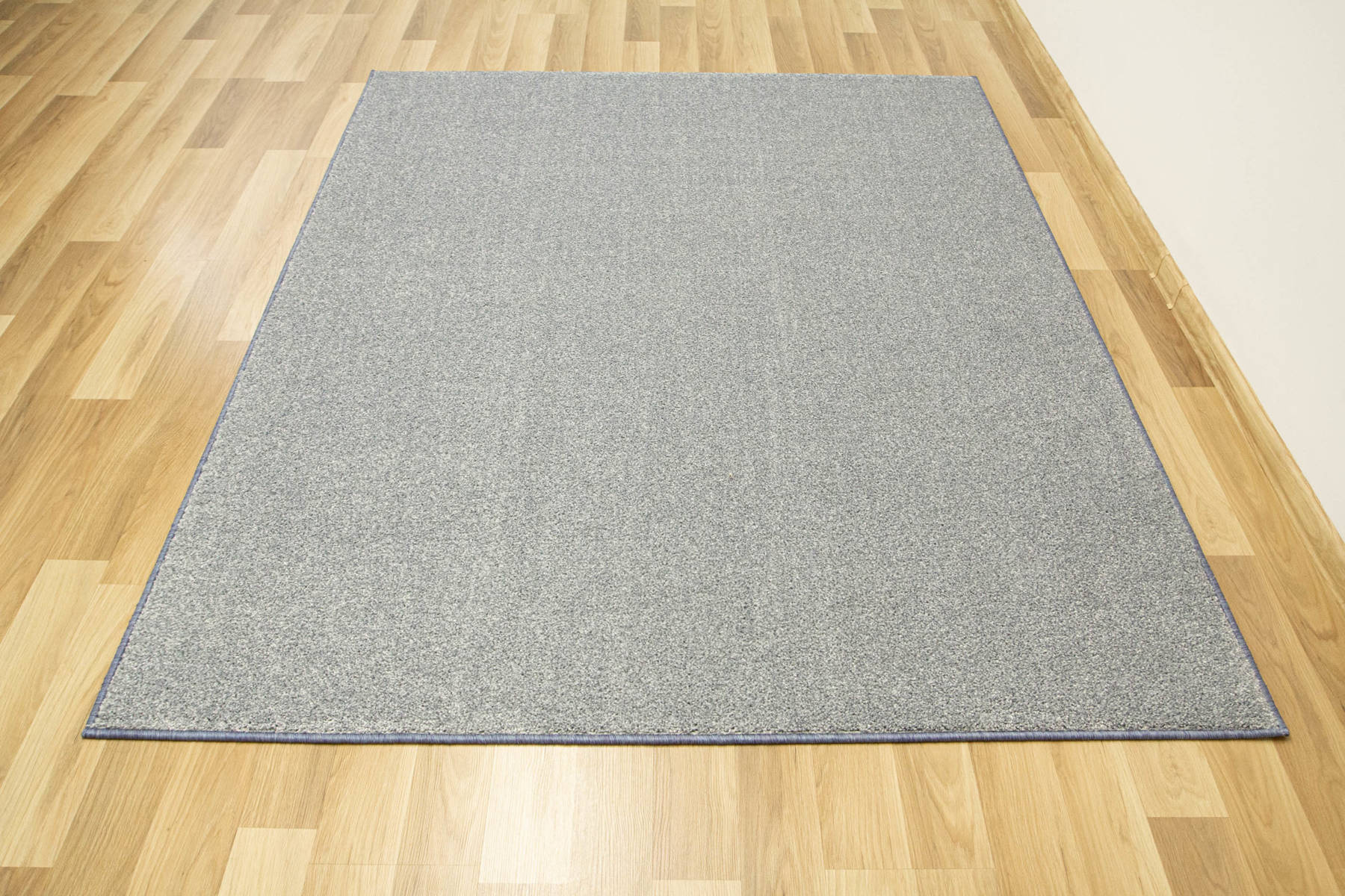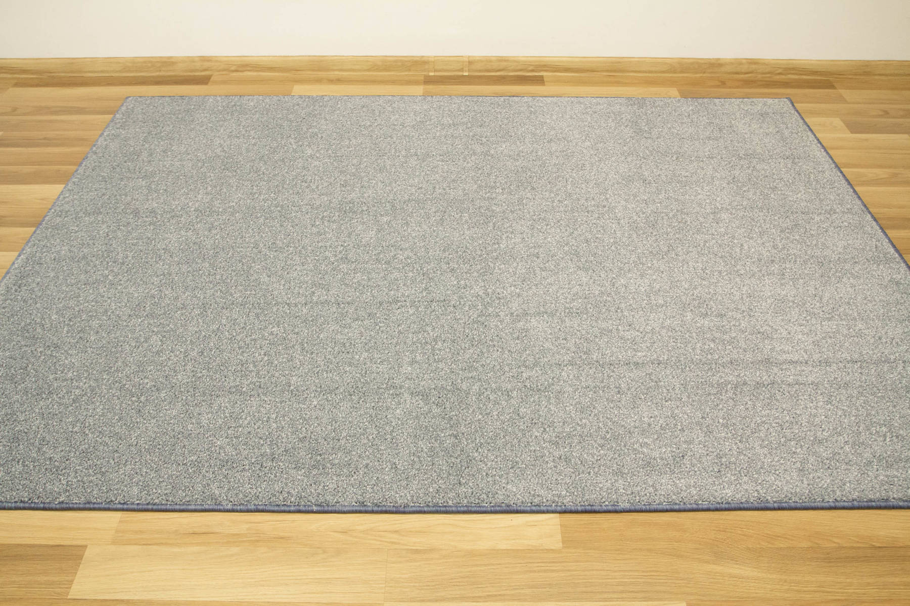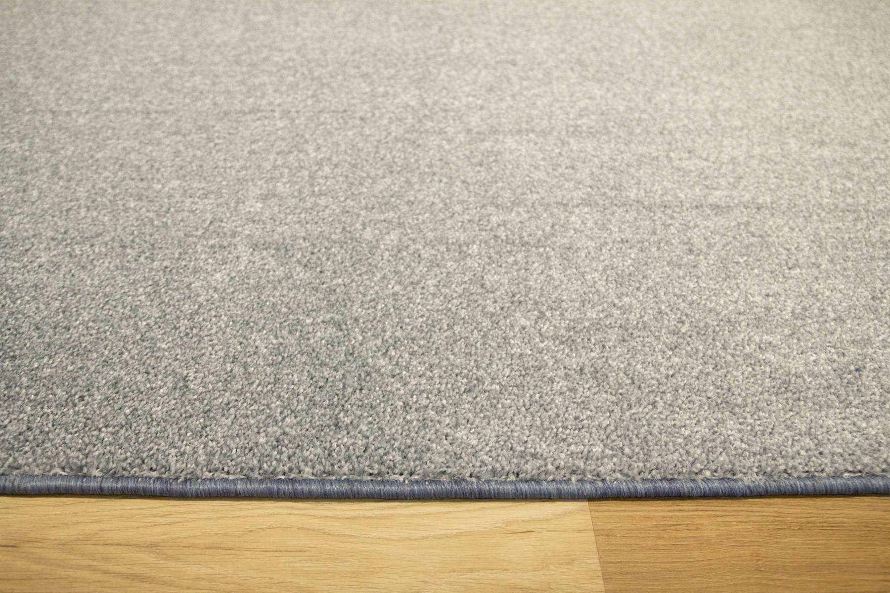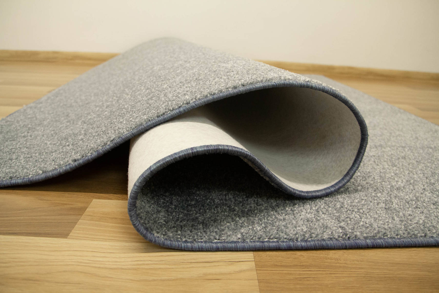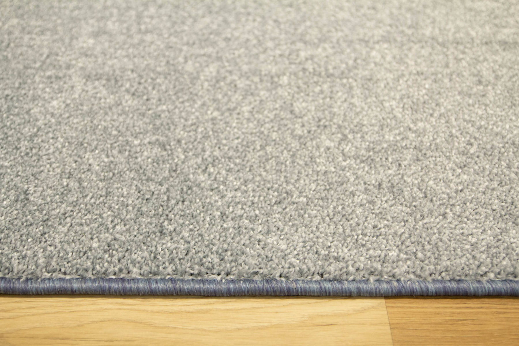 - Miękki i przyjemny w dotyku dywan z wykładziny Envoy z runem w jasnym odcieniu stalowo niebieskim z lekkim połyskiem i spodem wykończonym filcem.