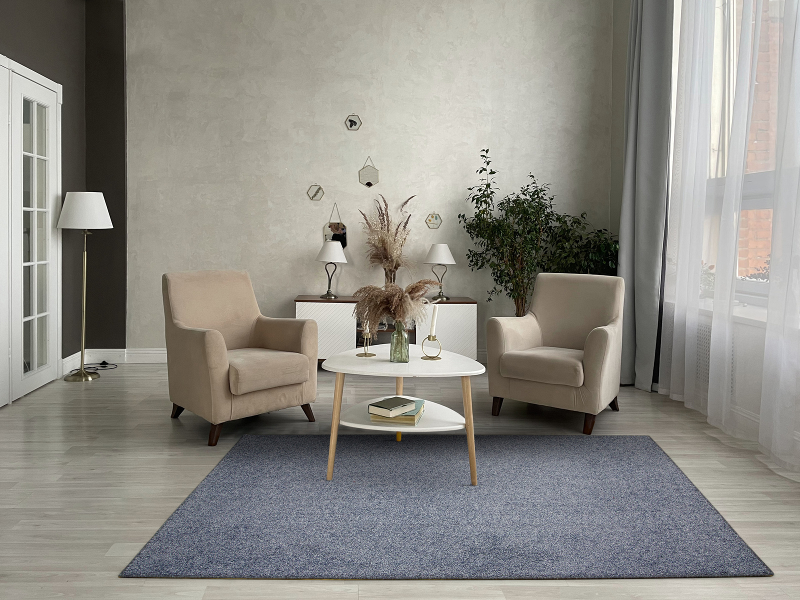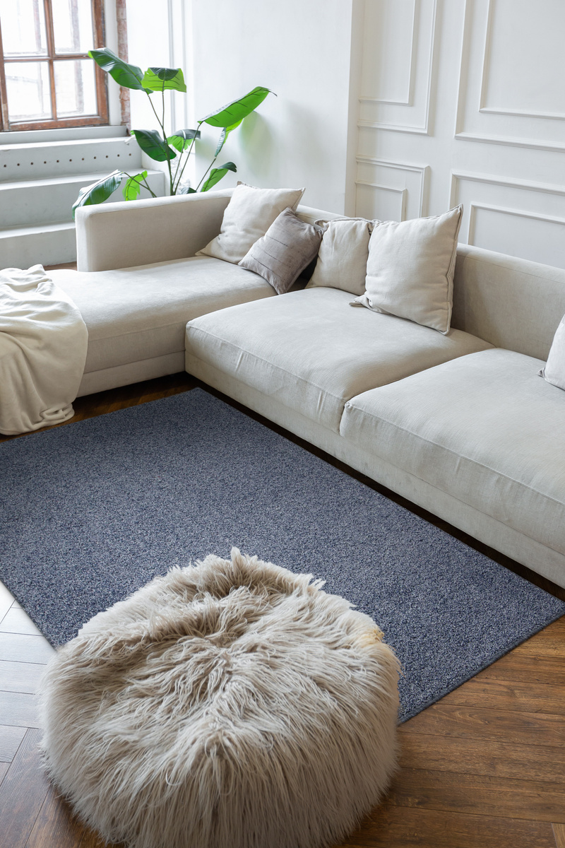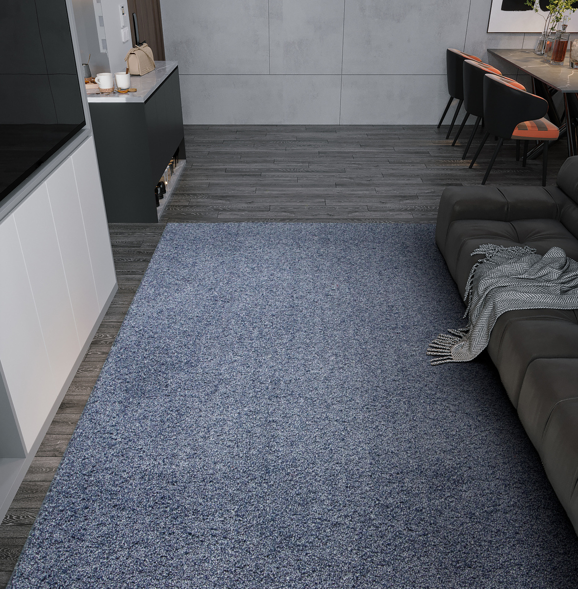 - Miękka i puszysta wykładzina Sphinx-Special typu SHAGGY z runem w melanżu odcieni niebieskiego i spodem wykończonym filcem.
