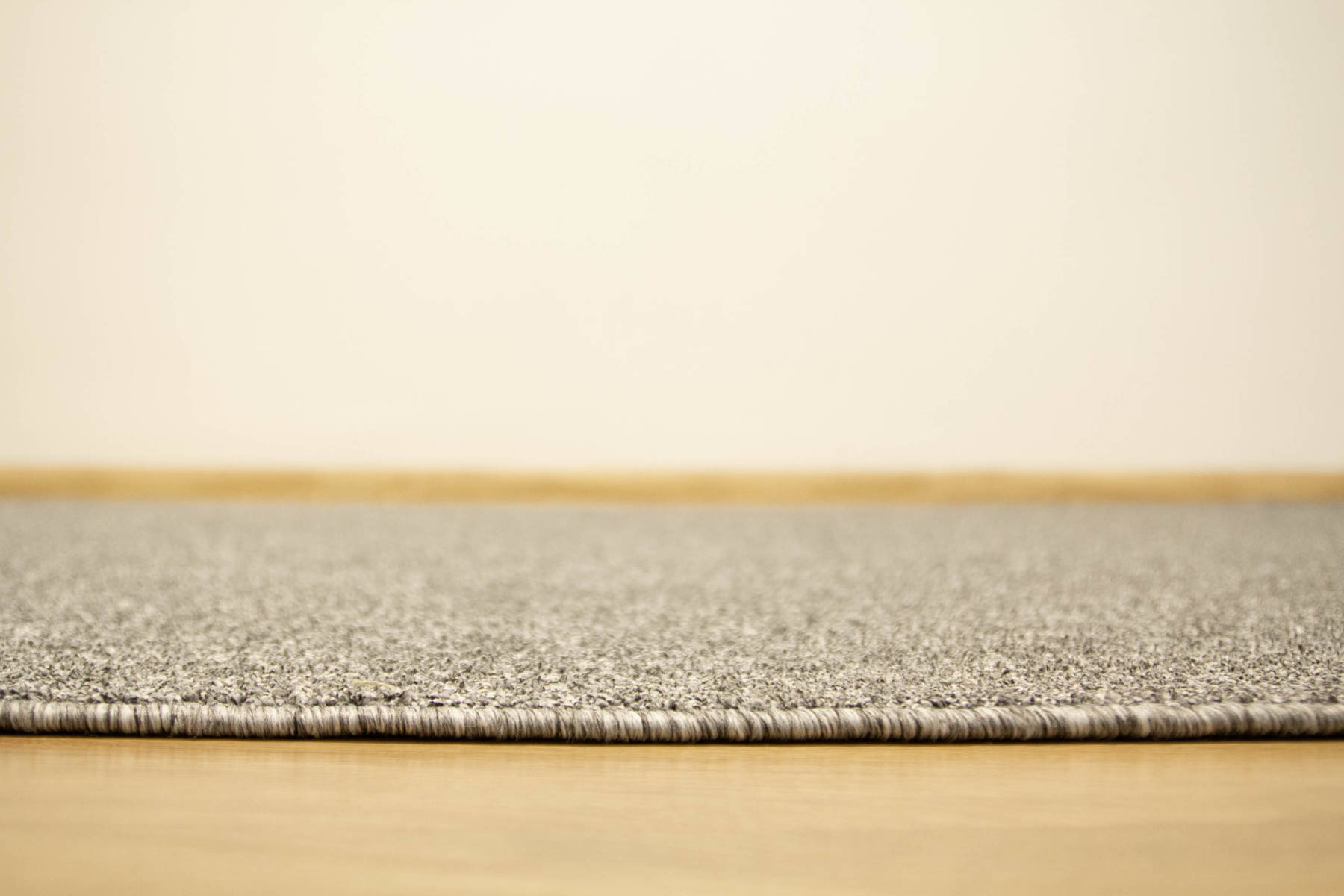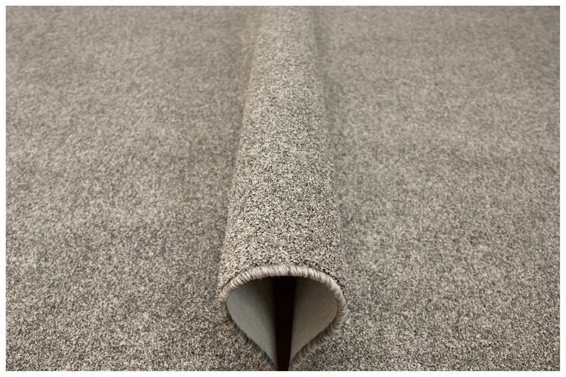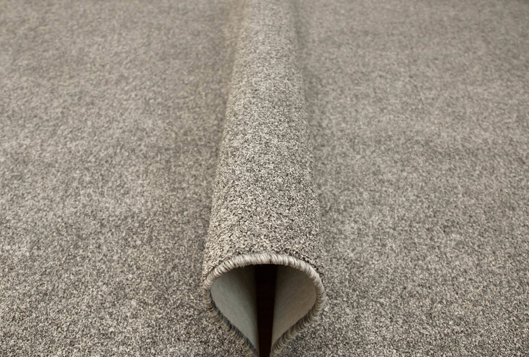 - Miękka, lśniąca wykładzina dywanowa Tripoli z runem w drobniutkim melanżu odcieni szarości, srebrnego i grafitu oraz spodem podszytym filcem.