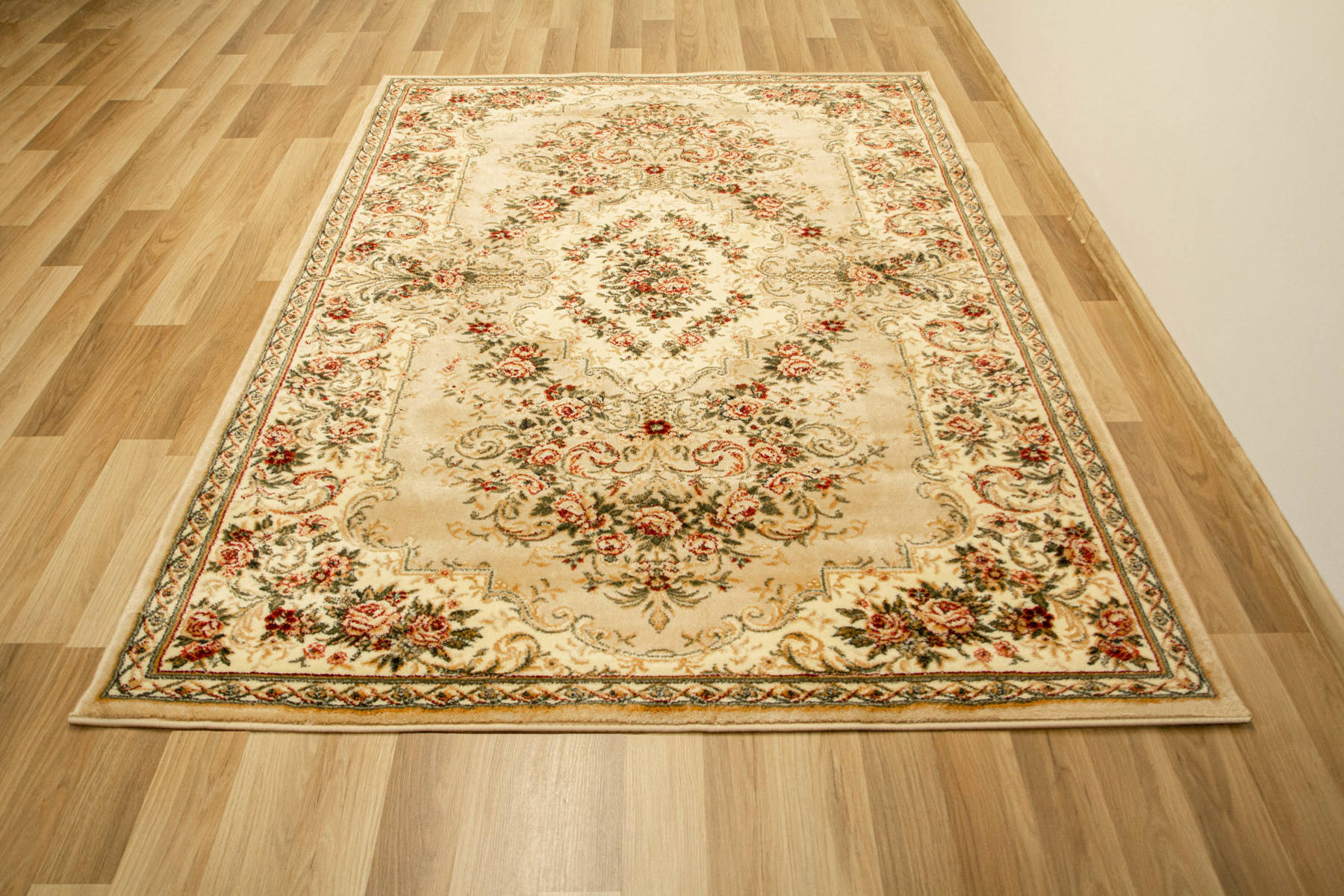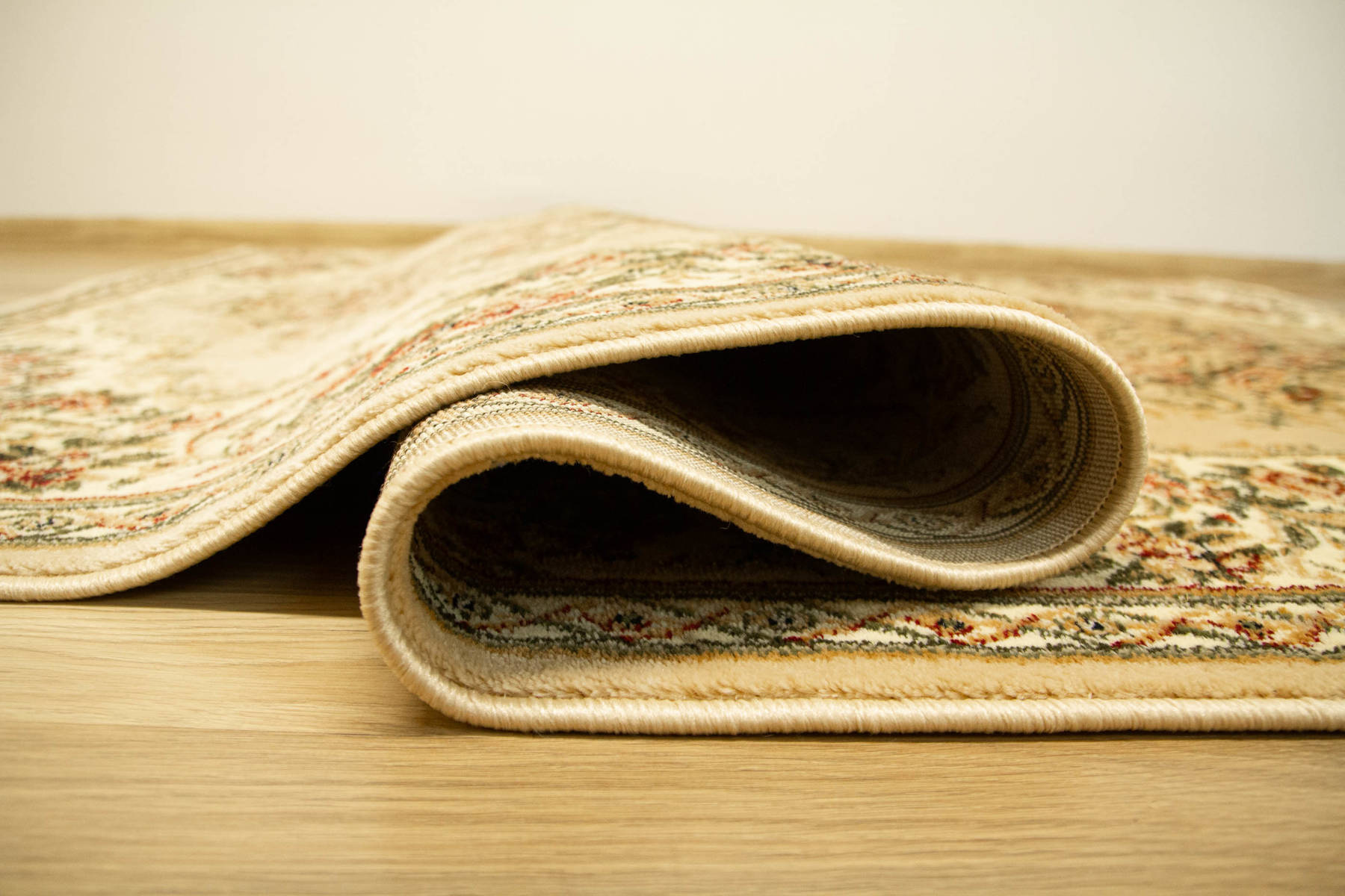 • Ozdobny dywan Lotos z klasycznym, ornamentowym wzorem z motywem kwiatowym w odcieniach kremu, beżu, bordo, zieleni