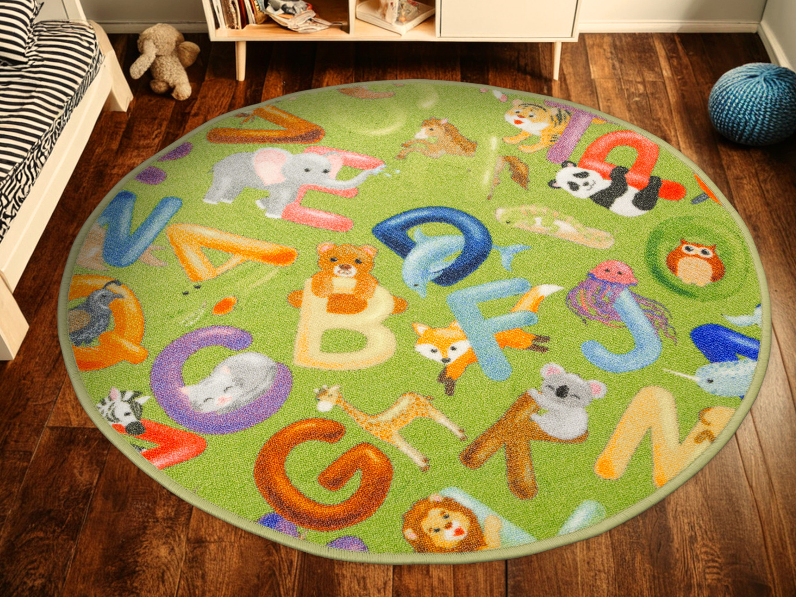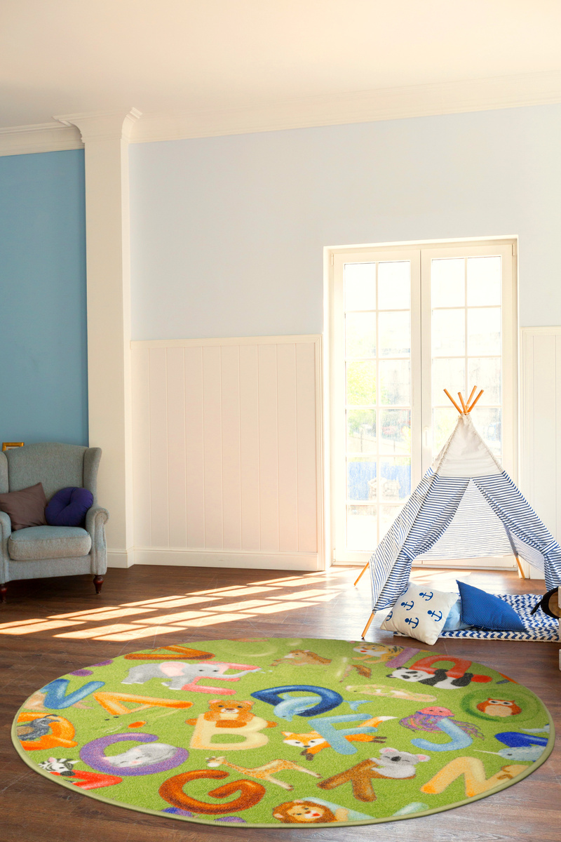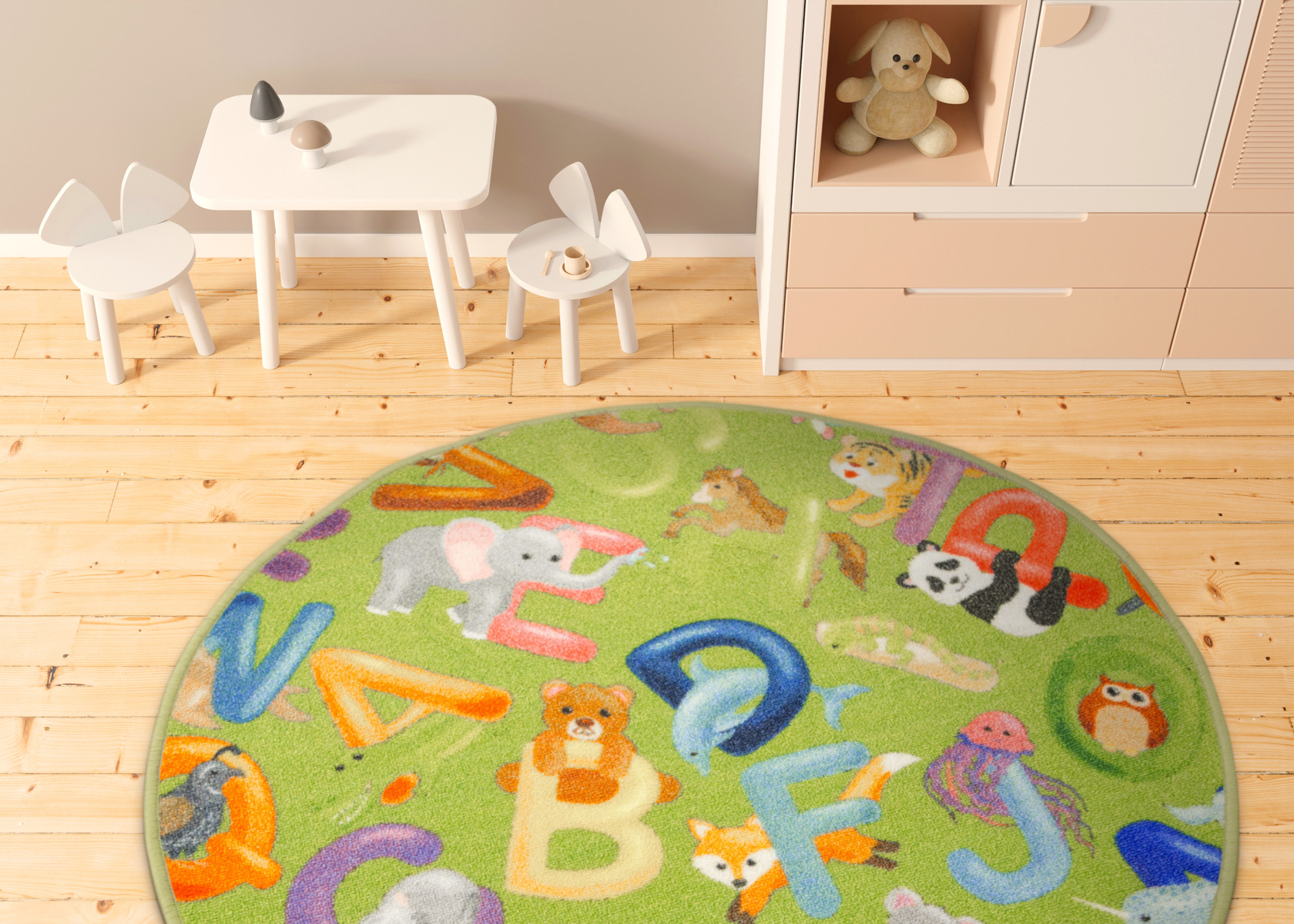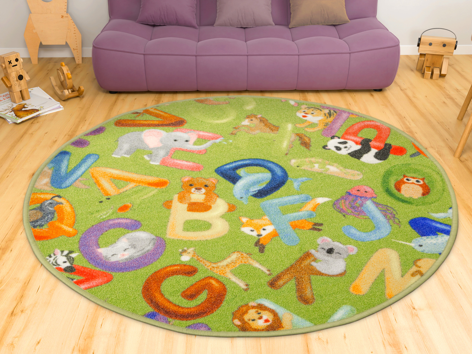 Okrągły Kolorowy Dywan Dziecięcy Alfabet 12 Green