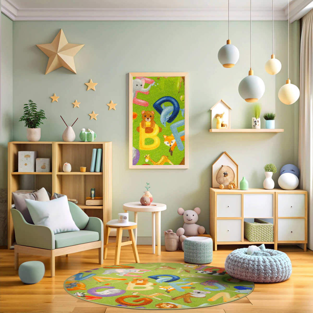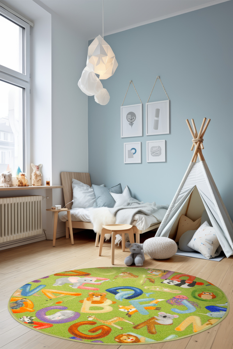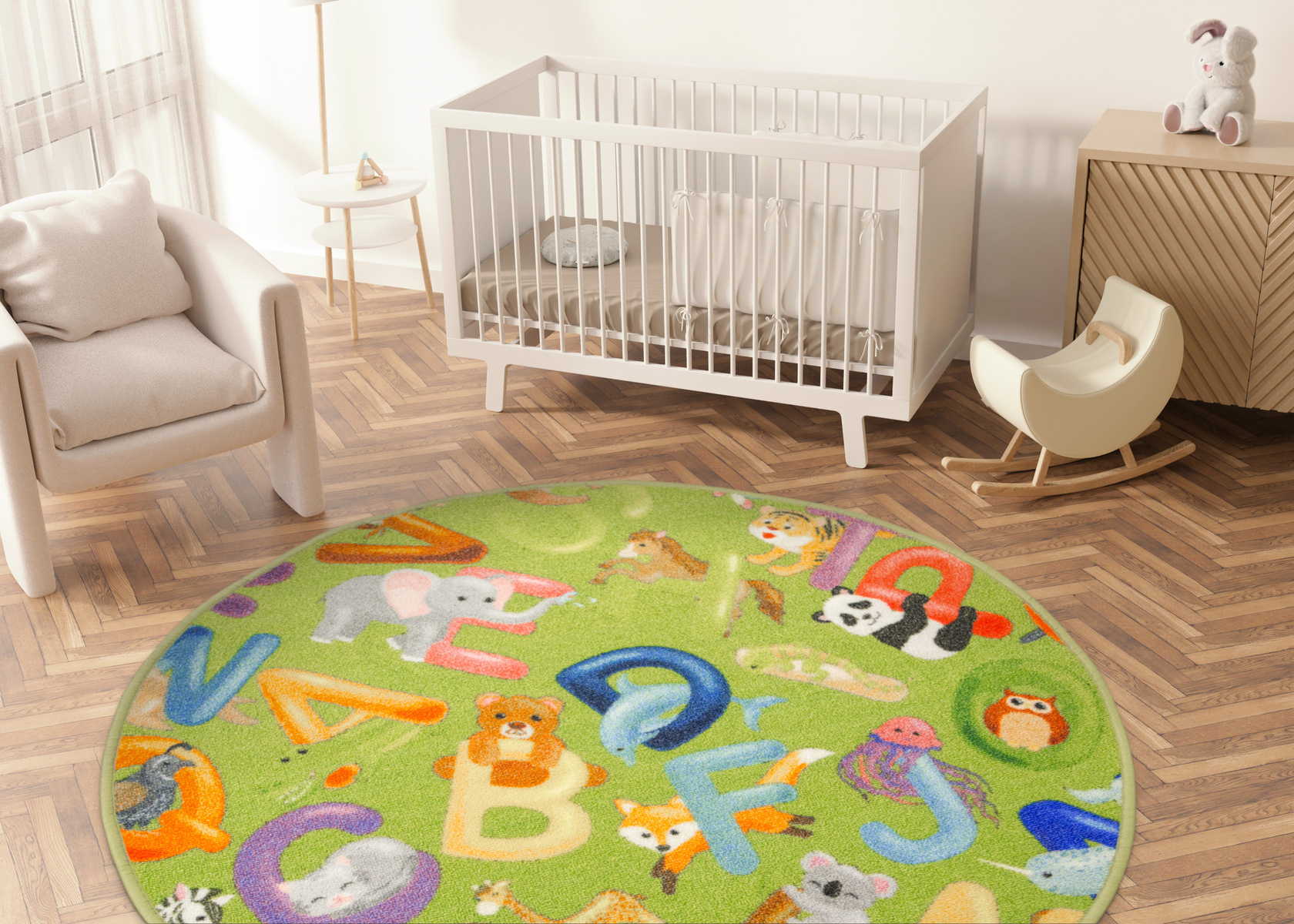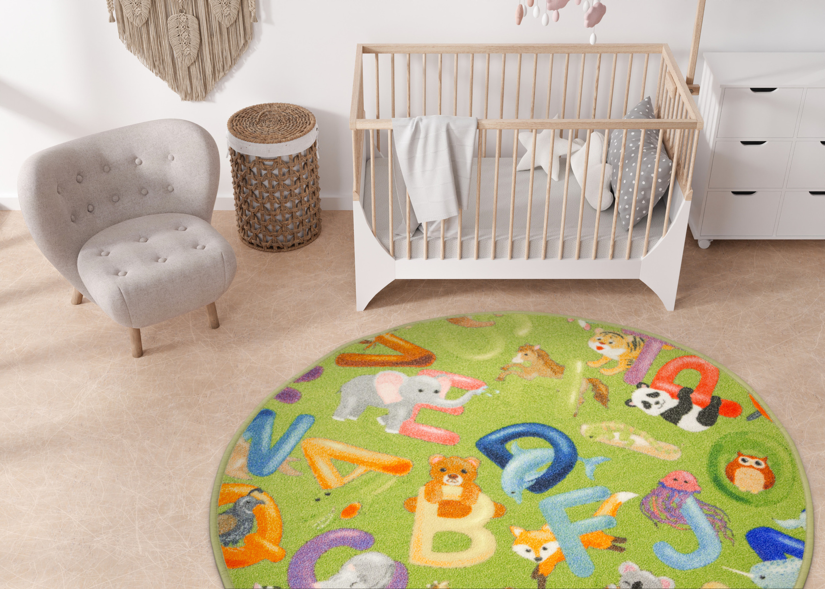 Okrągły Kolorowy Dywan Dziecięcy Alfabet 12 Green