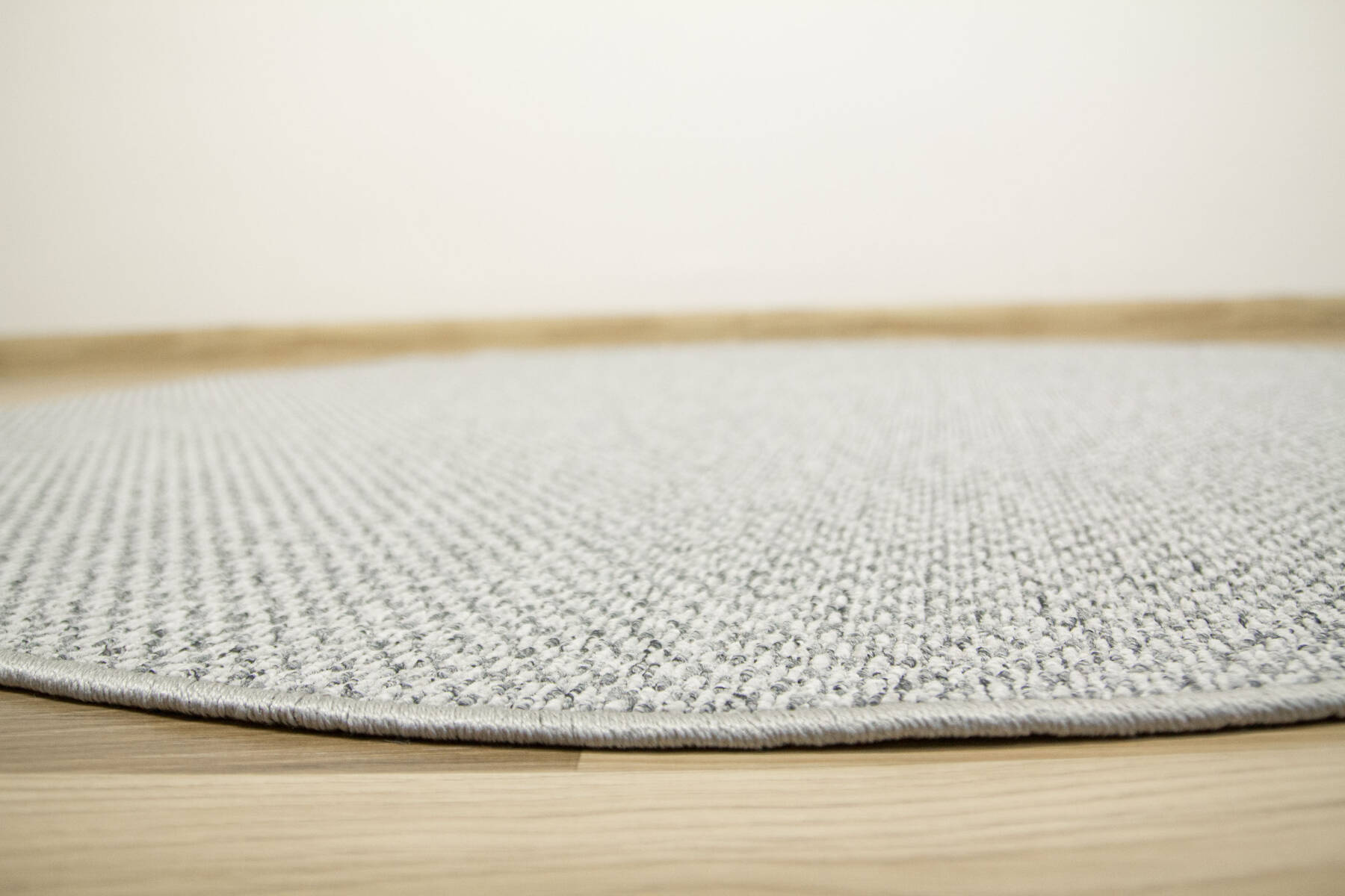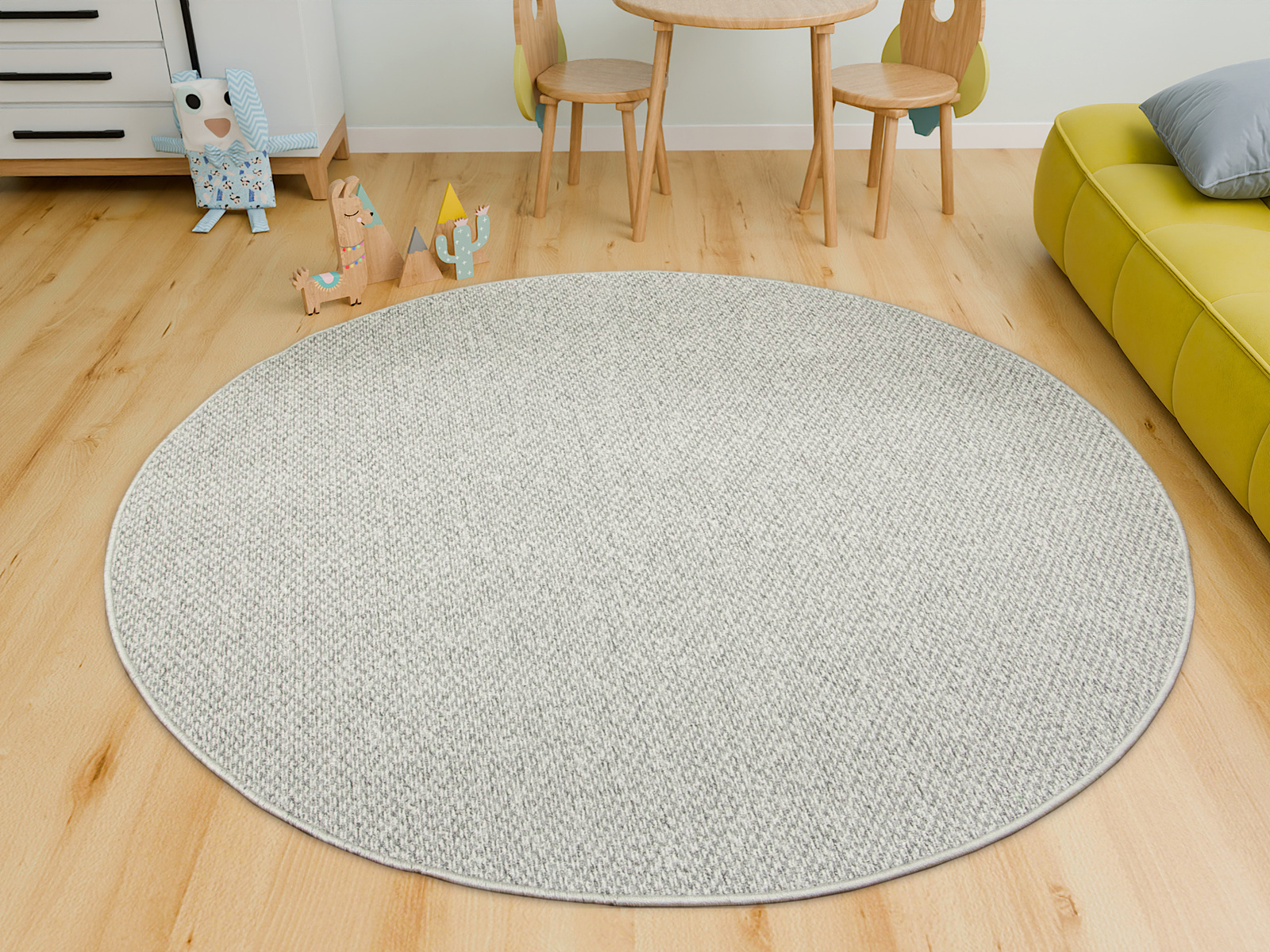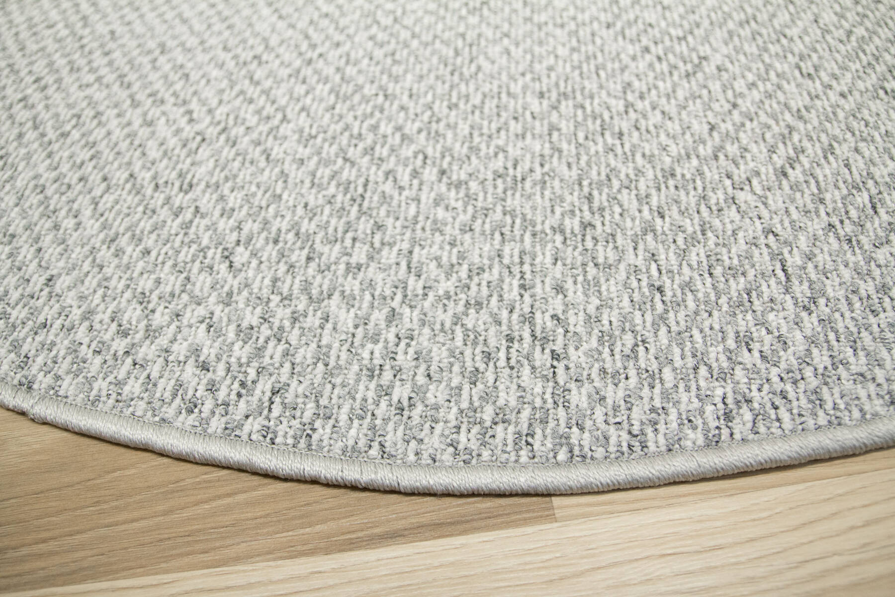 • Okrągły dywan z wykładziny pętelkowej Cannon 73 z wytrzymałym runem o grubym splocie w praktycznych odcieniach szarości ze spodem wykończonym filcem.