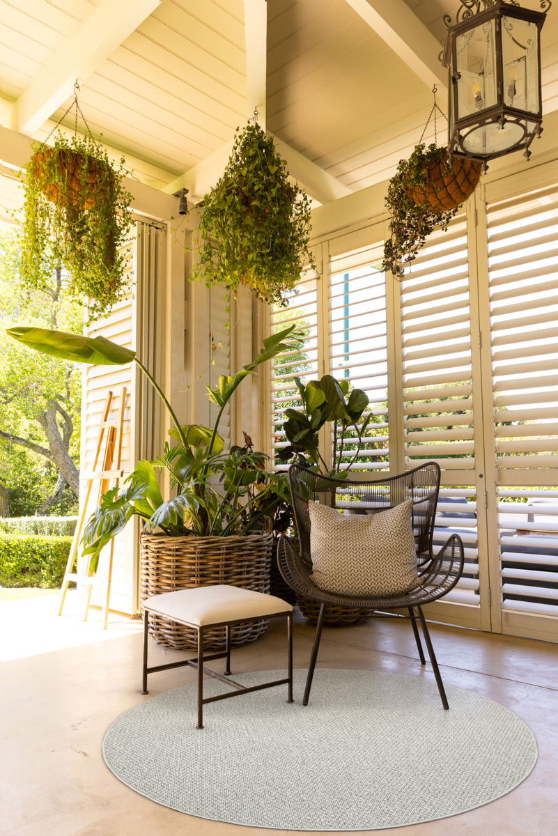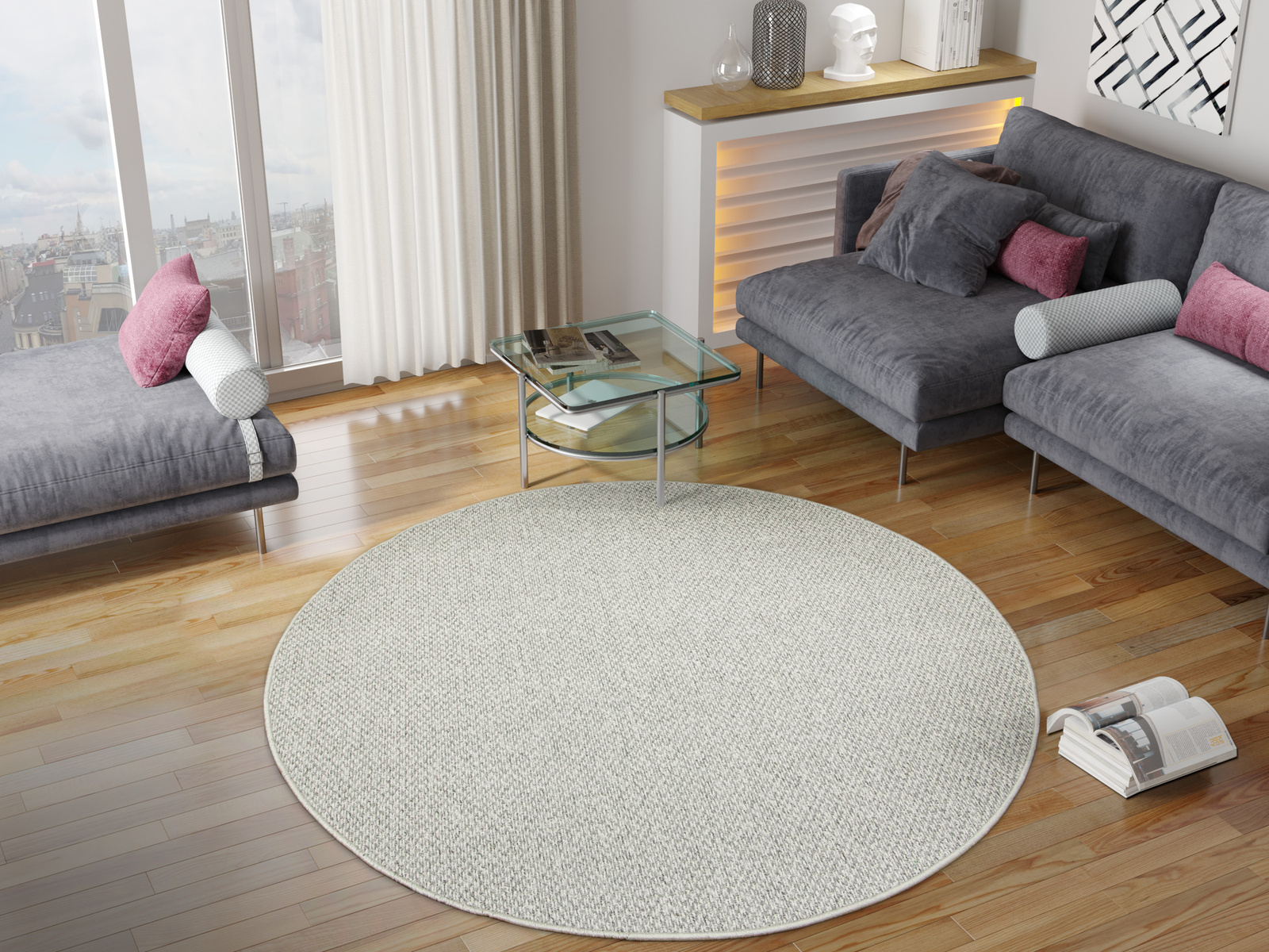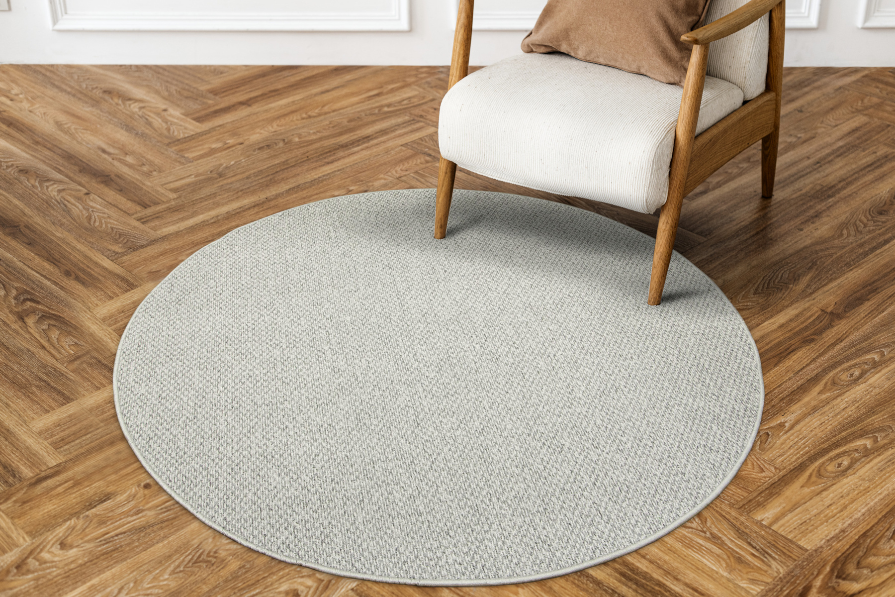 • Okrągły dywan z wykładziny pętelkowej Cannon 73 z wytrzymałym runem o grubym splocie w praktycznych odcieniach szarości ze spodem wykończonym filcem.