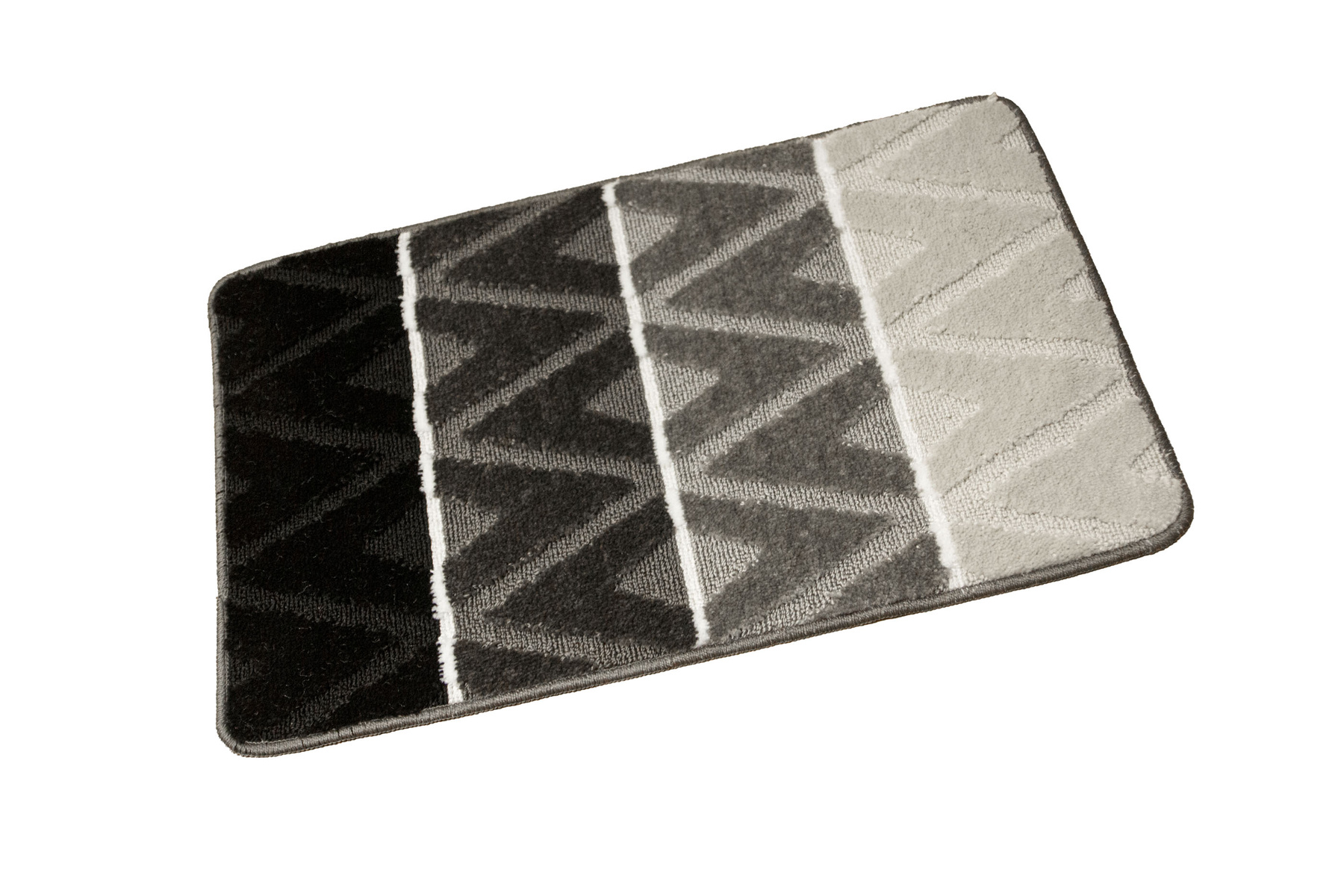 - Miękki i przyjemny w dotyku zestaw łazienkowy Palma Grey ze wzorem geometrycznym, dwupoziomowym runem i antypoślizgowym spodem. Dywaniki można stosować na ogrzewanie podłogowe.