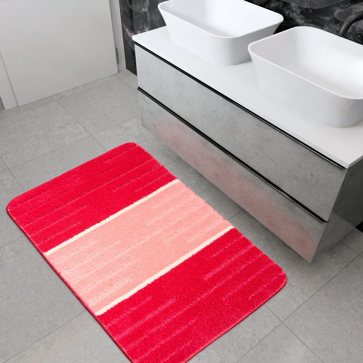 • Miękki i przyjemny w dotyku dywanik łazienkowy Como Pink ze wzorem w pasy, dwupoziomowym runem i antypoślizgowym spodem. Dywaniki można stosować na ogrzewanie podłogowe.