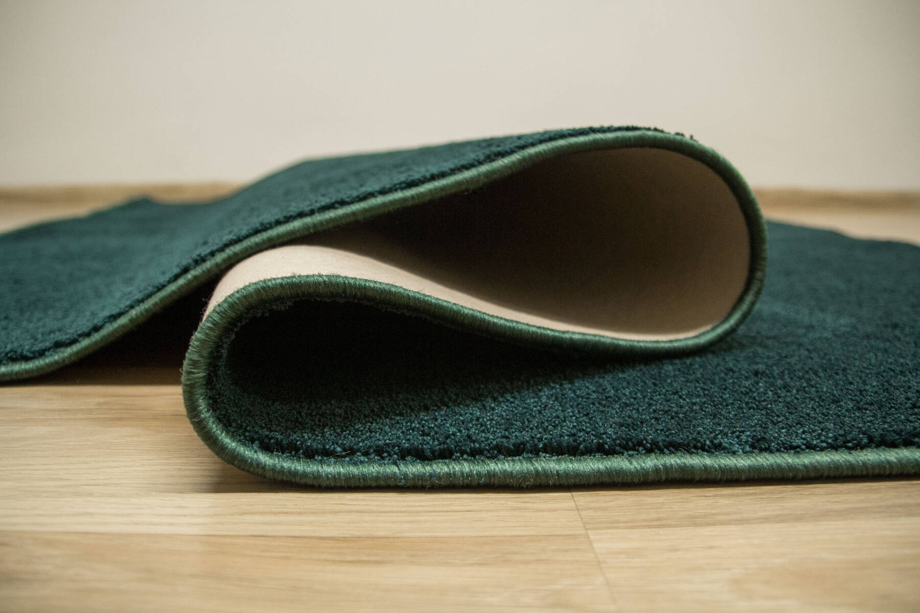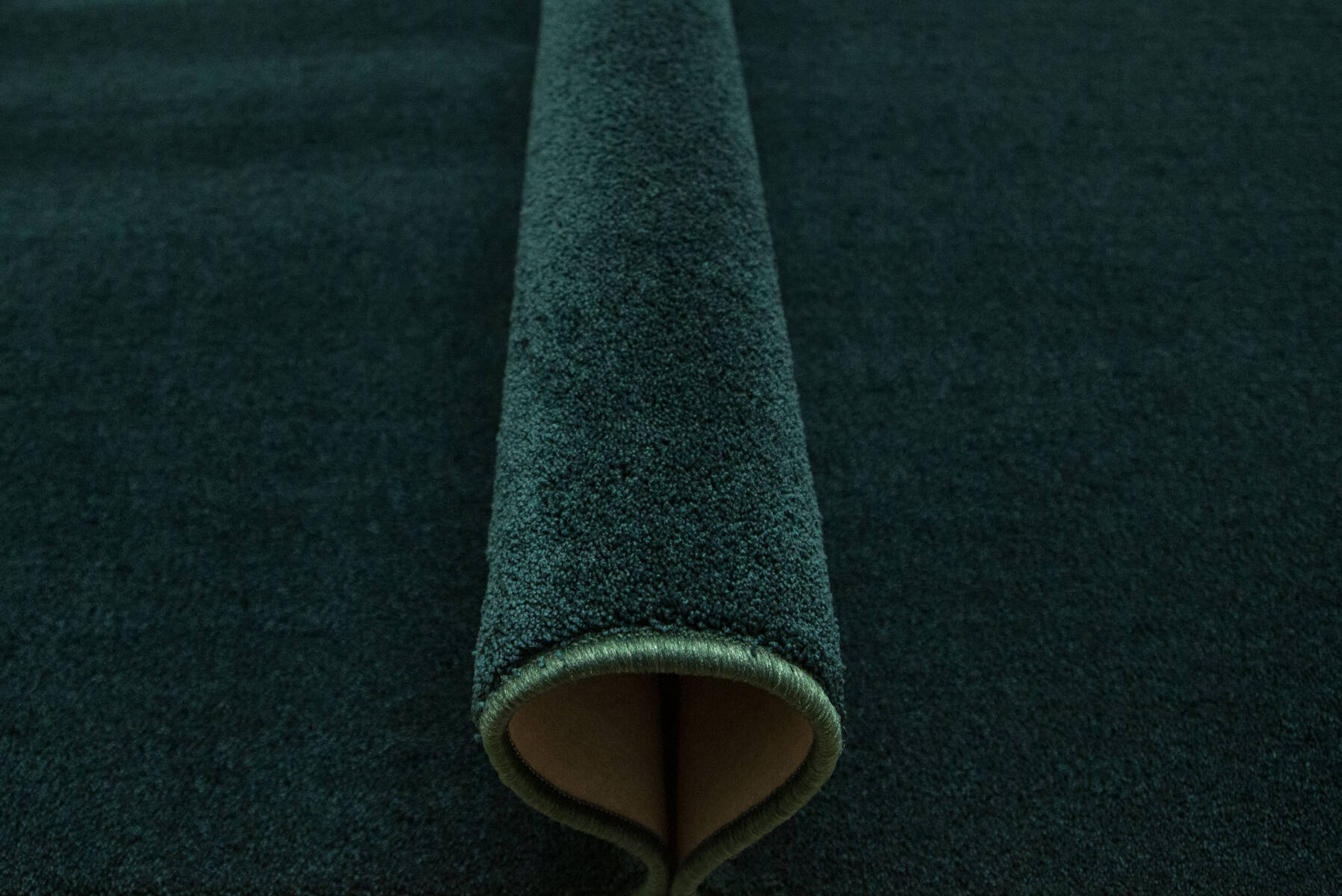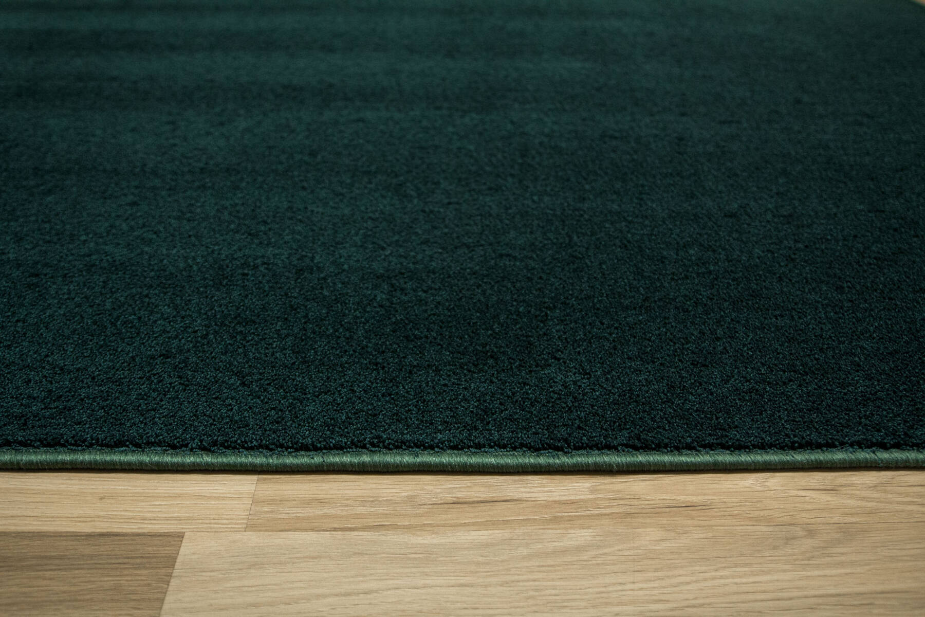 - Miękka i przyjemna w dotyku wykładzina dywanowa Eternity Speciaal z runem w odcieniu butelkowej zieleni, ze spodem wykończonym filcem