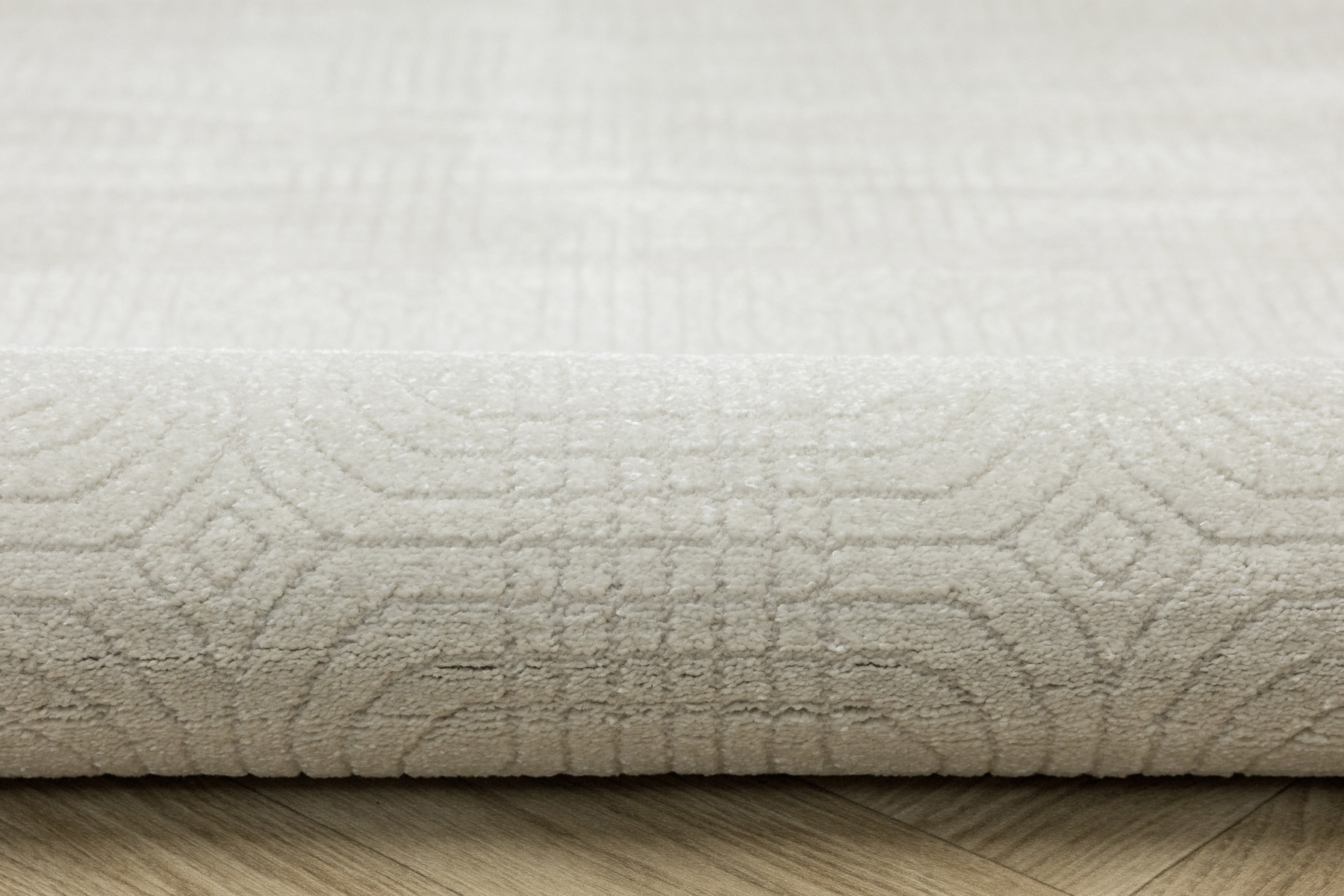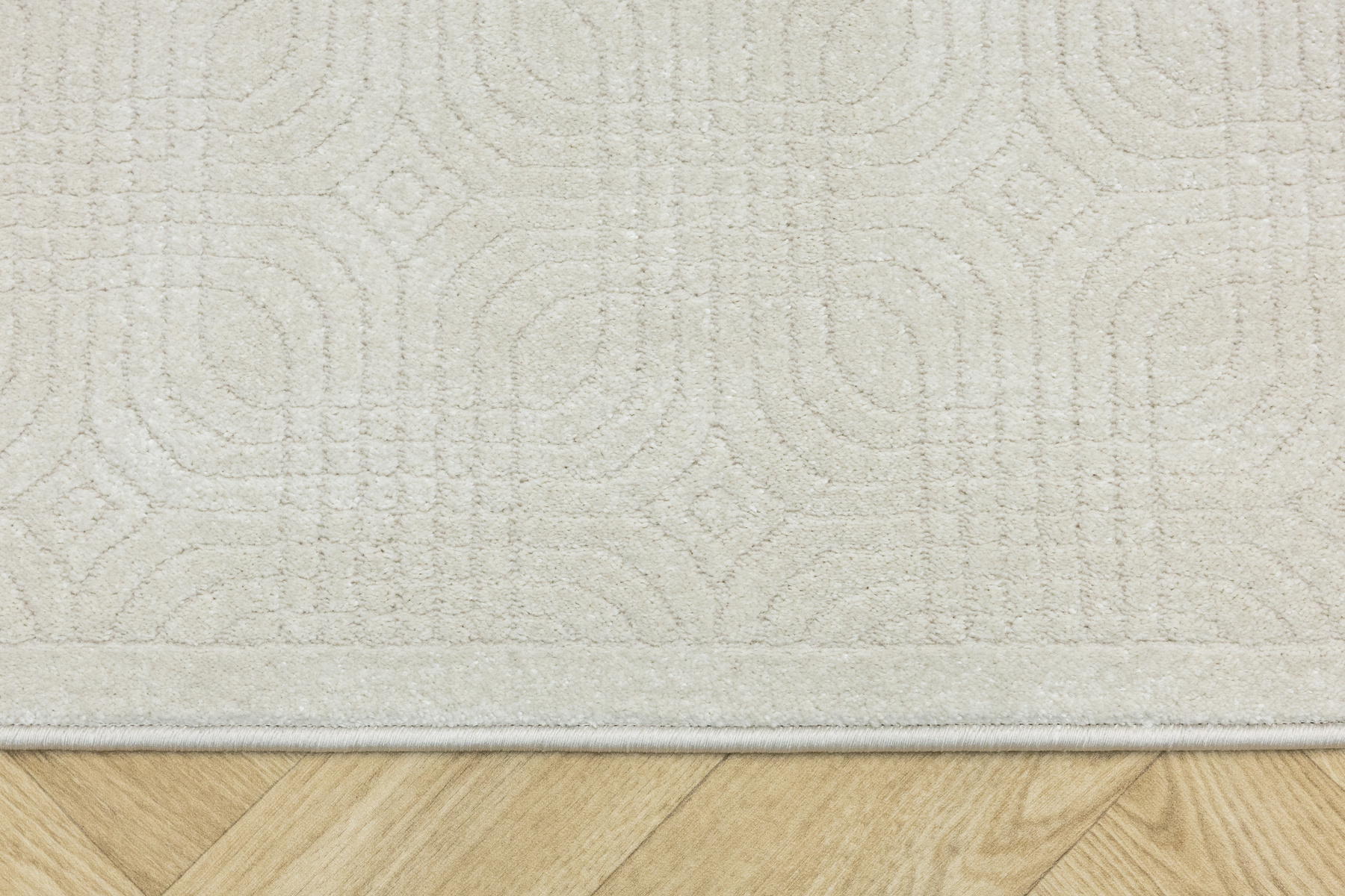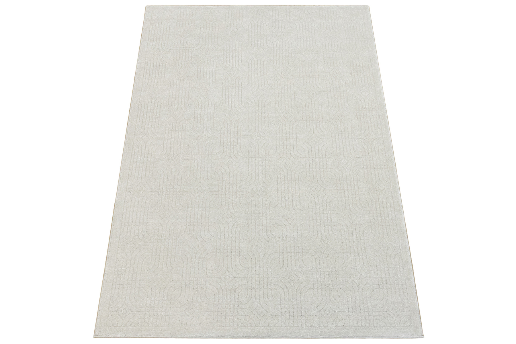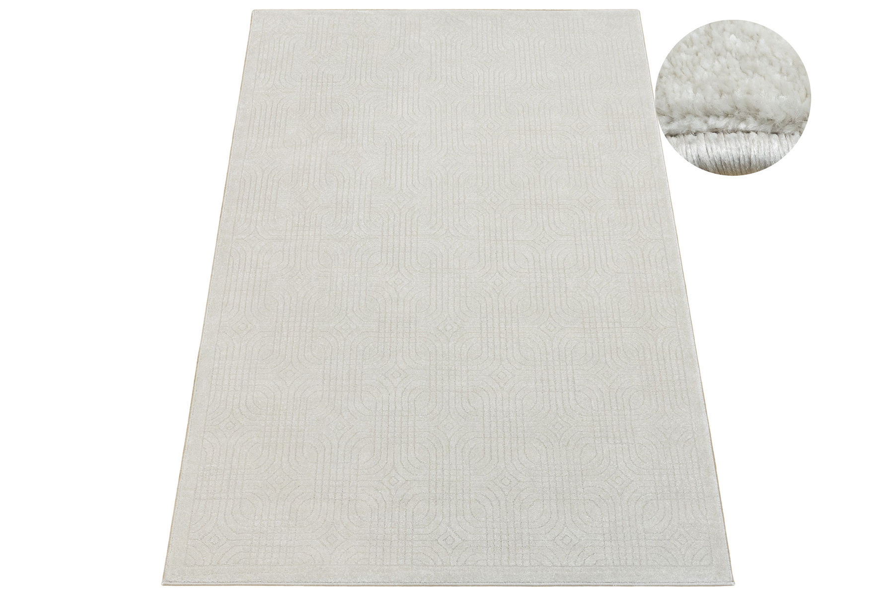 • Miękki i przyjemny w dotyku dywan Teno o dwupoziomowym runie, który zdobi geometryczny wzór w kremie. Spód dywanu wykończony jutą.