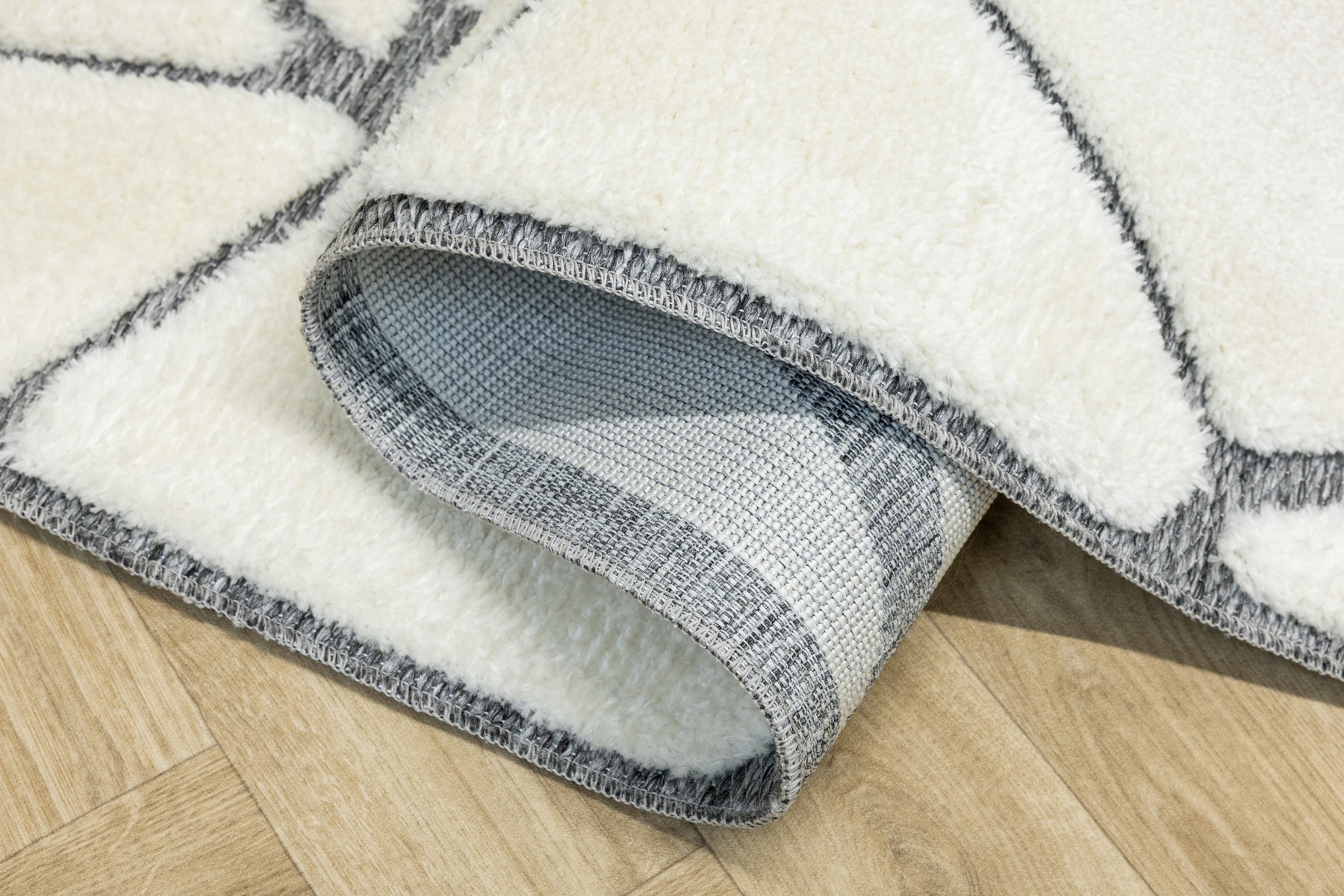 Ich mięciutkie puszyste runo typu shaggy posiada wycinany wzór uwidaczniający sizalowy podkład.