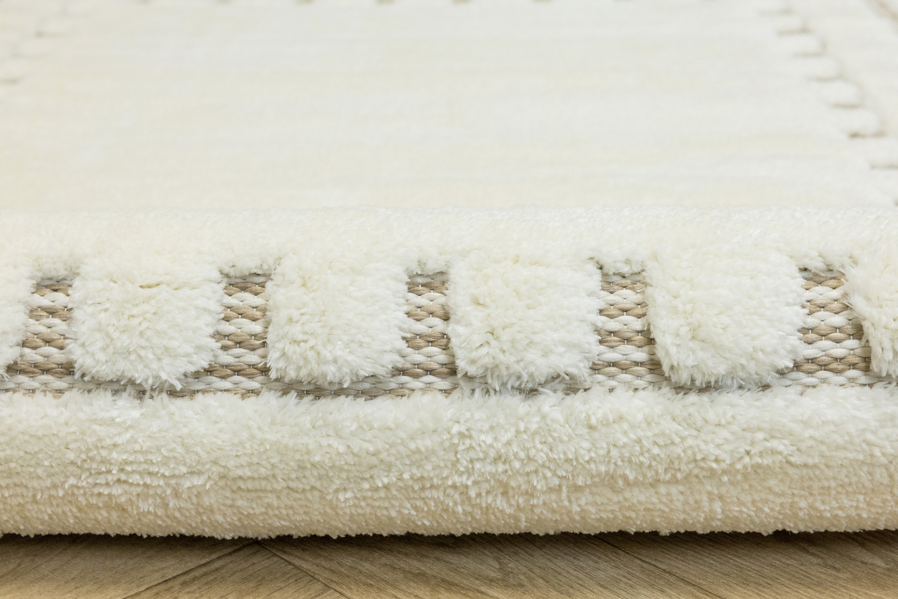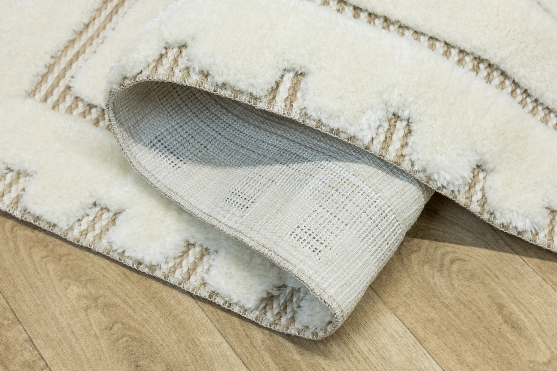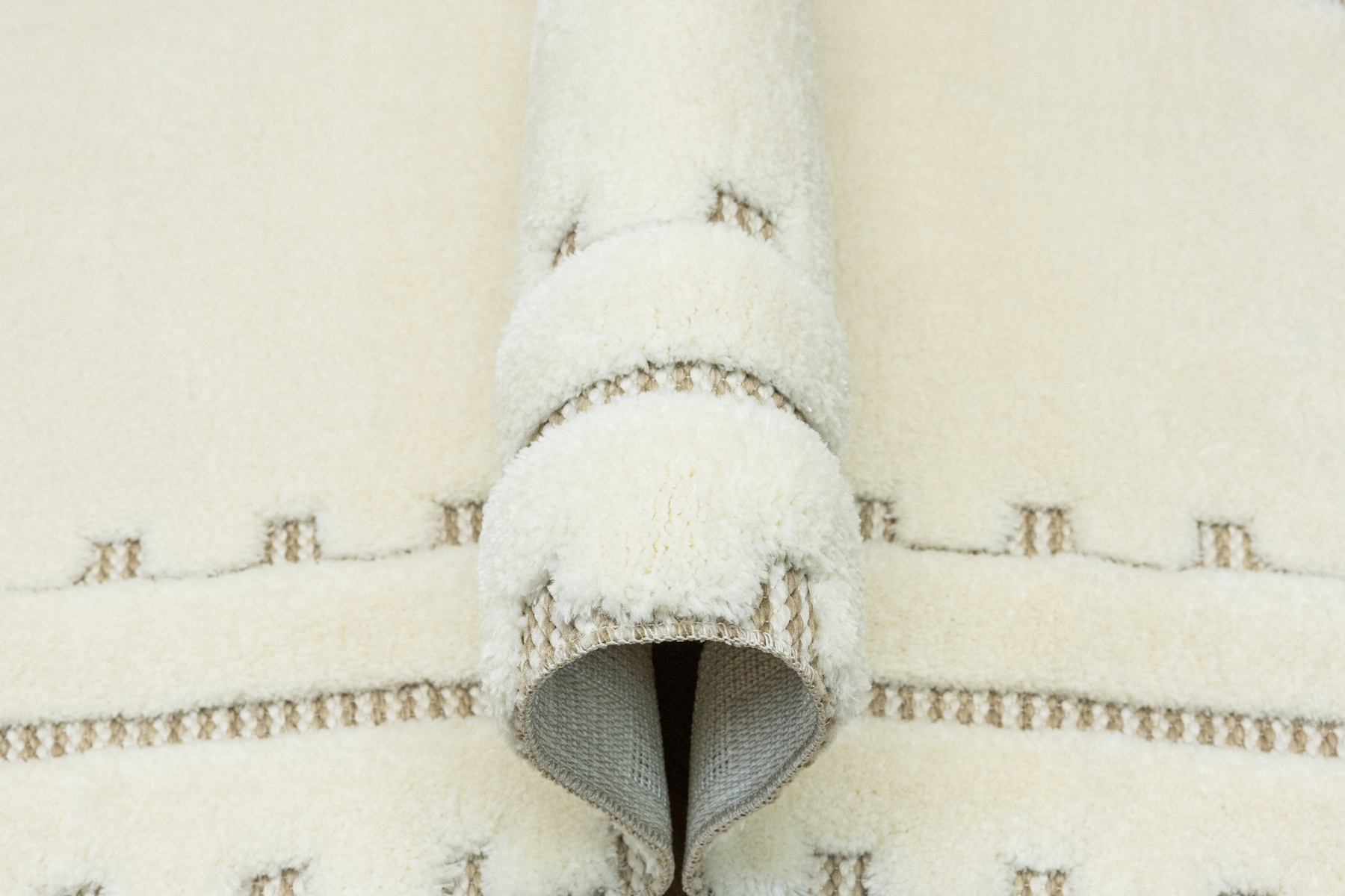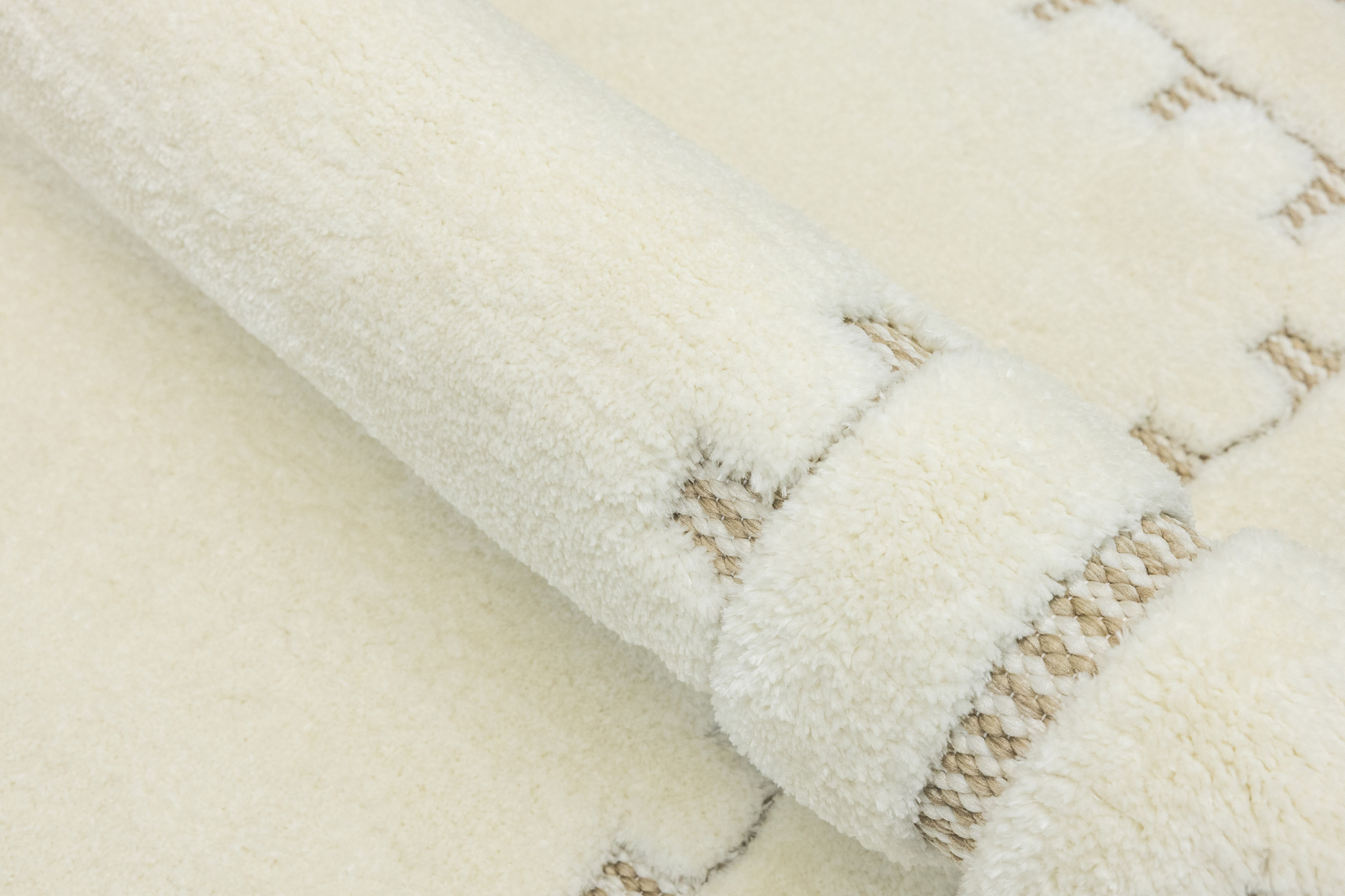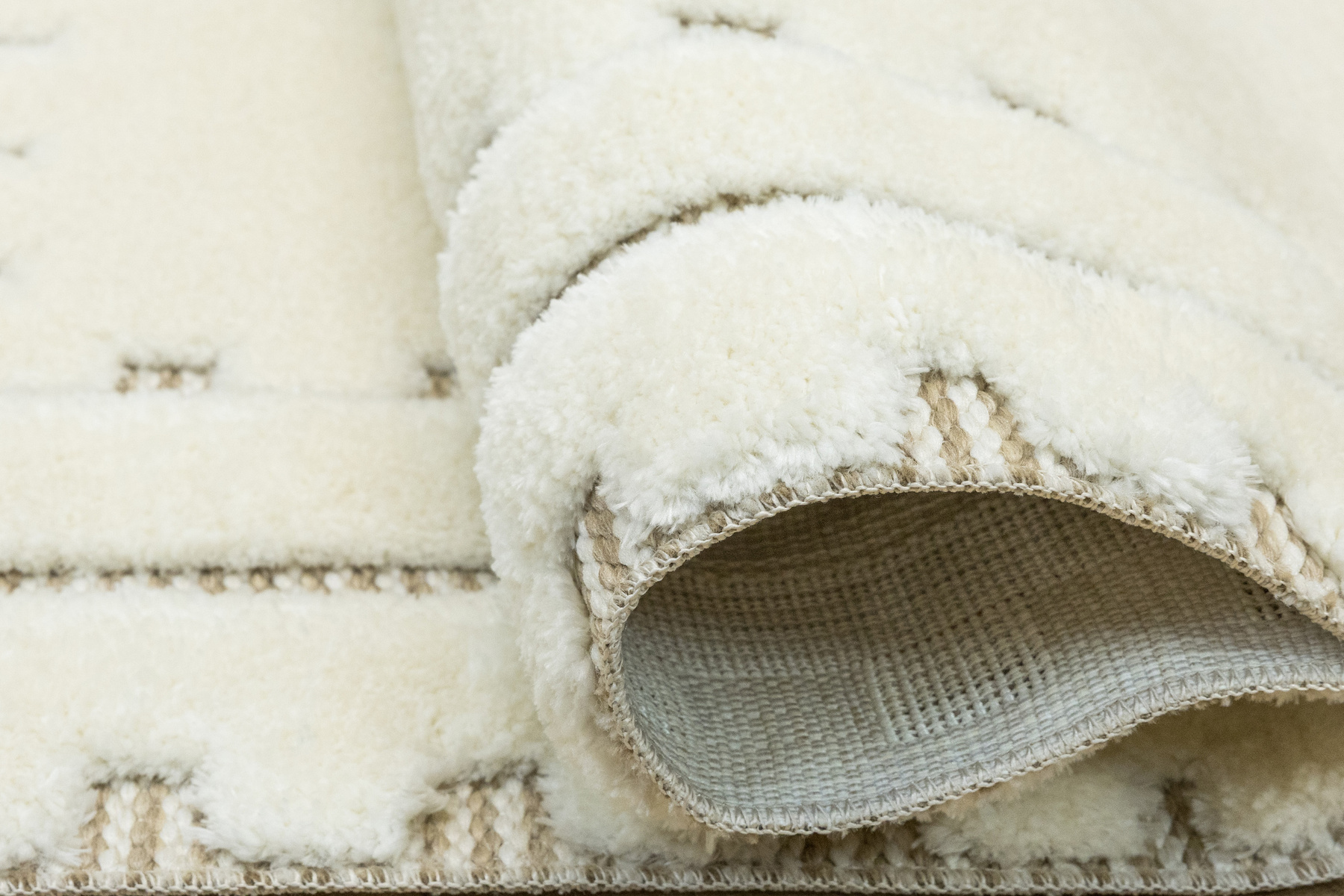 Ich mięciutkie puszyste runo typu shaggy posiada wycinany wzór uwidaczniający sizalowy podkład.