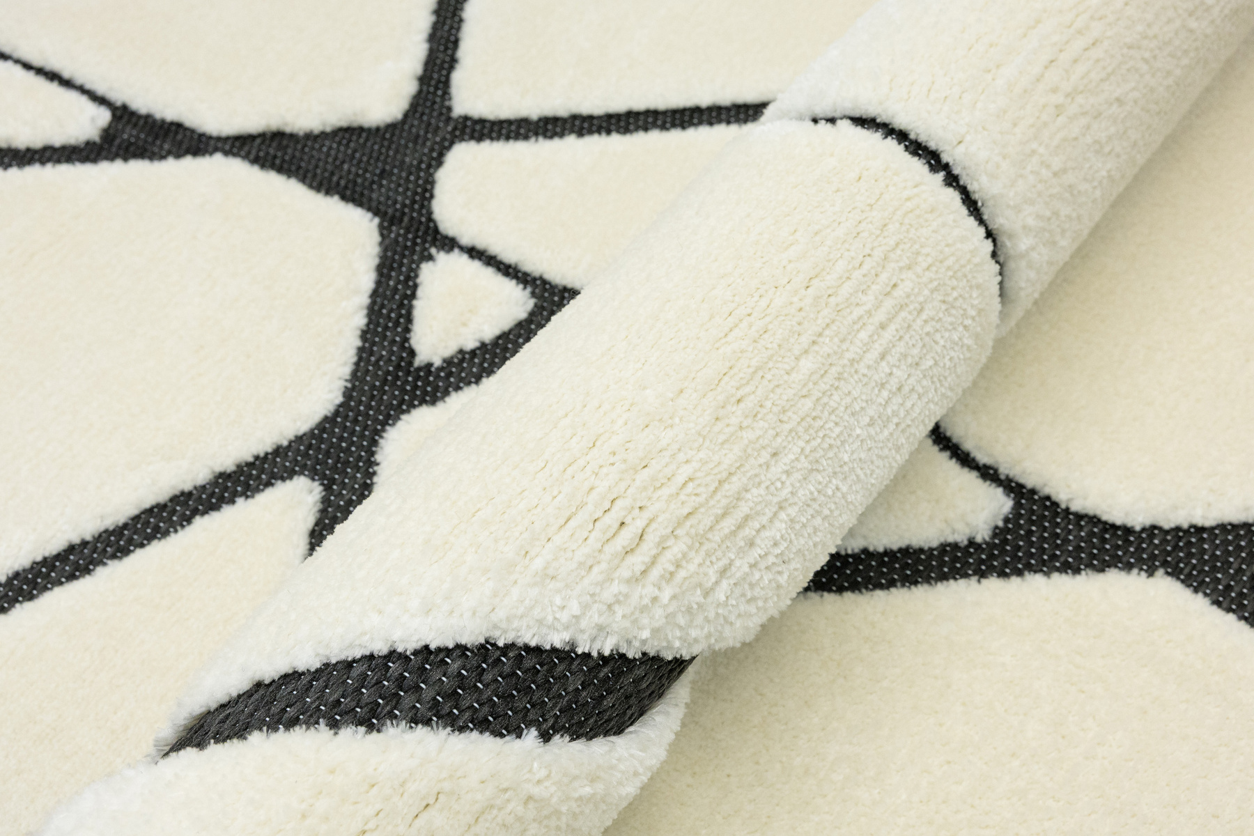 - Luksusowy dywan Lula Soft z miękkim, wycinanym kremowym runem typu shaggy, podkładem sizalowym w czerni