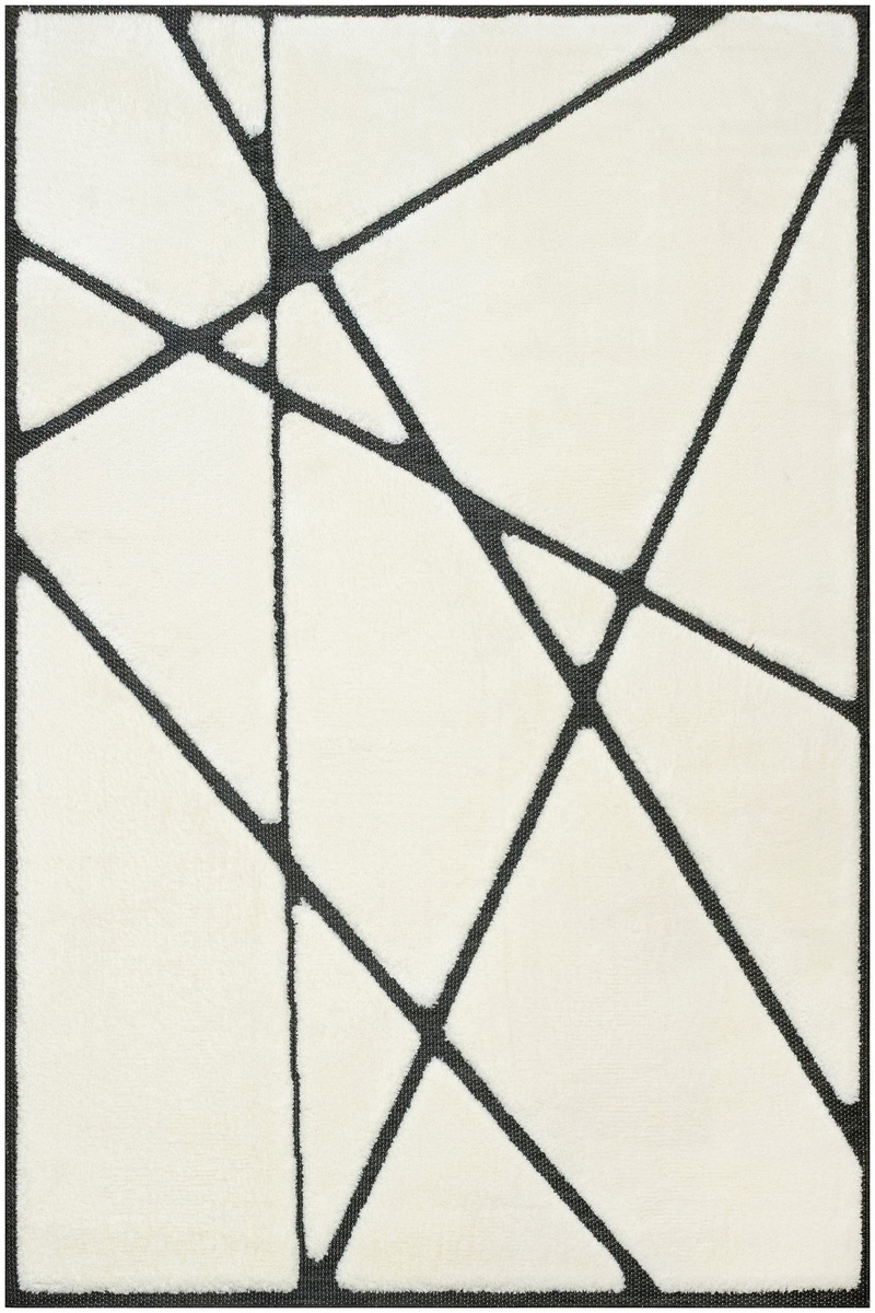 Opinie o Dywan Shaggy Lula Soft IM85A Black/Bone Trójkąty Krem Czarny