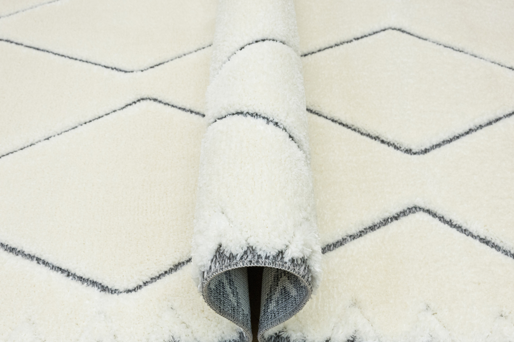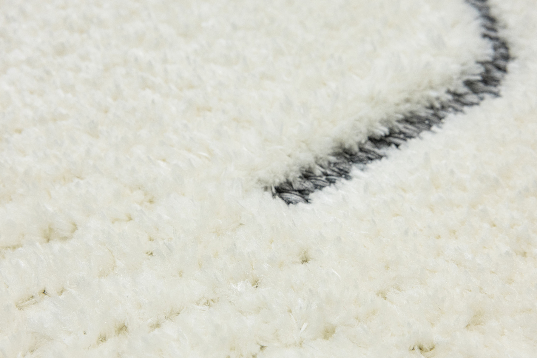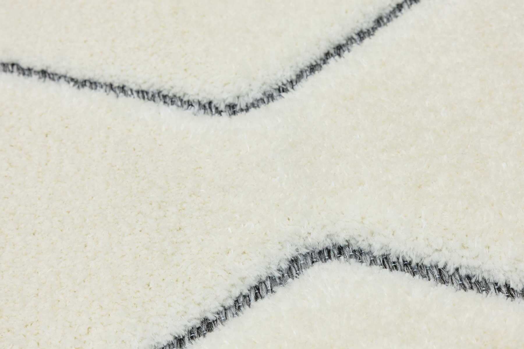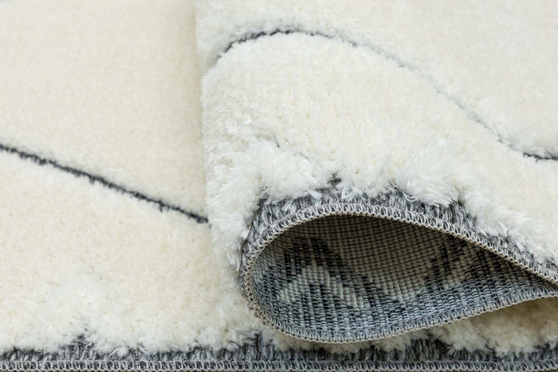 • Luksusowy dywan Lula Soft z miękkim, wycinanym kremowym runem typu shaggy i podkładem sizalowym w szarości.
