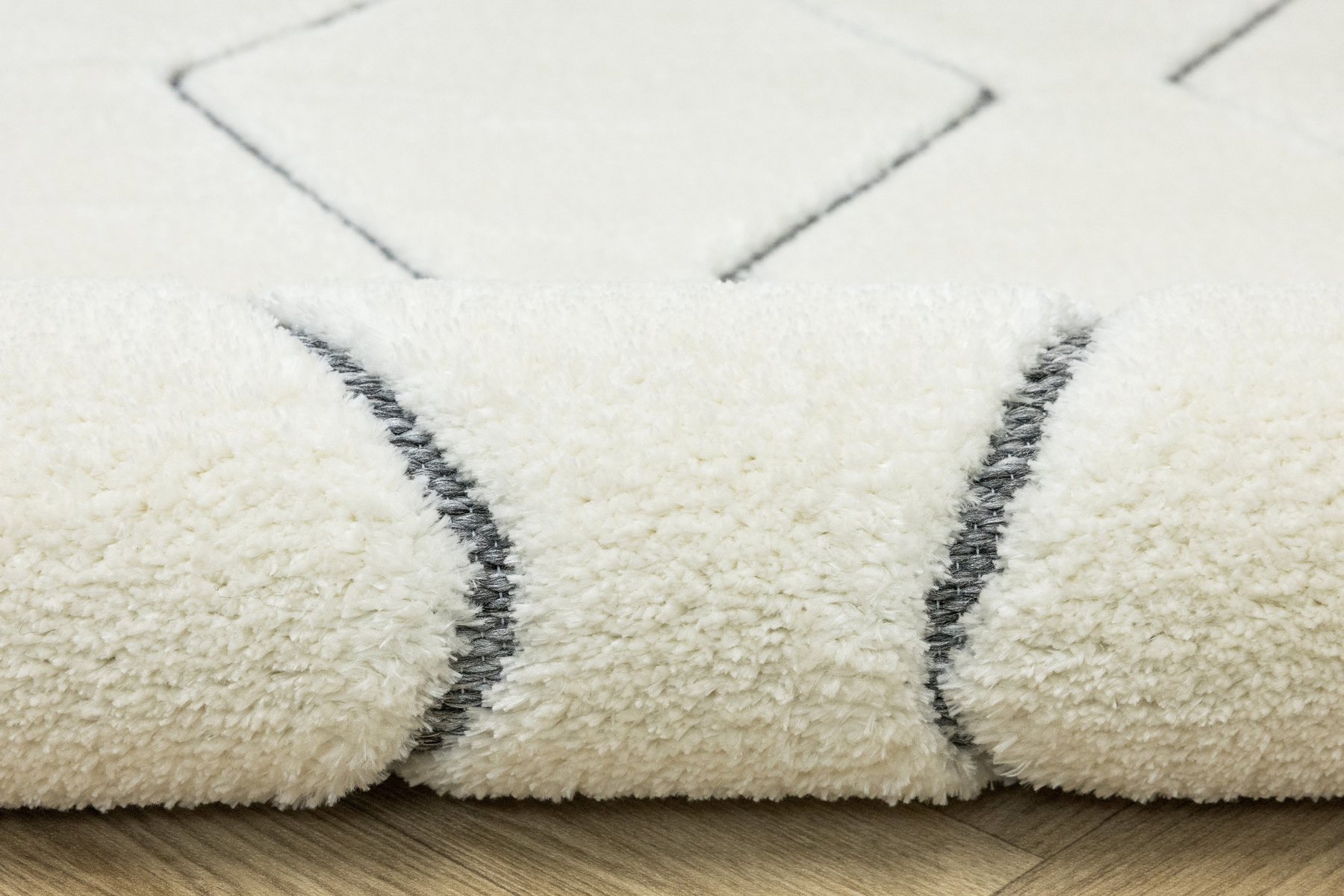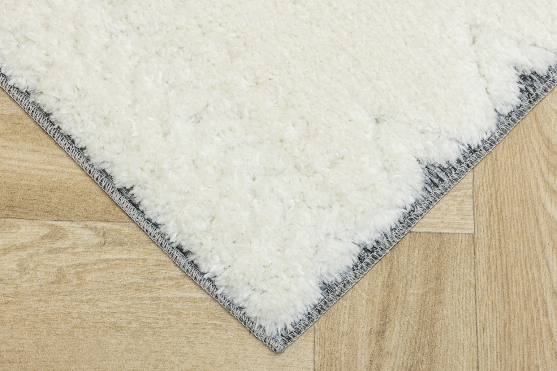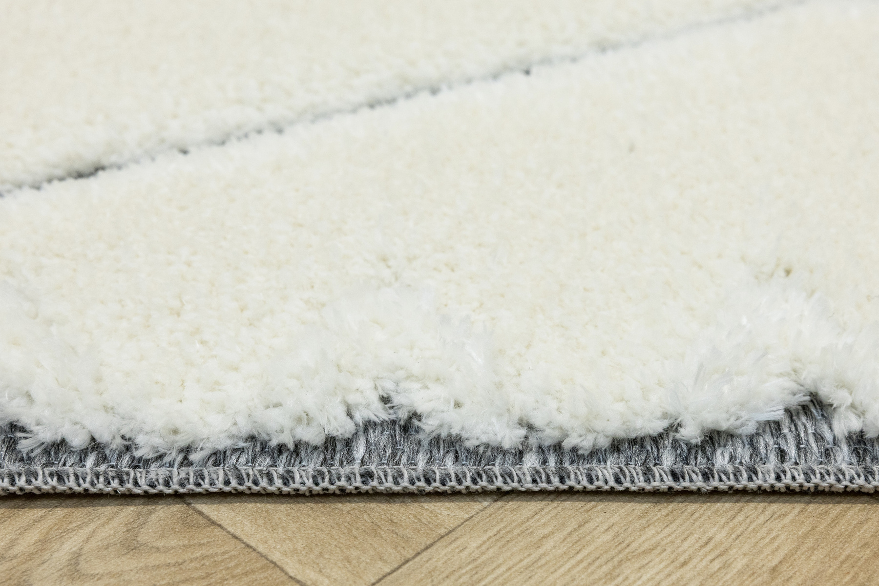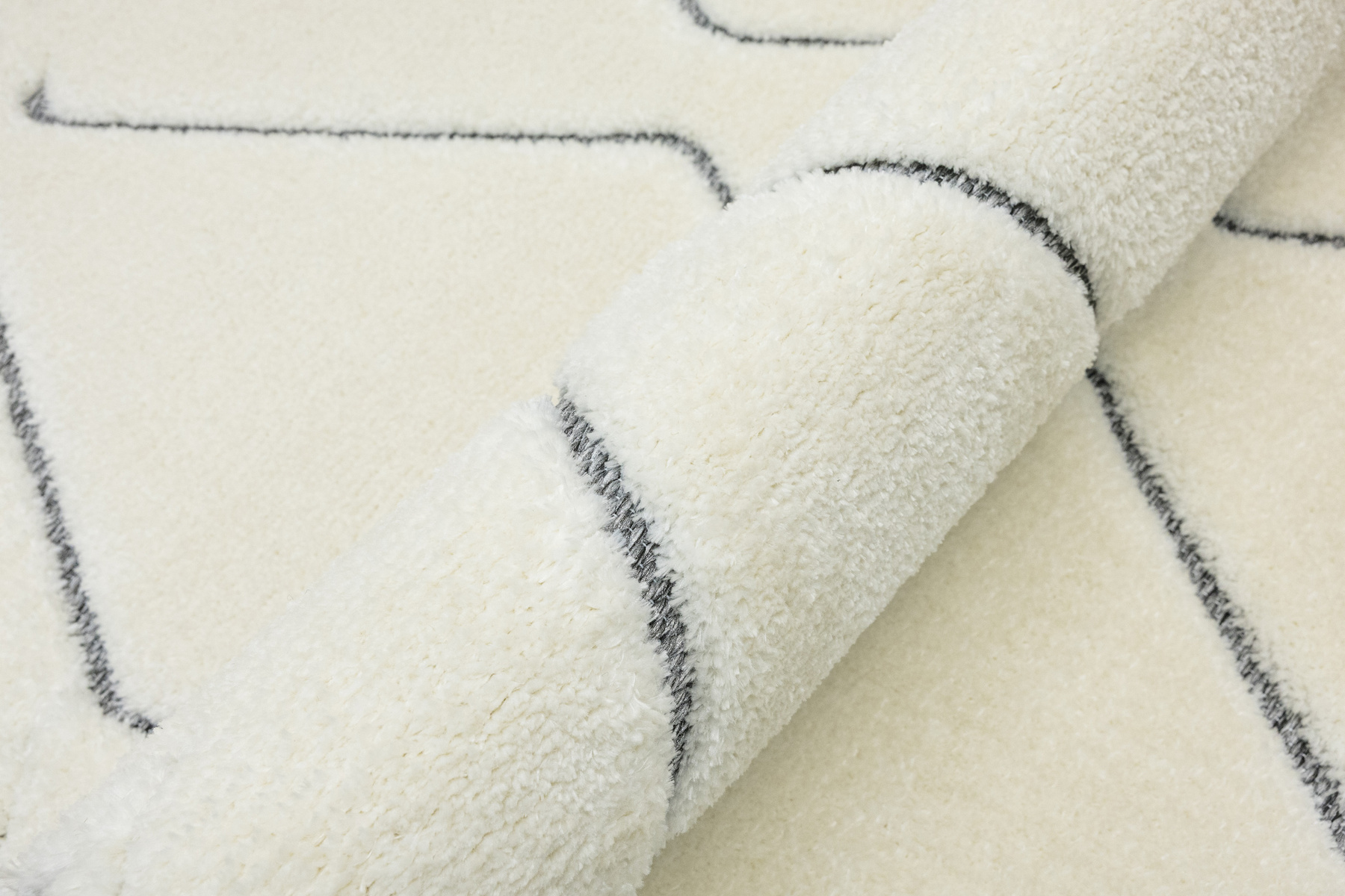 • Luksusowy dywan Lula Soft z miękkim, wycinanym kremowym runem typu shaggy i podkładem sizalowym w szarości.