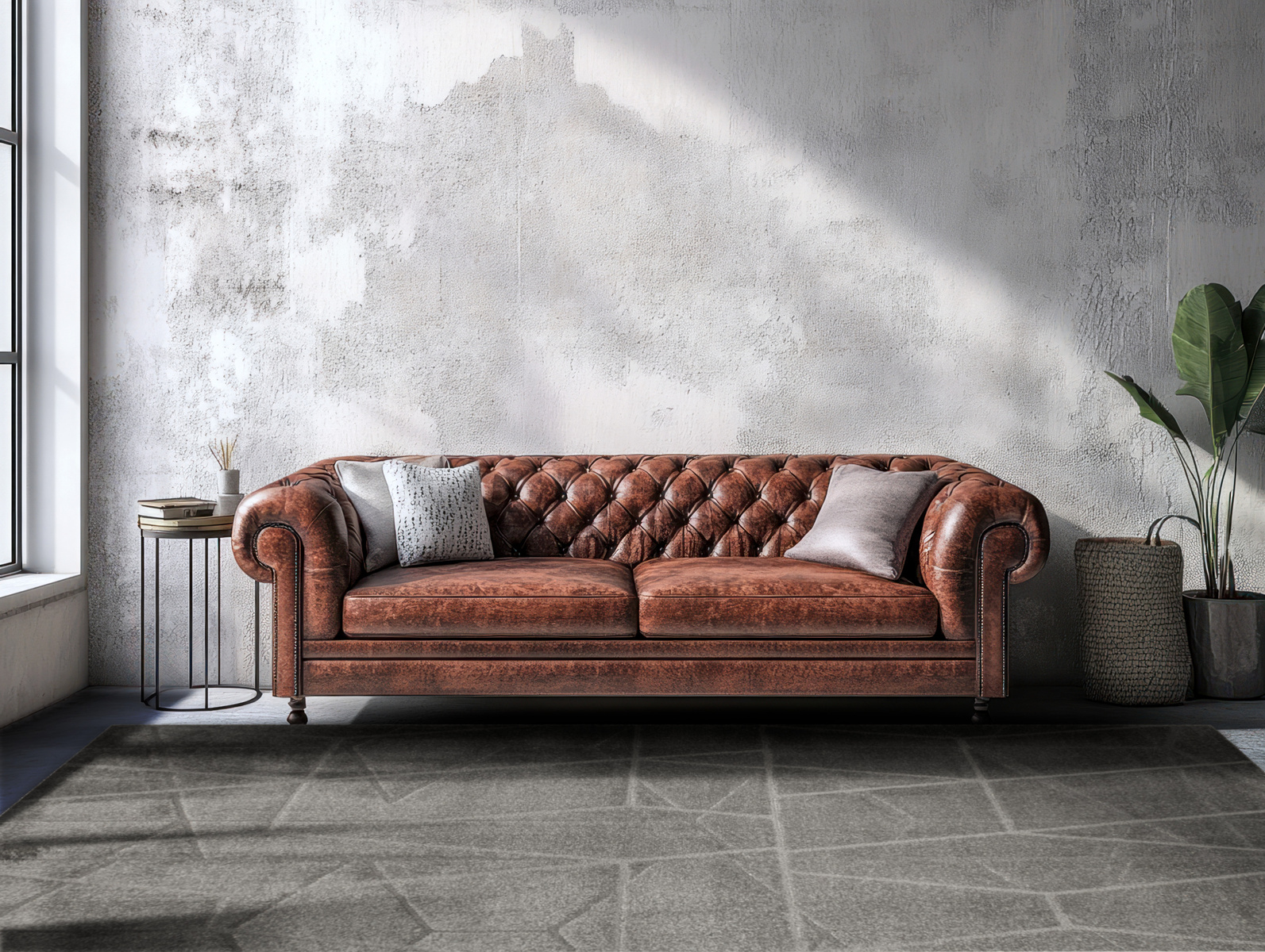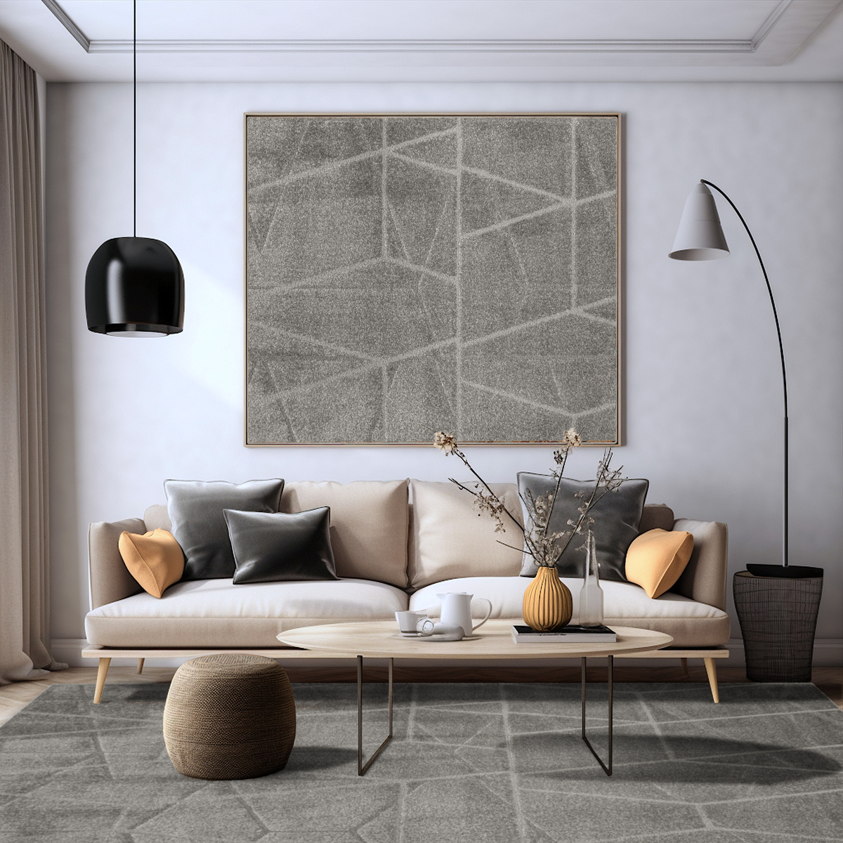 • Miękki i przyjemny w dotyku dywan Aruba o dwupoziomowym runie w odcieniach szarości, z geometrycznym wzorem ze spodem wykończonym jutą.