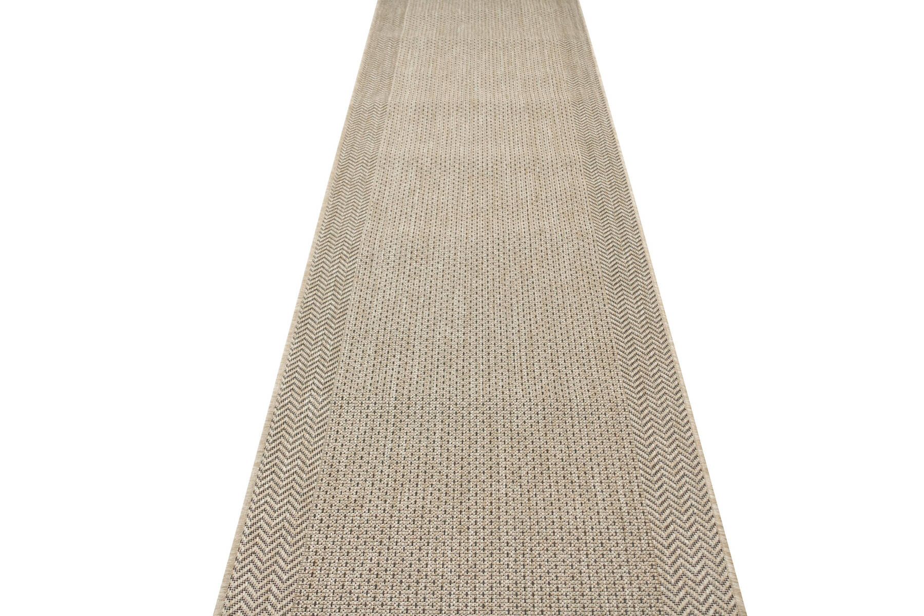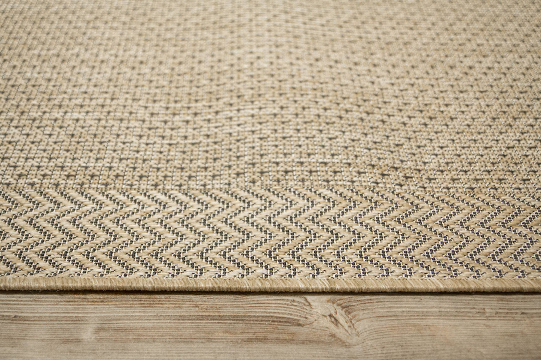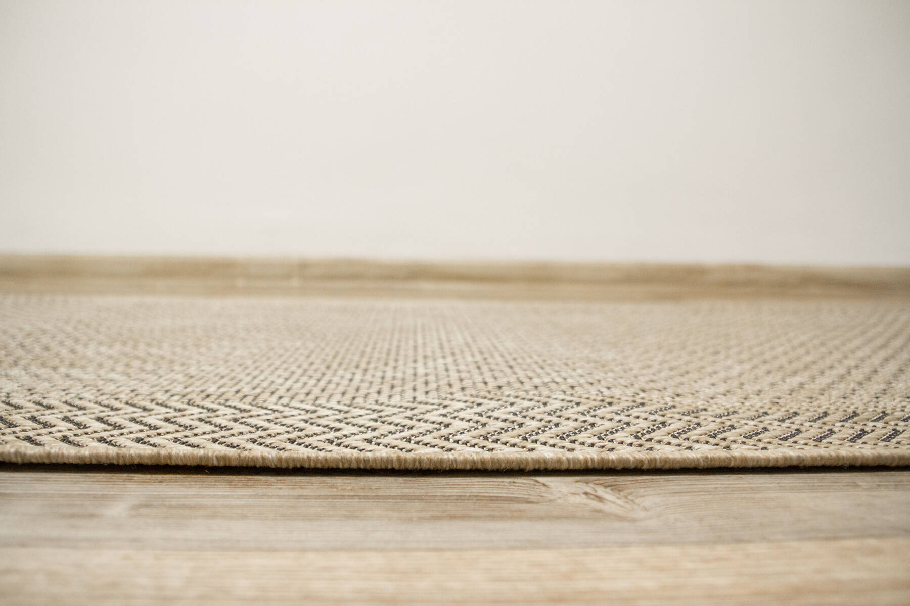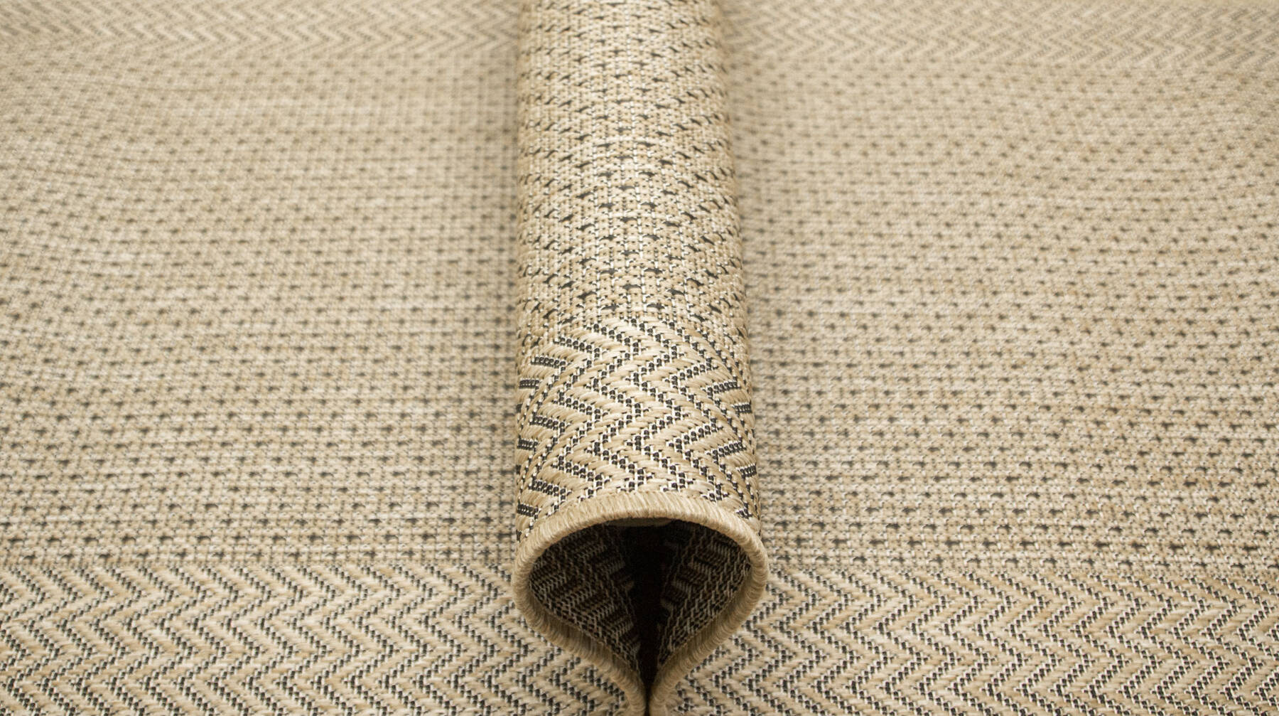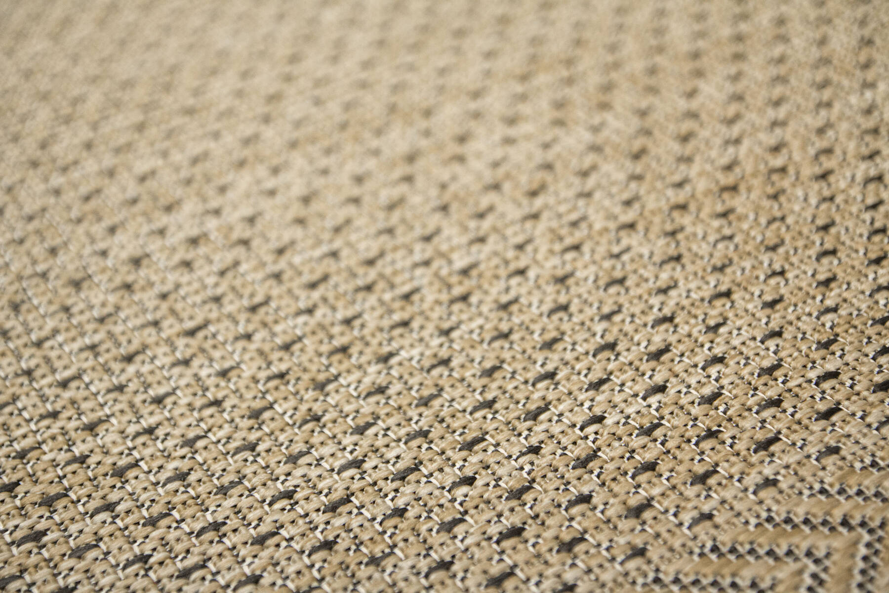 - Sznurkowy Chodnik Jeans 19242/P01 z klasycznym wzorem geometrycznym w odcieniach beżu i brązu z akcentem szarości - może być stosowany zarówno wewnątrz jak i na zewnątrz.