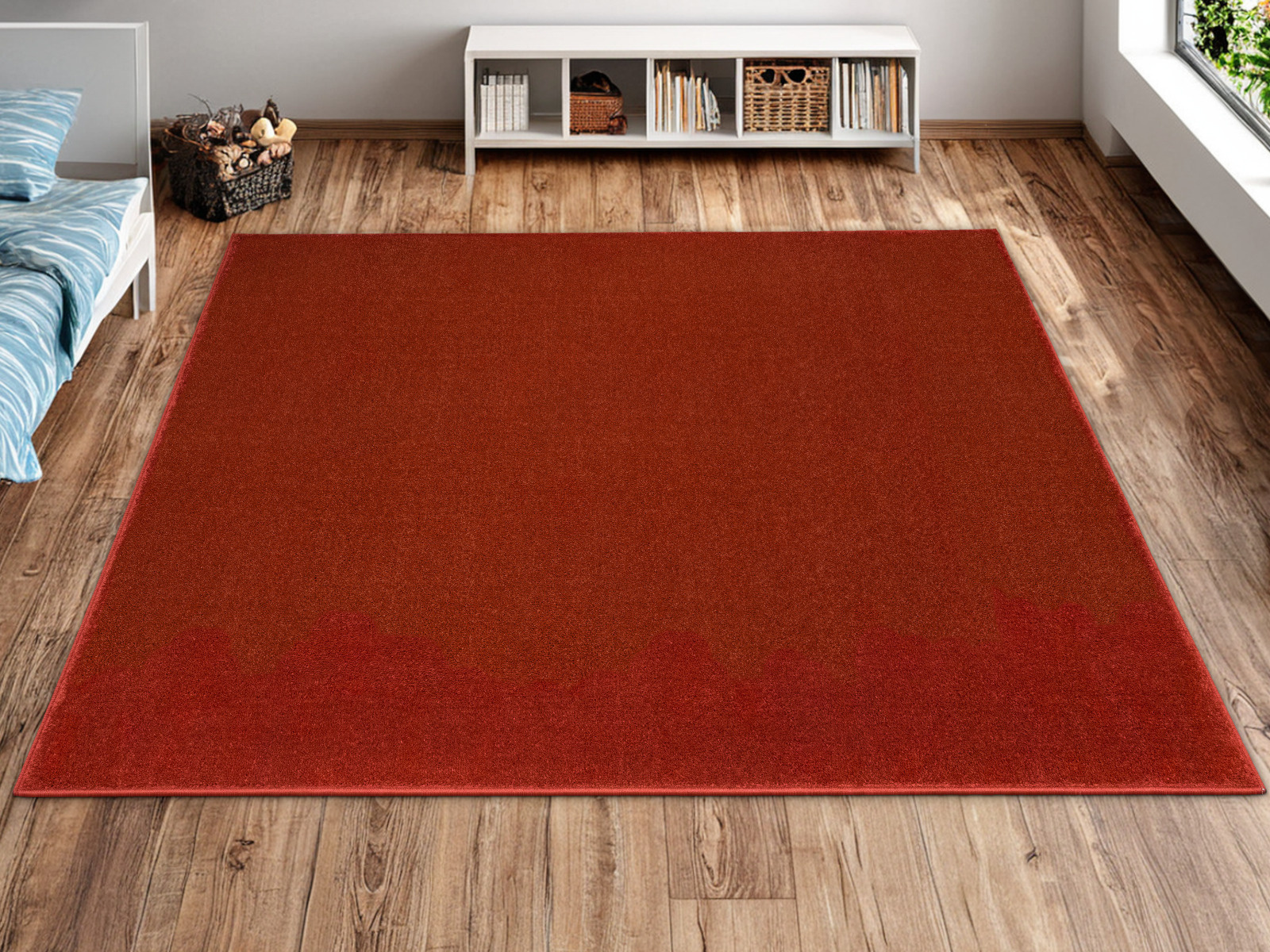 - Dywan Lima z runem w jednolitym odcieniu czerwieni i spodem wykończonym jutą.