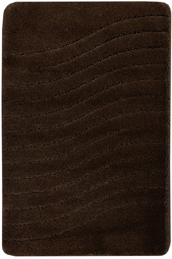 - Dywanik łazienkowy Sara o miękkim i przyjemnym w dotyku, dwupoziomowym runie w ciemnym brązie wenge, ze wzorem w fale i antypoślizgowym spodem.