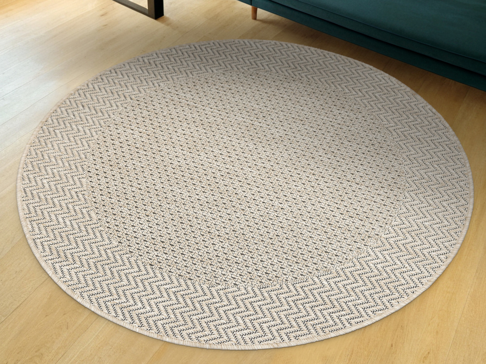 Okrągły Dywan Sznurkowy Jeans 19242/P01 Koło Beż Krem Jodełka
