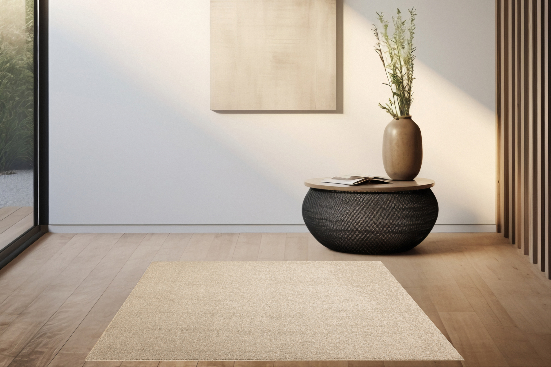 - Wykładzina dywanowa Richland z mięciutkim runem ciętym typu saxon w modnym, naturalnym melanżu odcieni beżu i kremu ze spodem wykończonym filcem.