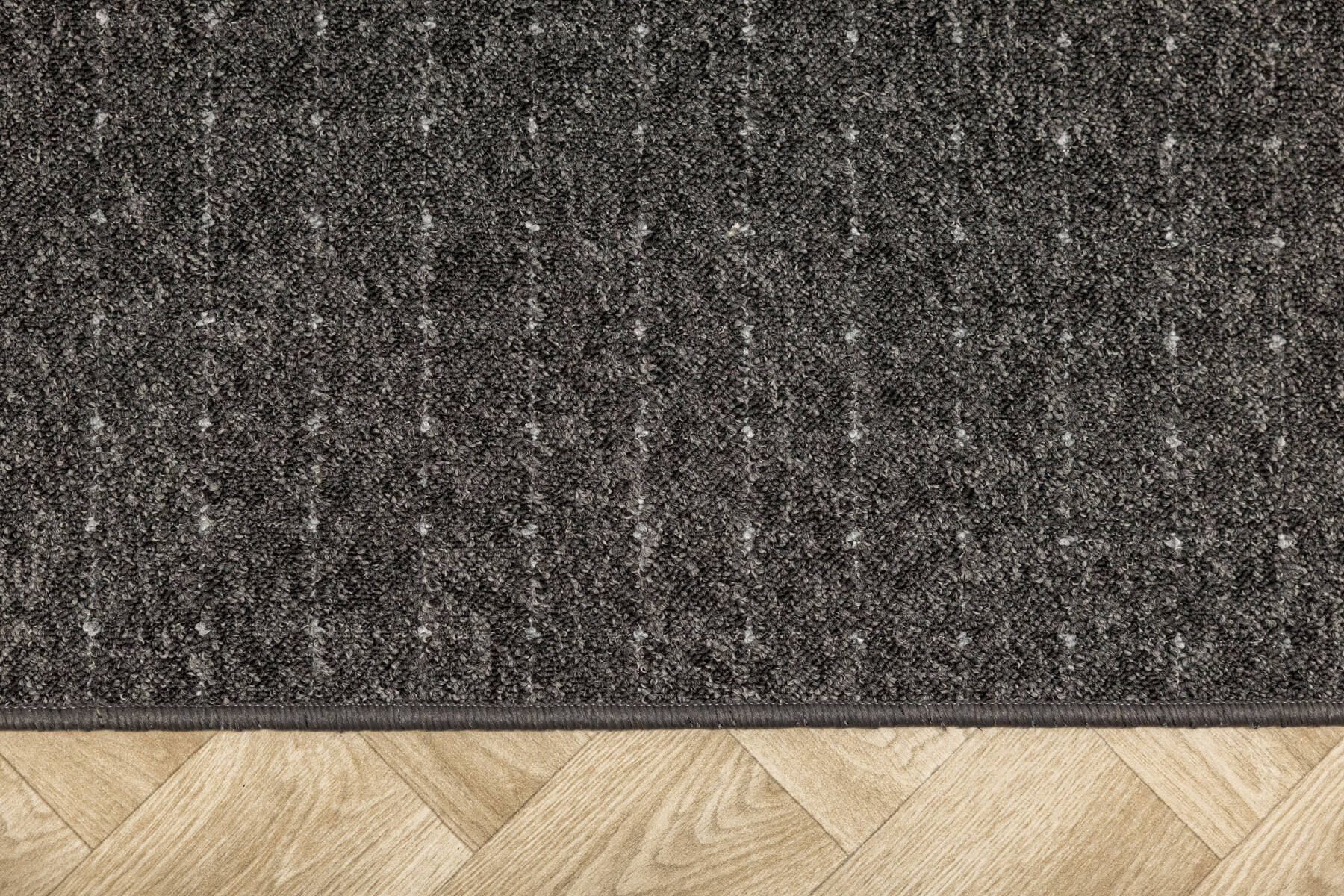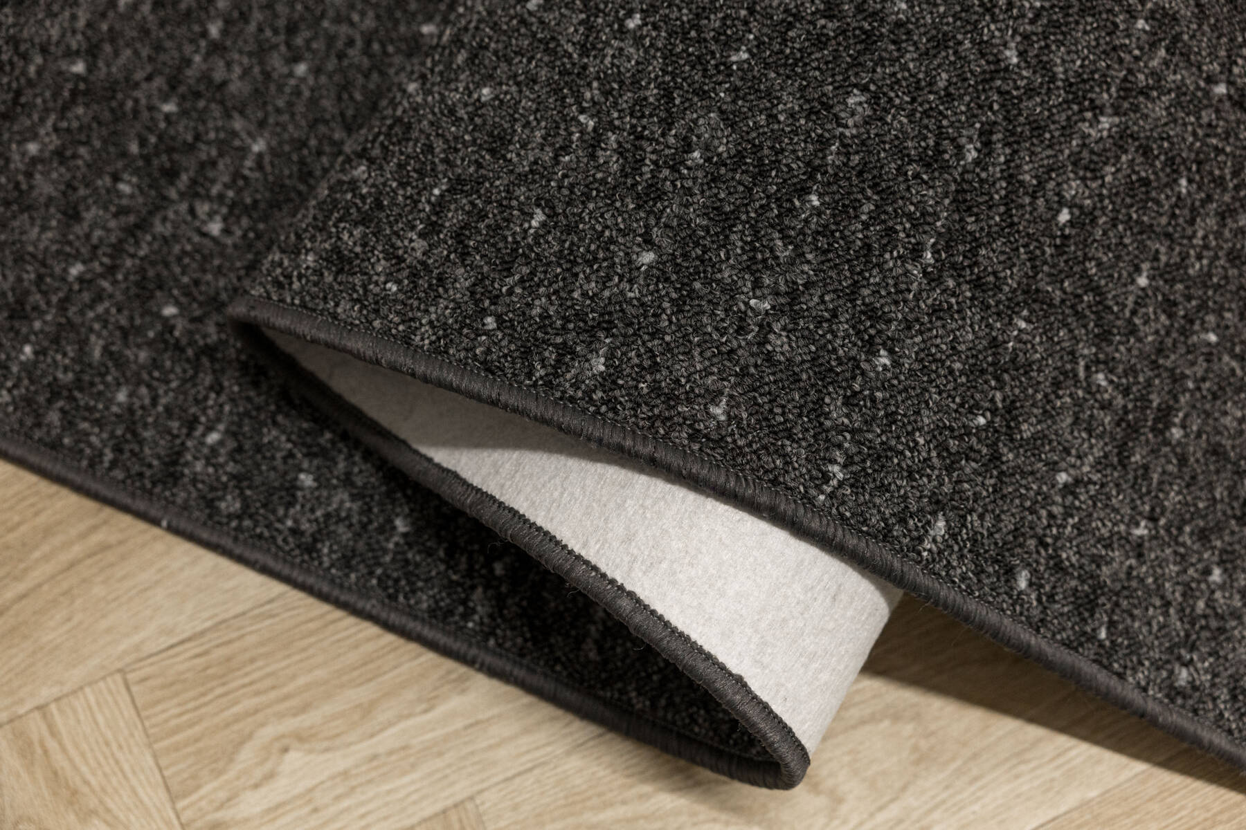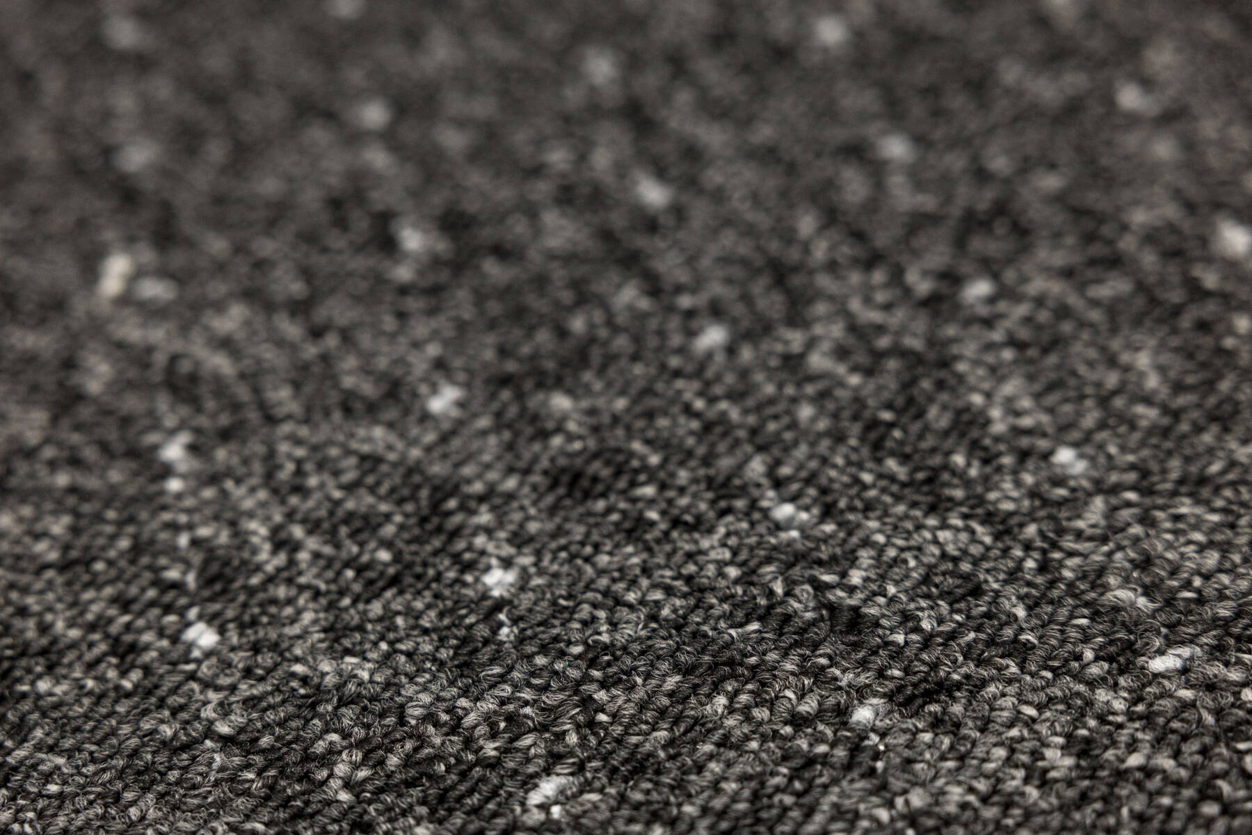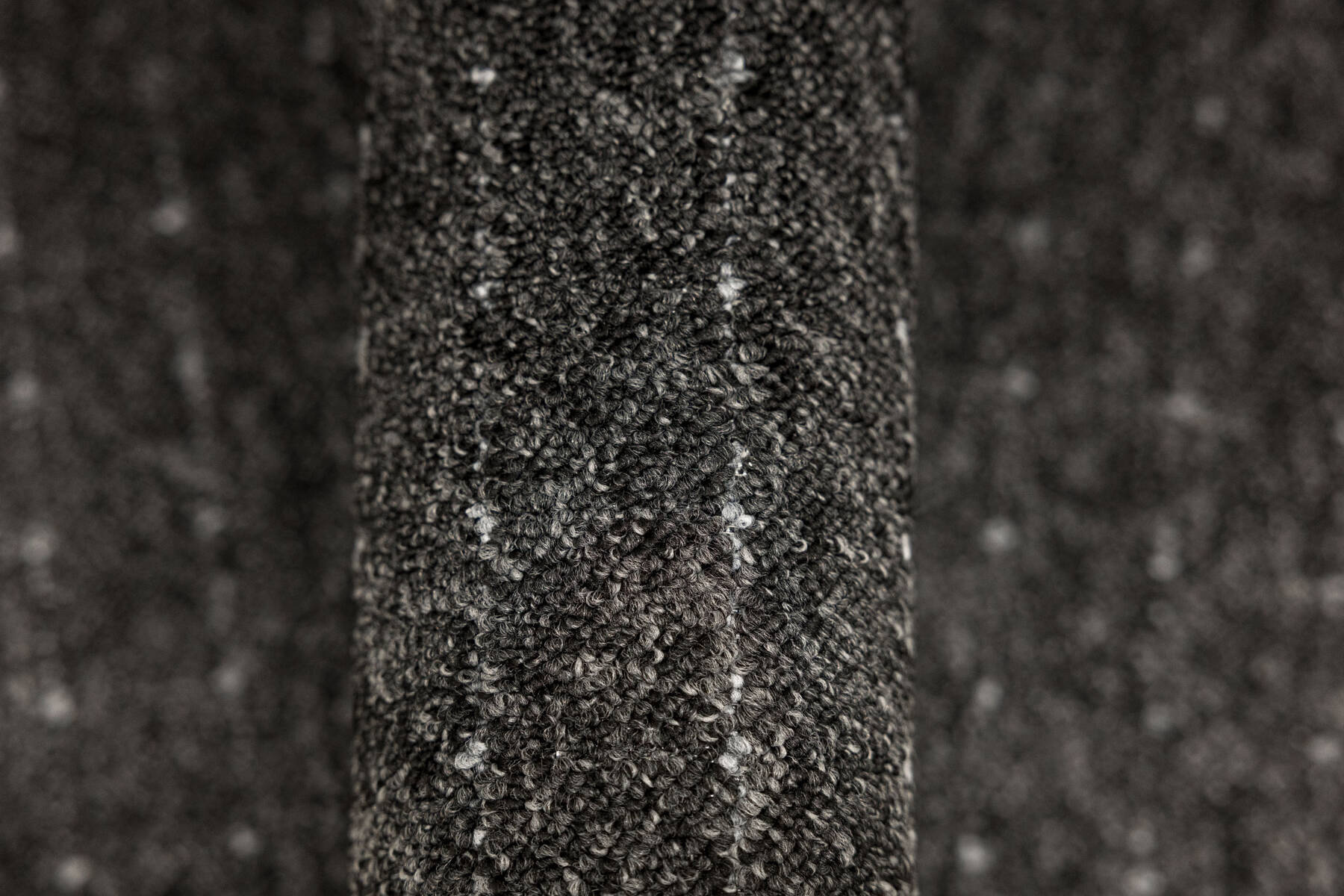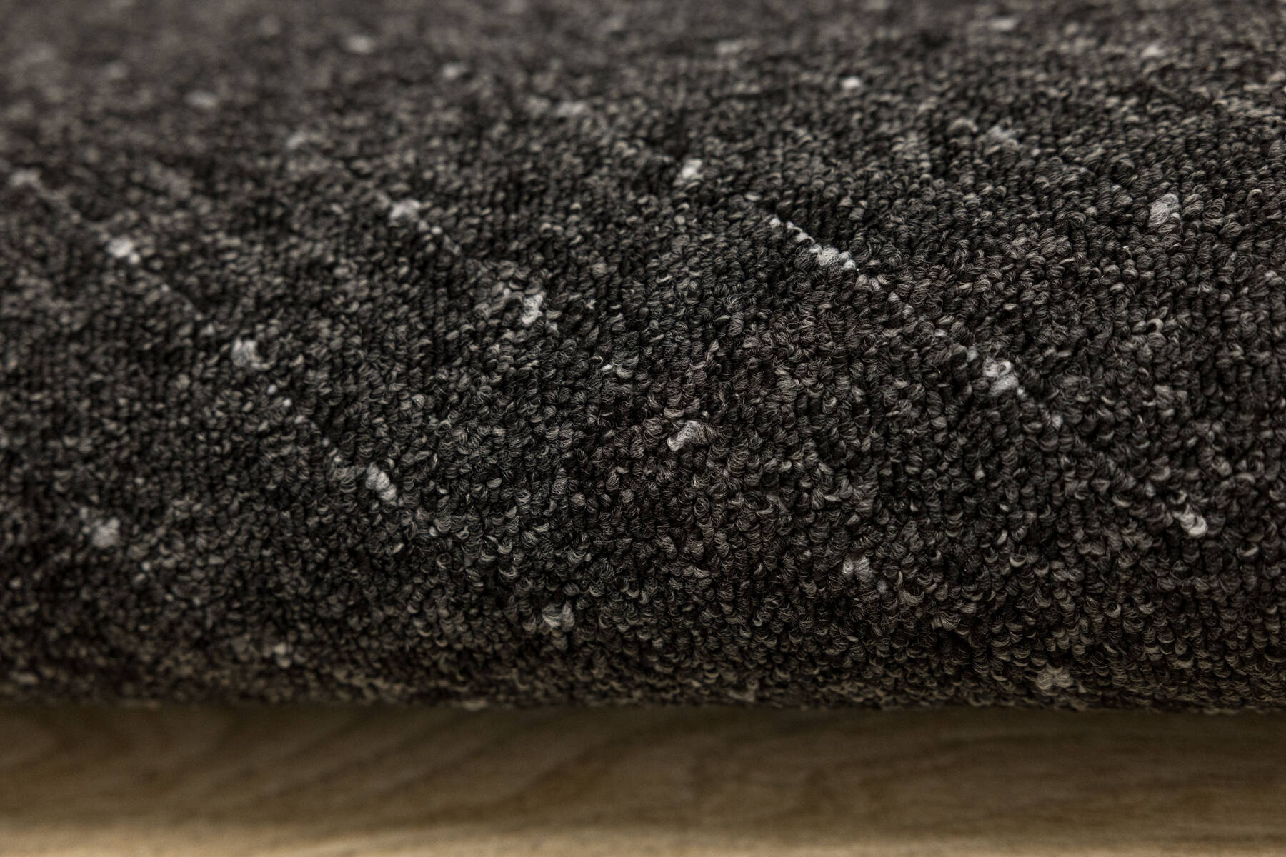 • Wykładzina pętelkowa Zembla o zastosowaniu domowym z melanżowym runem w kratkę w praktycznych odcieniach szarości i grafitu, ze spodem wykończonym filcem.