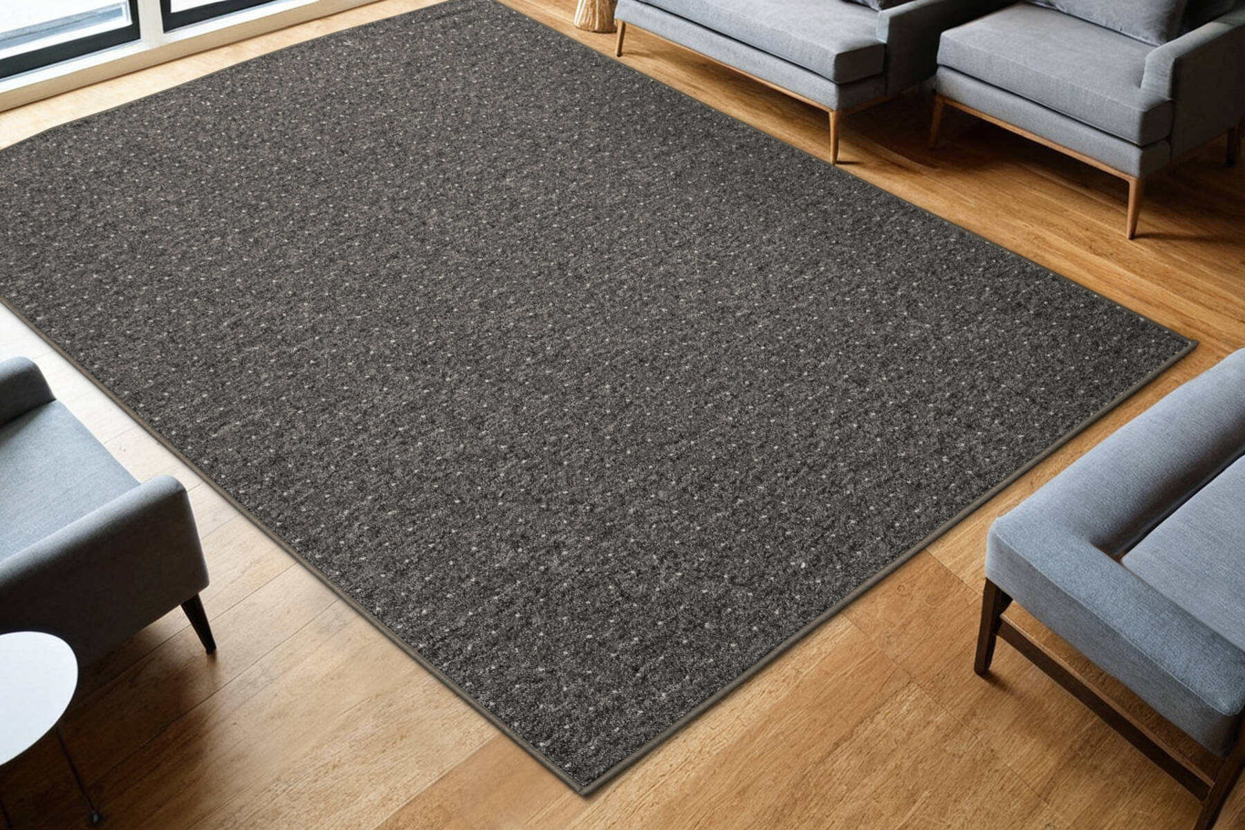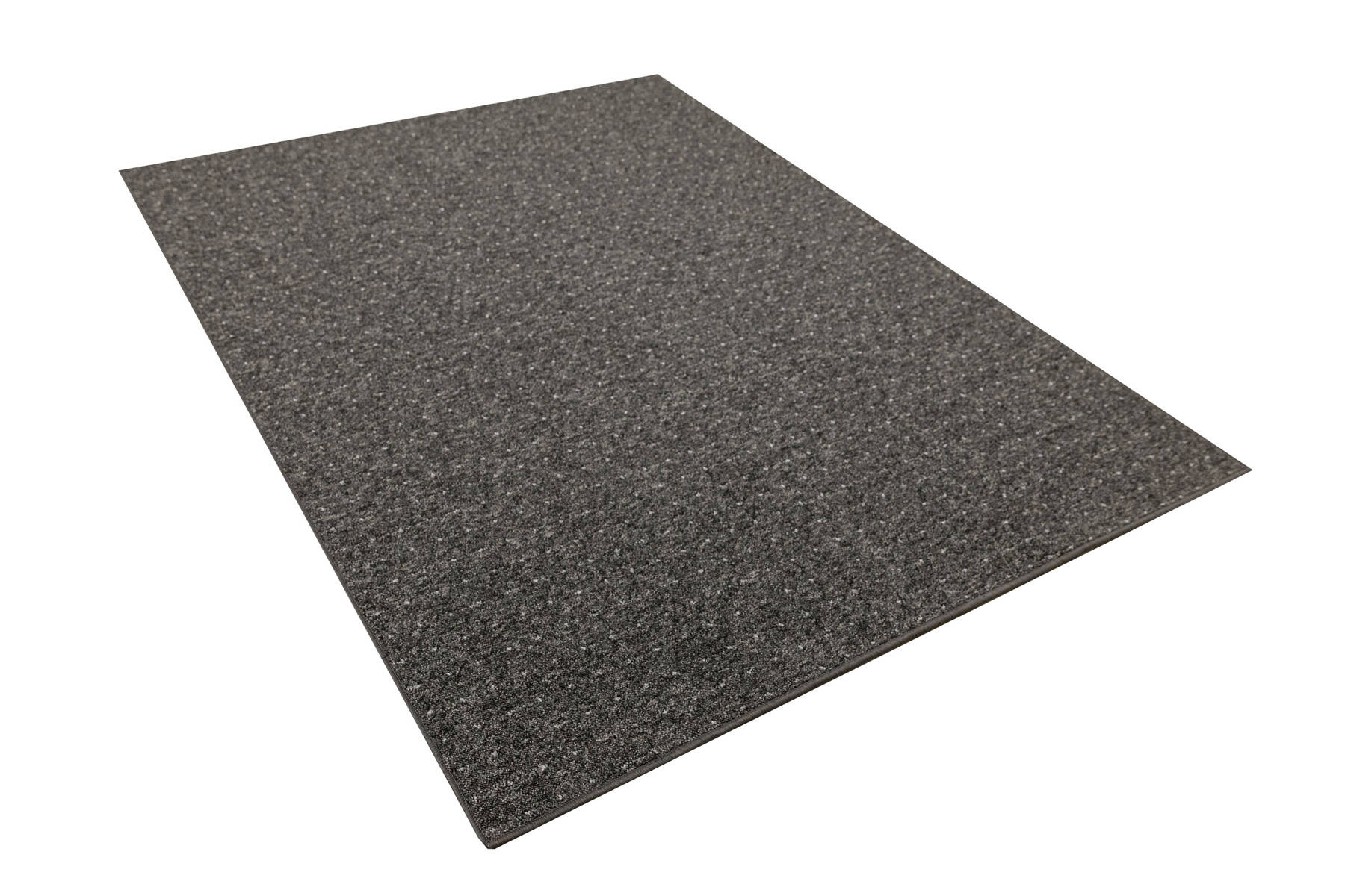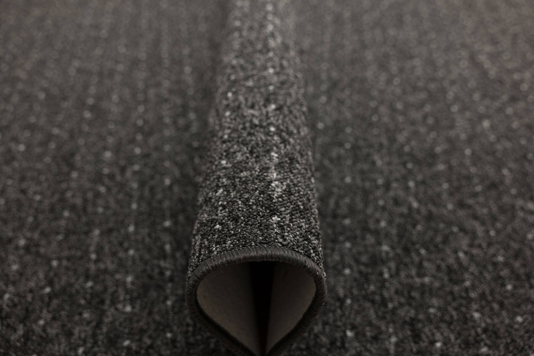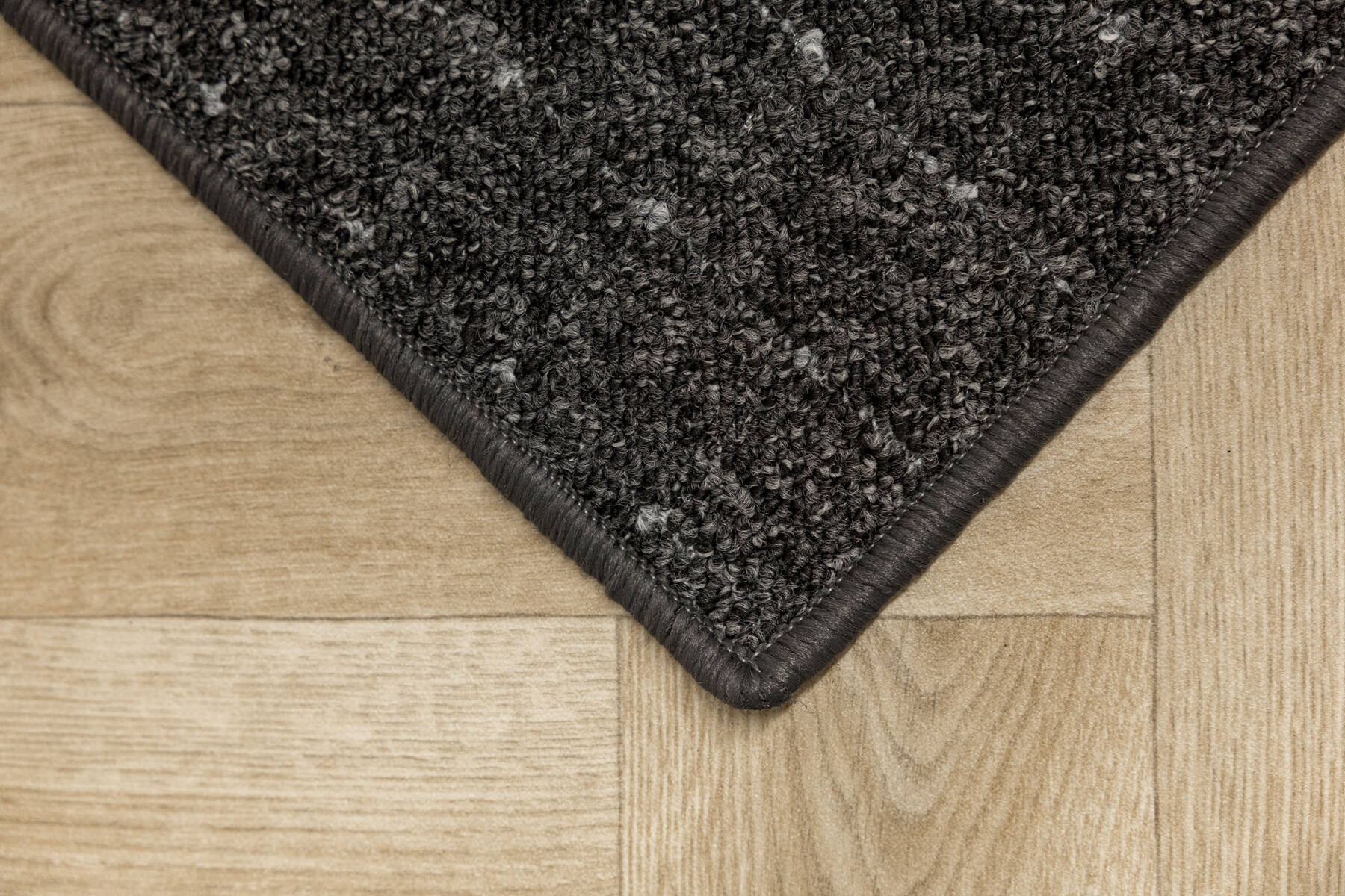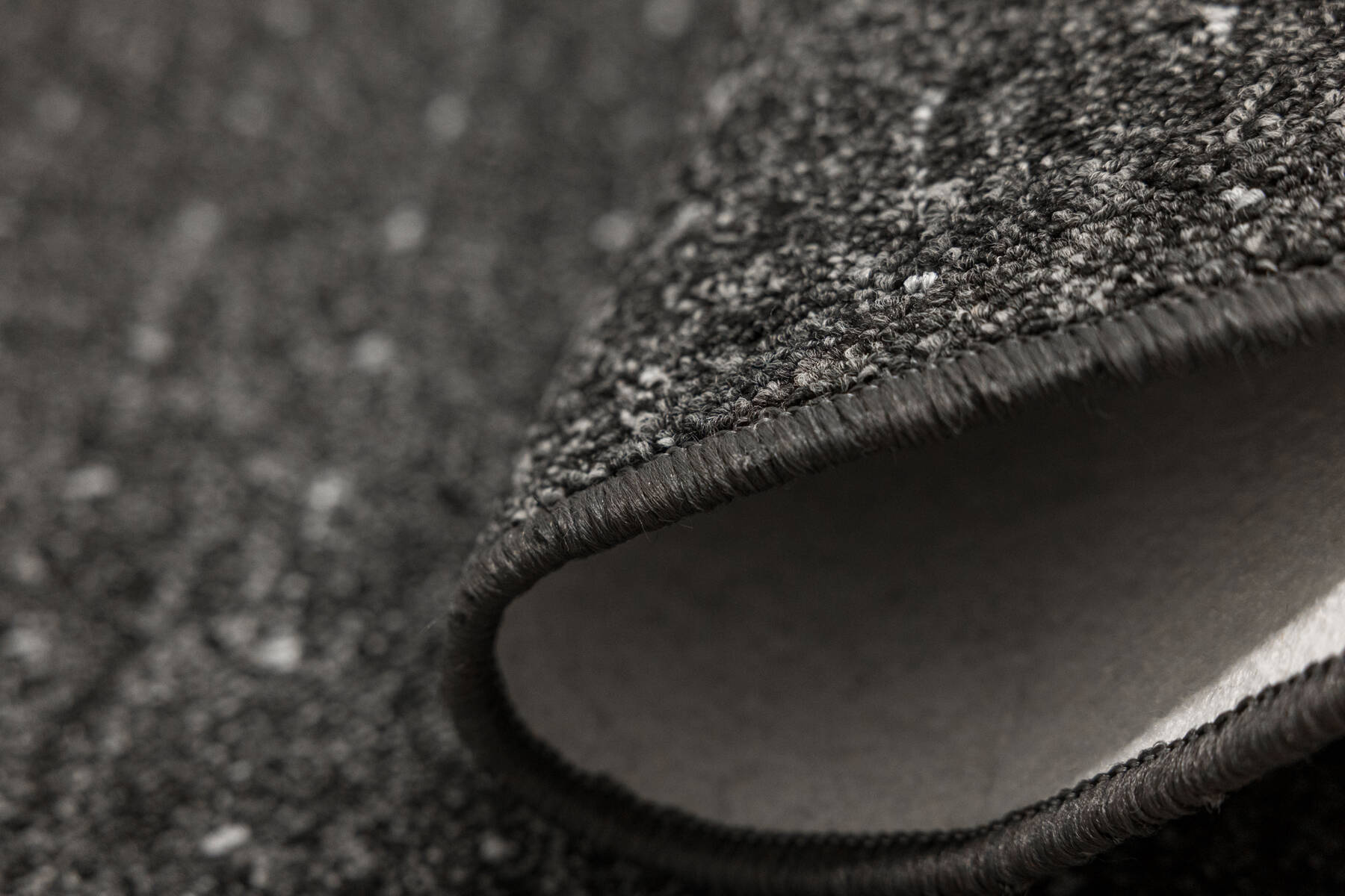 • Wykładzina pętelkowa Zembla o zastosowaniu domowym z melanżowym runem w kratkę w praktycznych odcieniach szarości i grafitu, ze spodem wykończonym filcem.