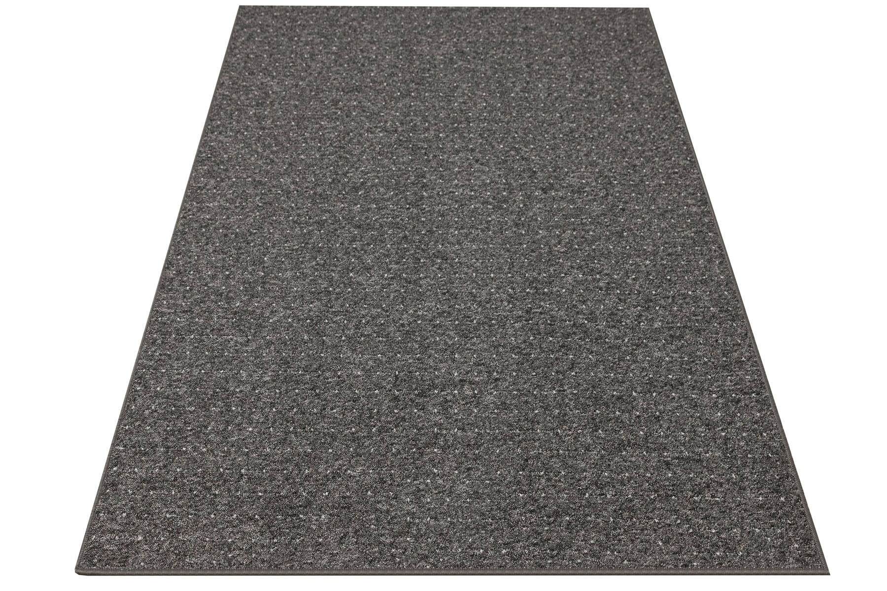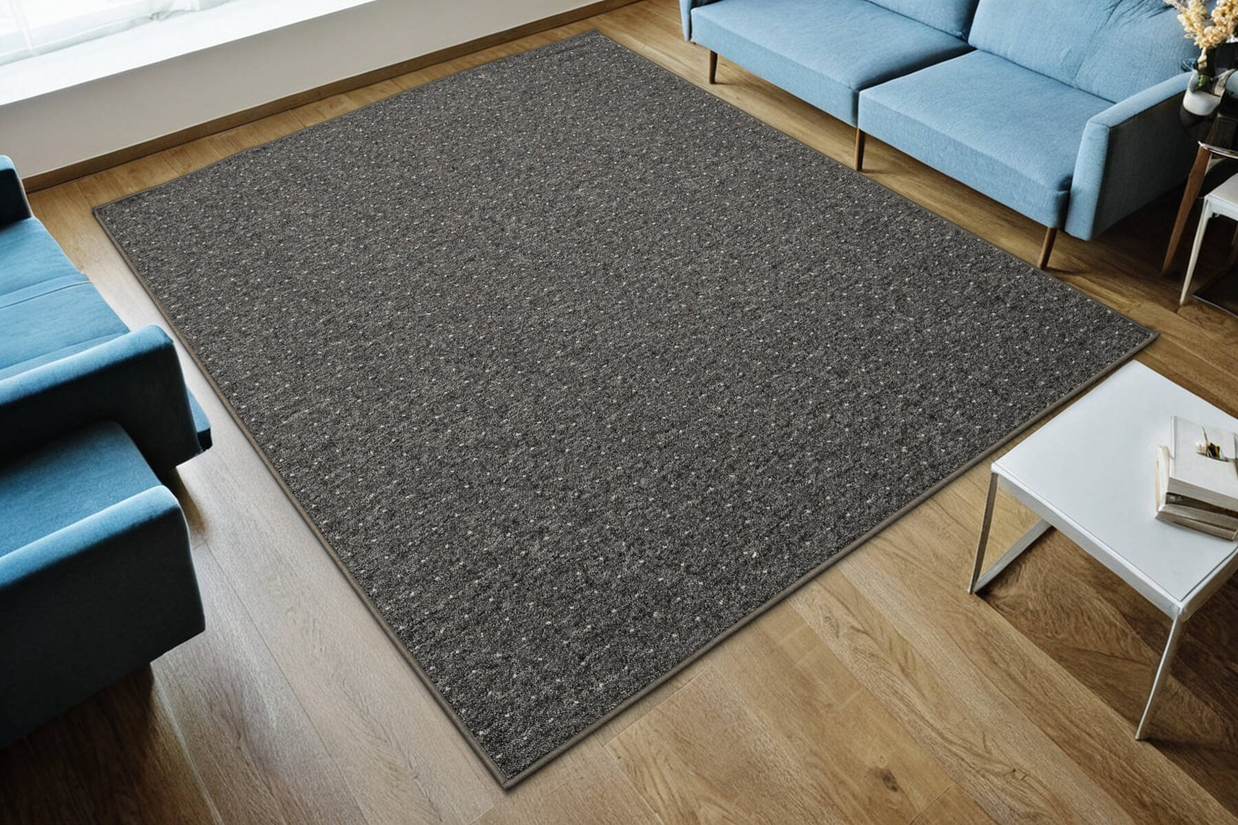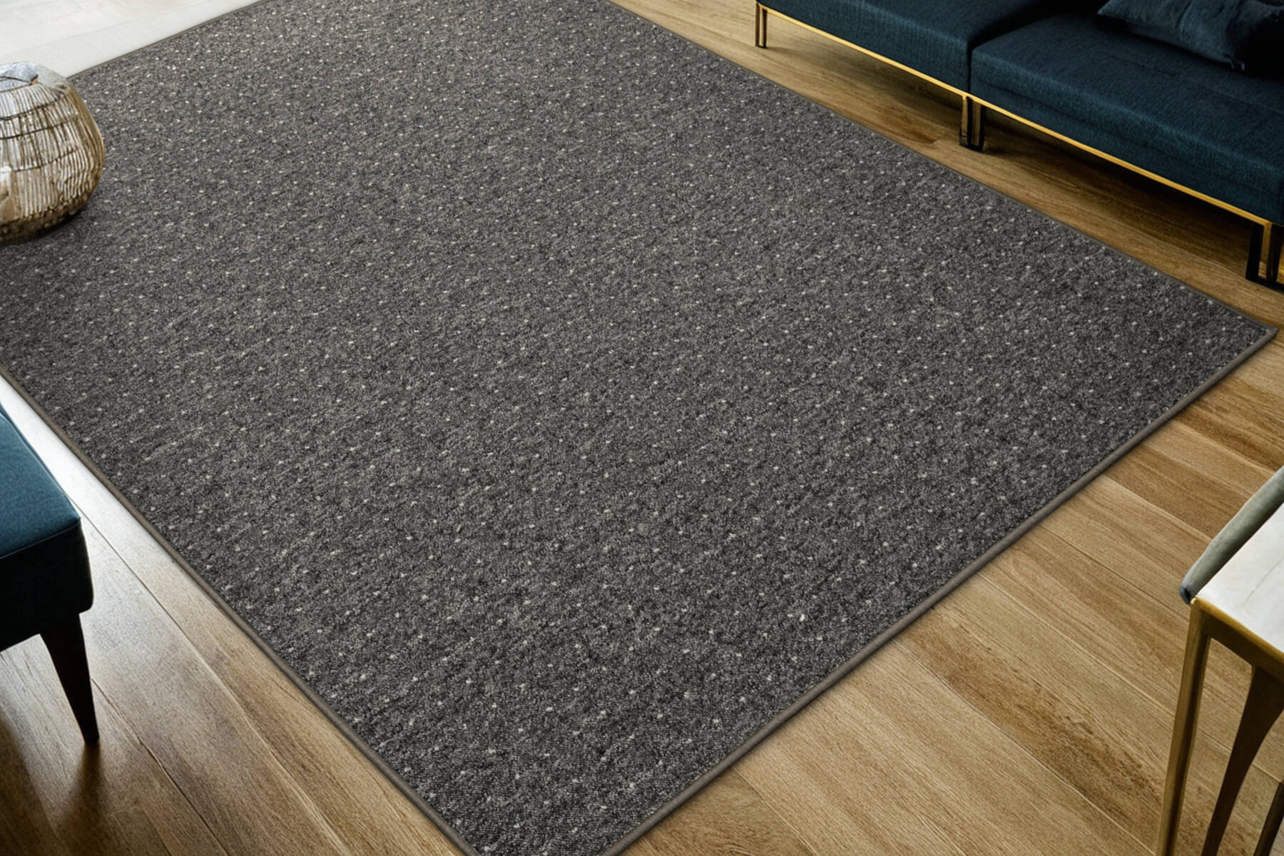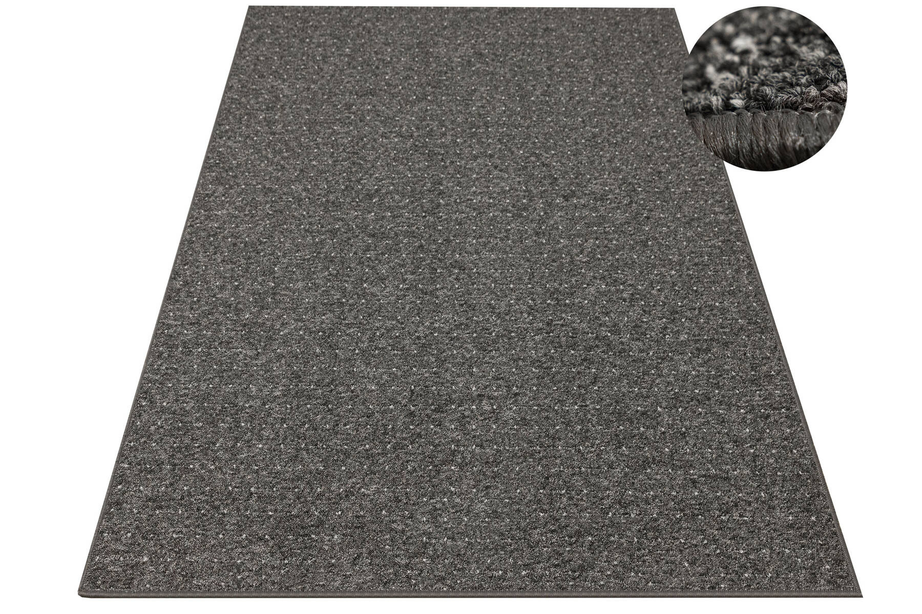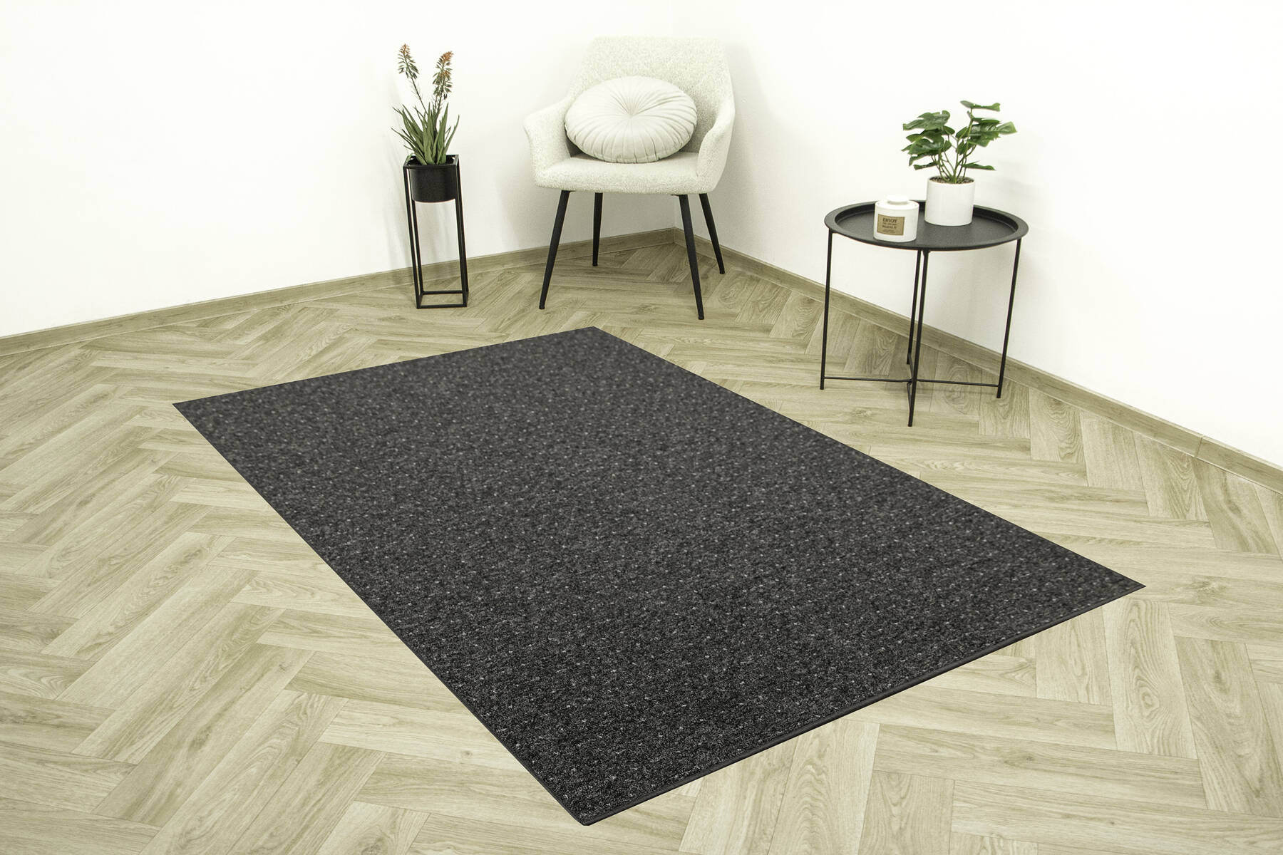 • Wykładzina pętelkowa Zembla o zastosowaniu domowym z melanżowym runem w kratkę w praktycznych odcieniach szarości i grafitu, ze spodem wykończonym filcem.