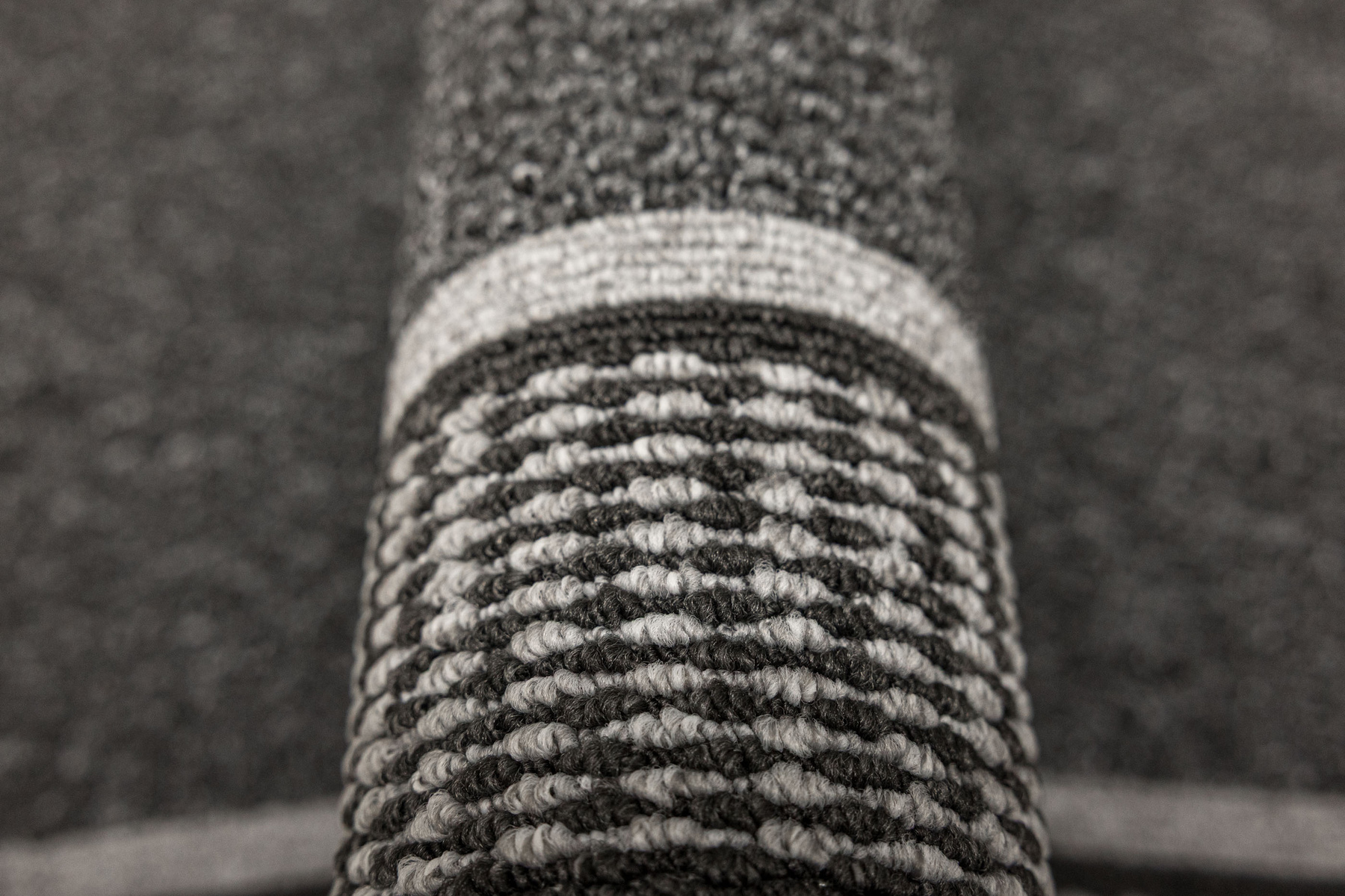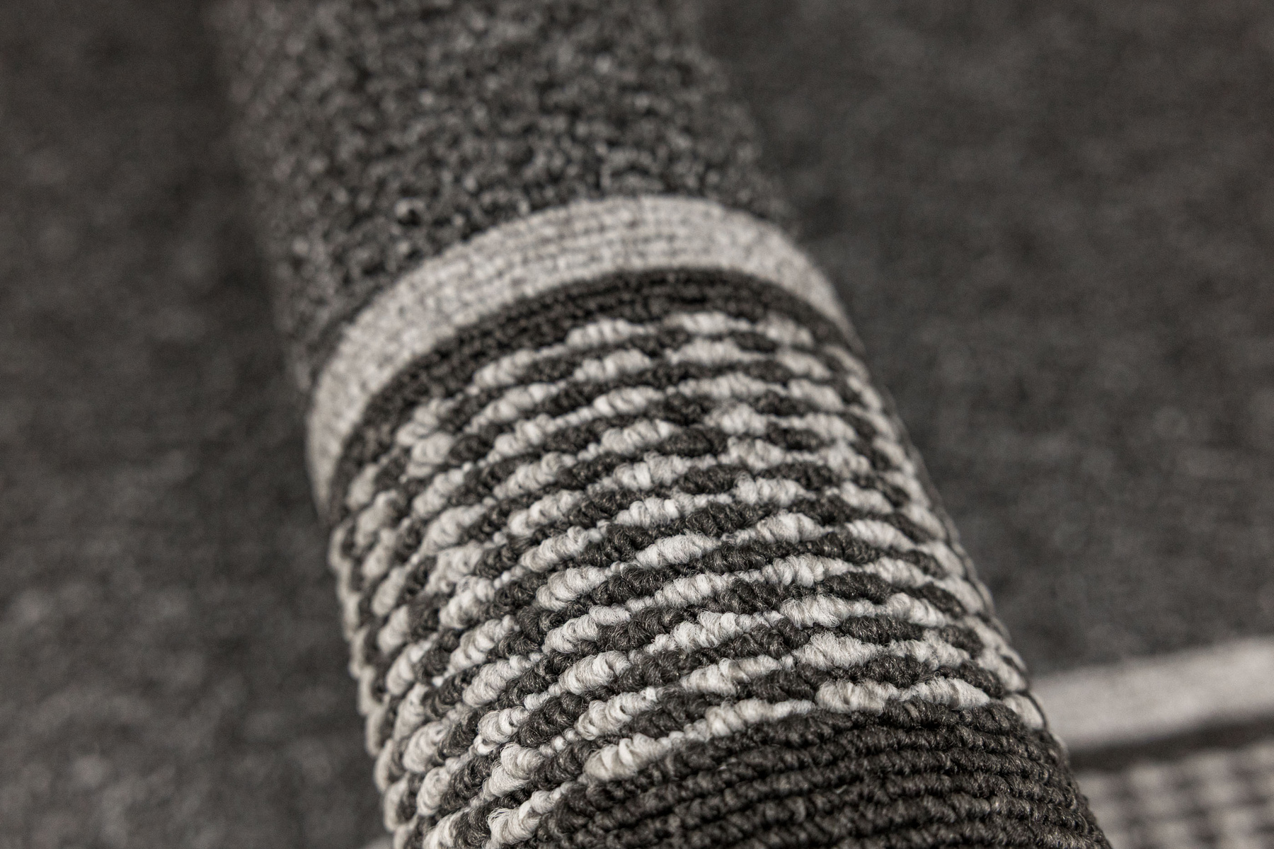 - Chodnik sznurkowy Promenade z minimalistycznym, geometrycznym wzorem z motywem pasków, linii w odcieniach szarości.