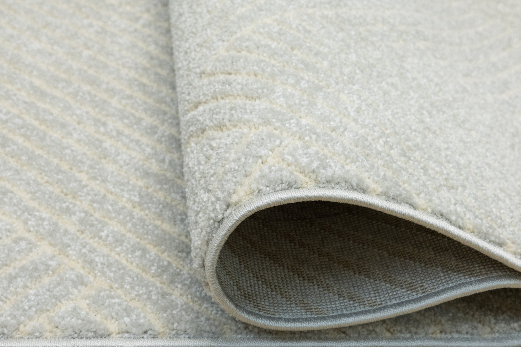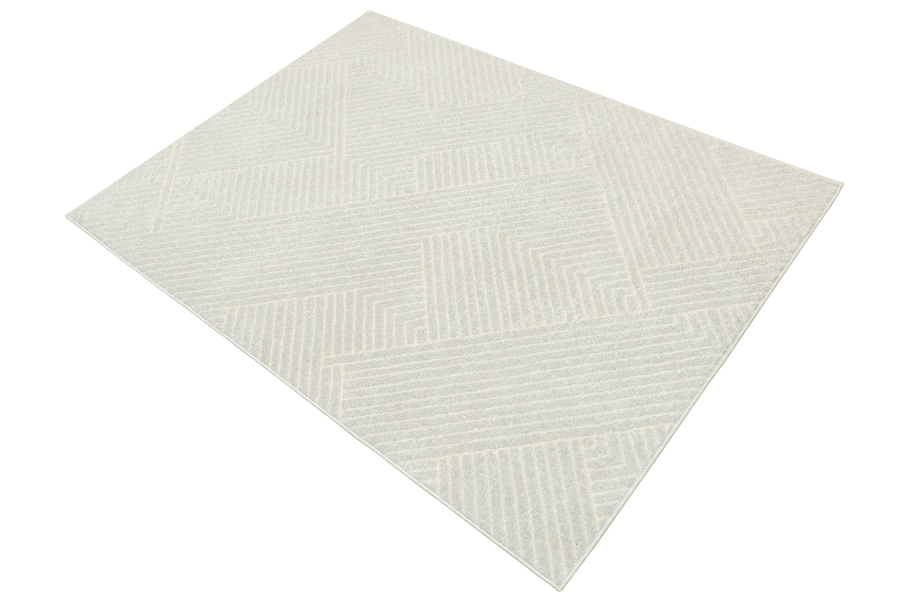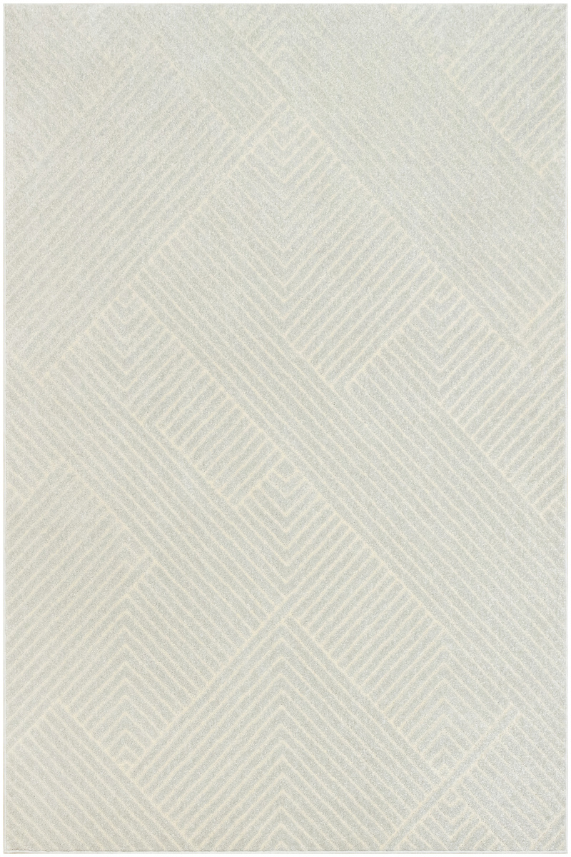 • Miękki i przyjemny w dotyku dywan Matara o dwupoziomowym runie ozdobionym symetrycznym, geometrycznym wzorem w srebrzystej szarości i kremie. Spód wykończony jutą.