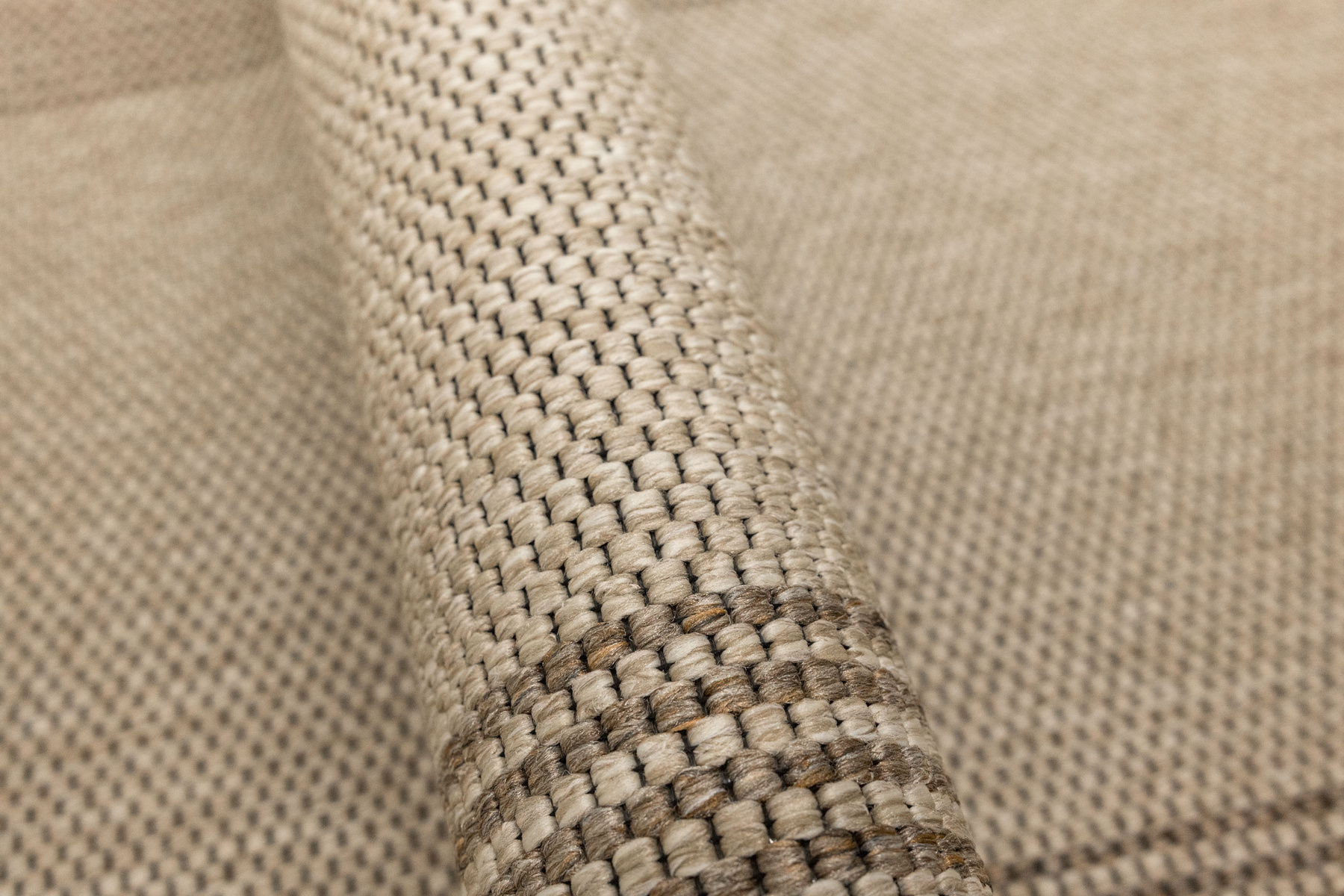 - Antypoślizgowy chodnik sznurkowy Natura Loper o runie ze wzorem geometrycznym z motywem pasków w odcieniach beżu i brązu oraz filcowanym spodem Eco Grip o antypoślizgowych właściwościach.
