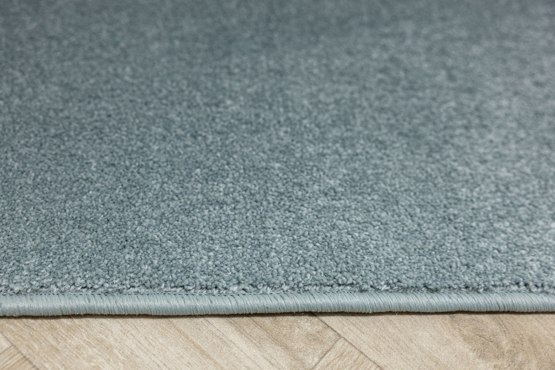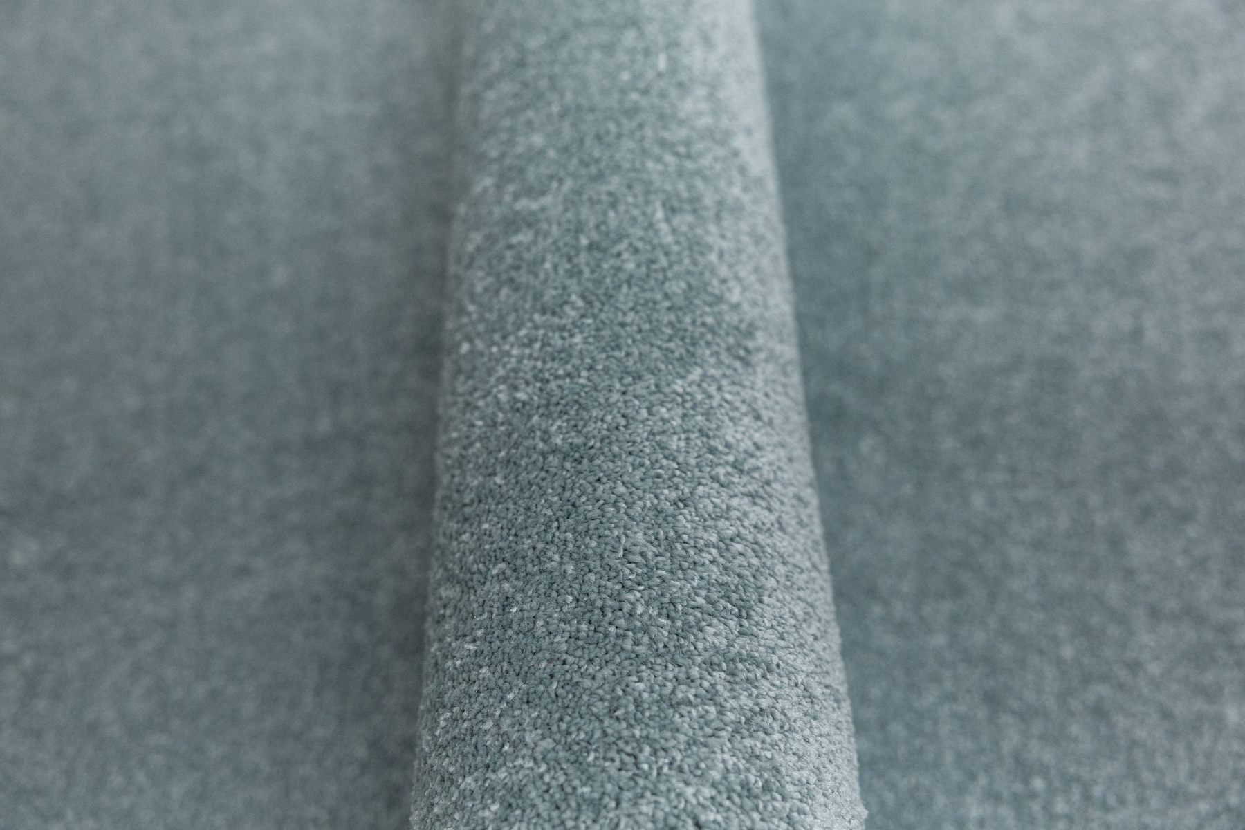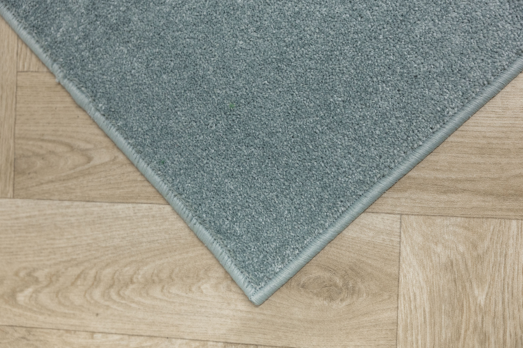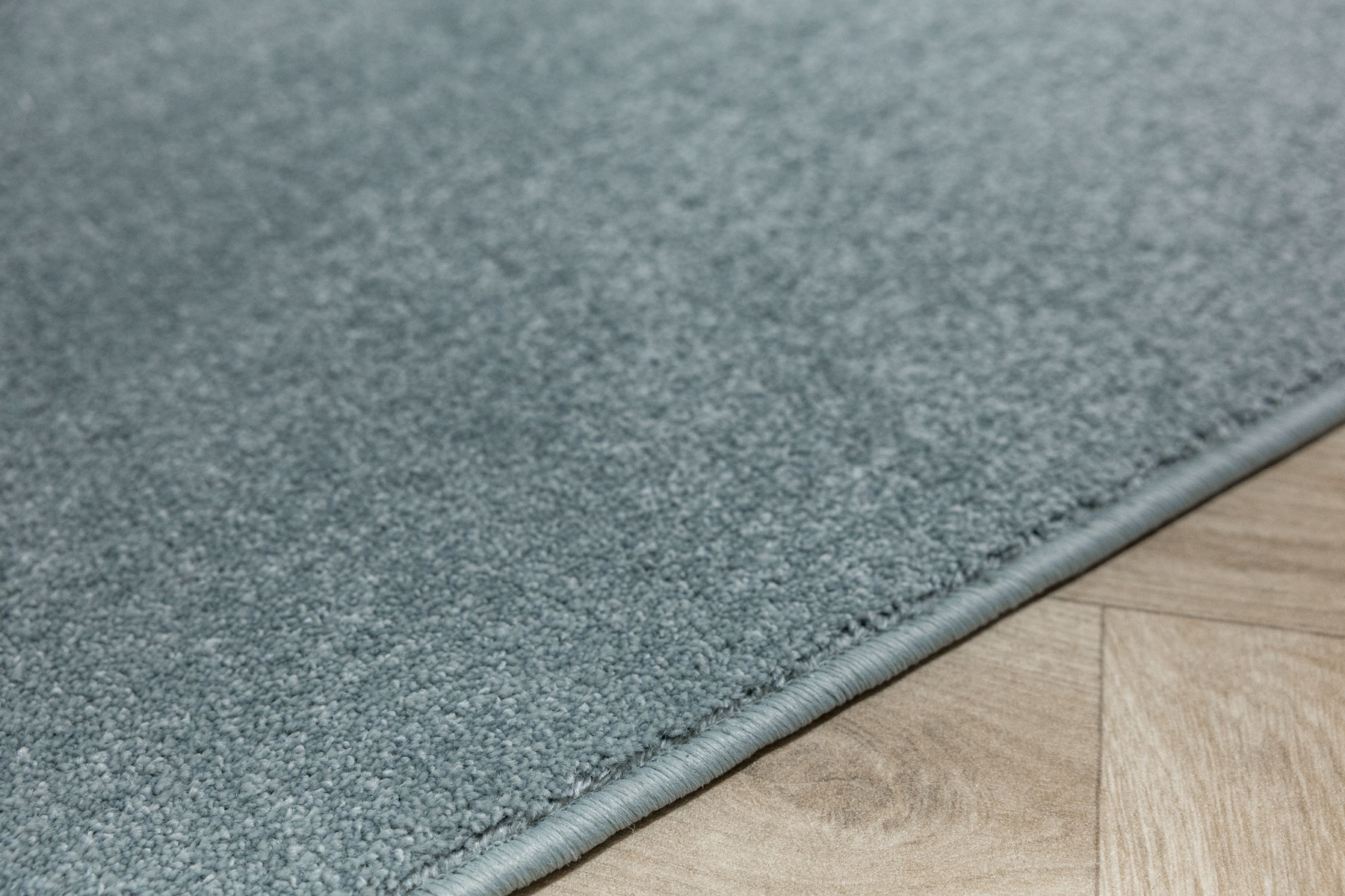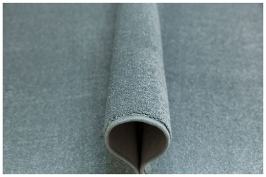 - Dywan wykonany z wykładziny Lazio z runem ciętym typu saxon w modnym odcieniu gołębiego błękitu i spodem wykończonym w filcu.