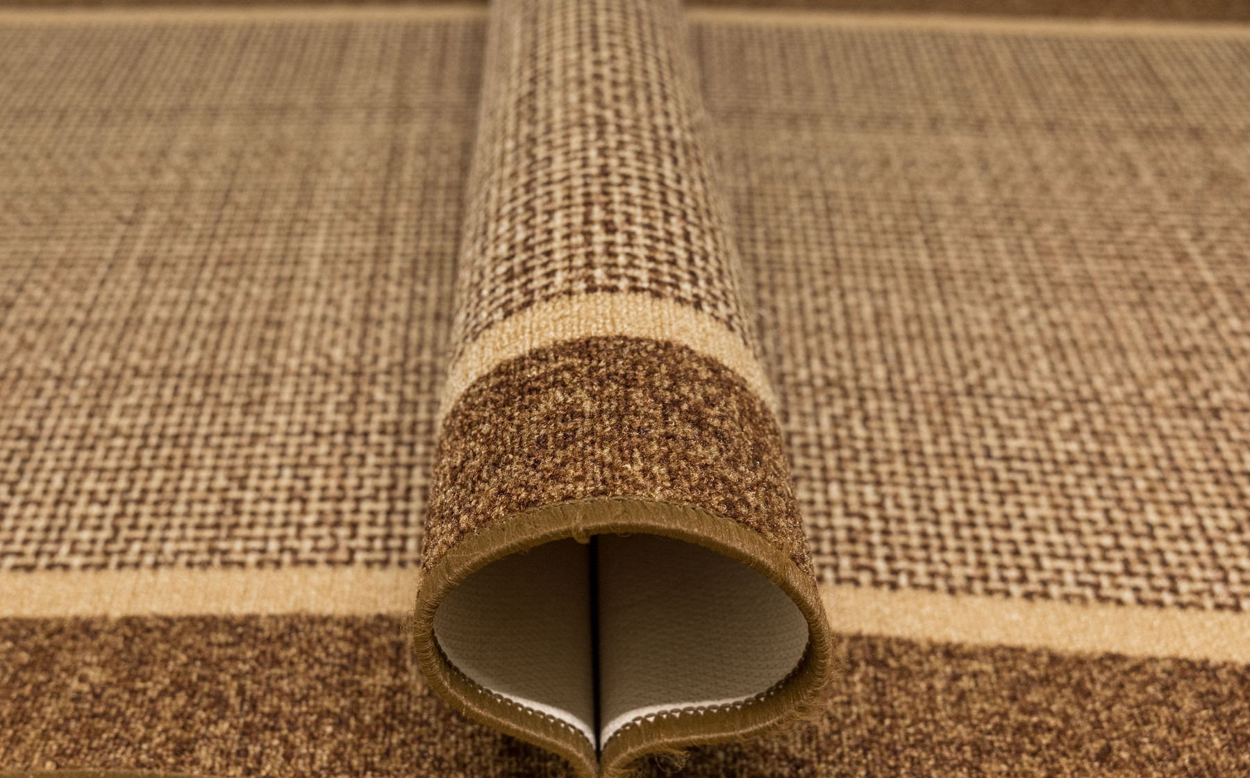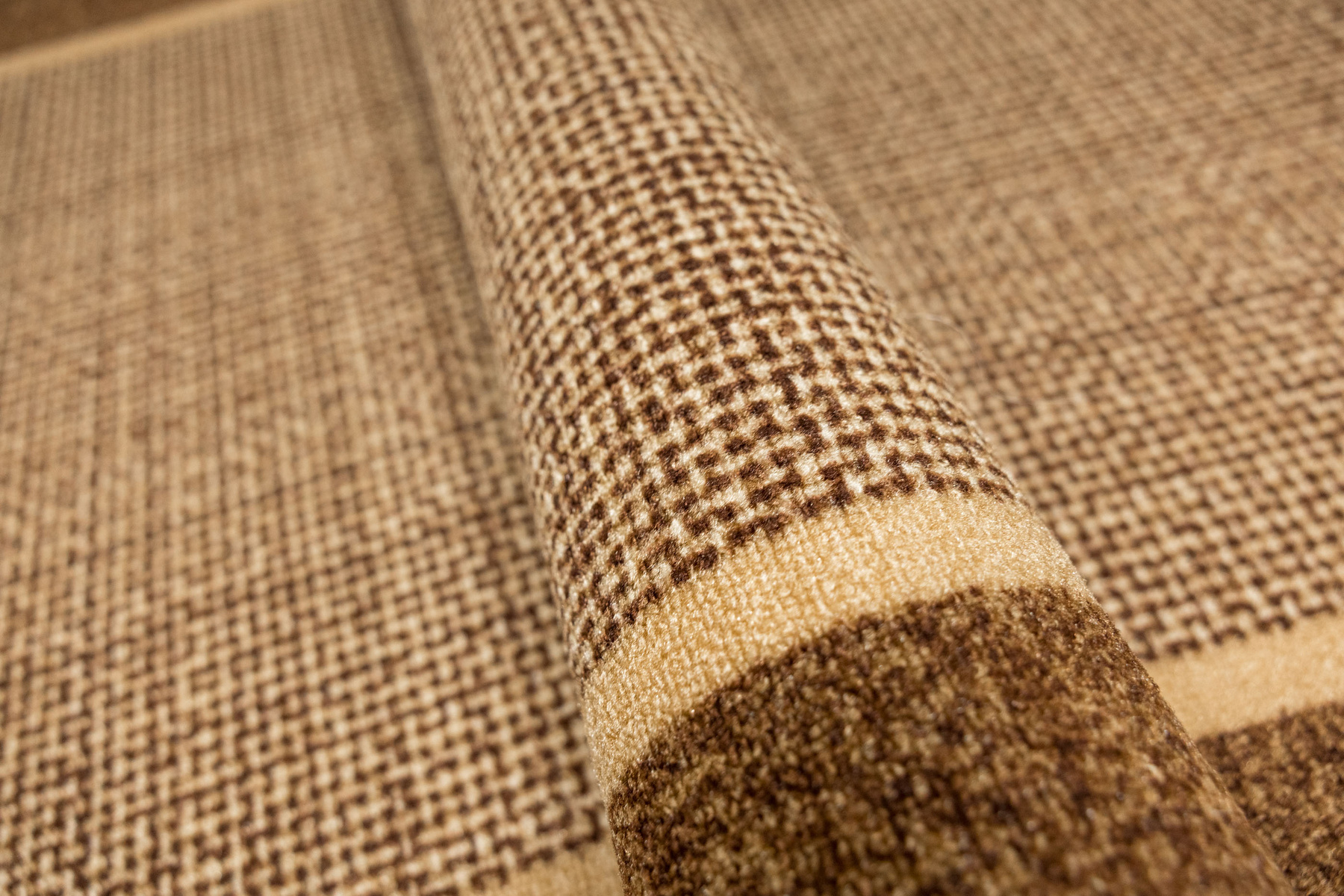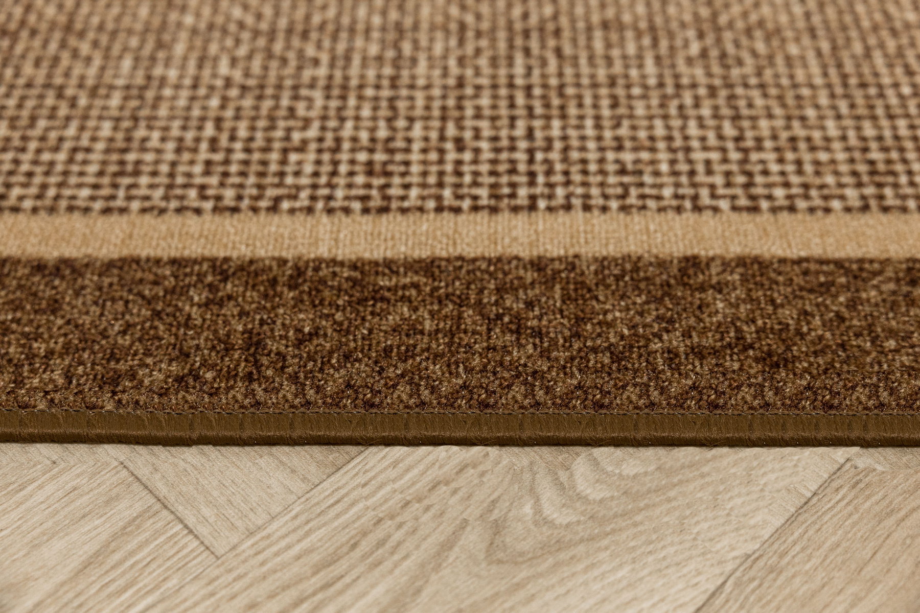 • Chodnik antypoślizgowy Terez z niskim pętelkowym runem o eleganckim, geometrycznym wzorze w odcieniach beżu i brązu oraz podgumowanym spodem.
