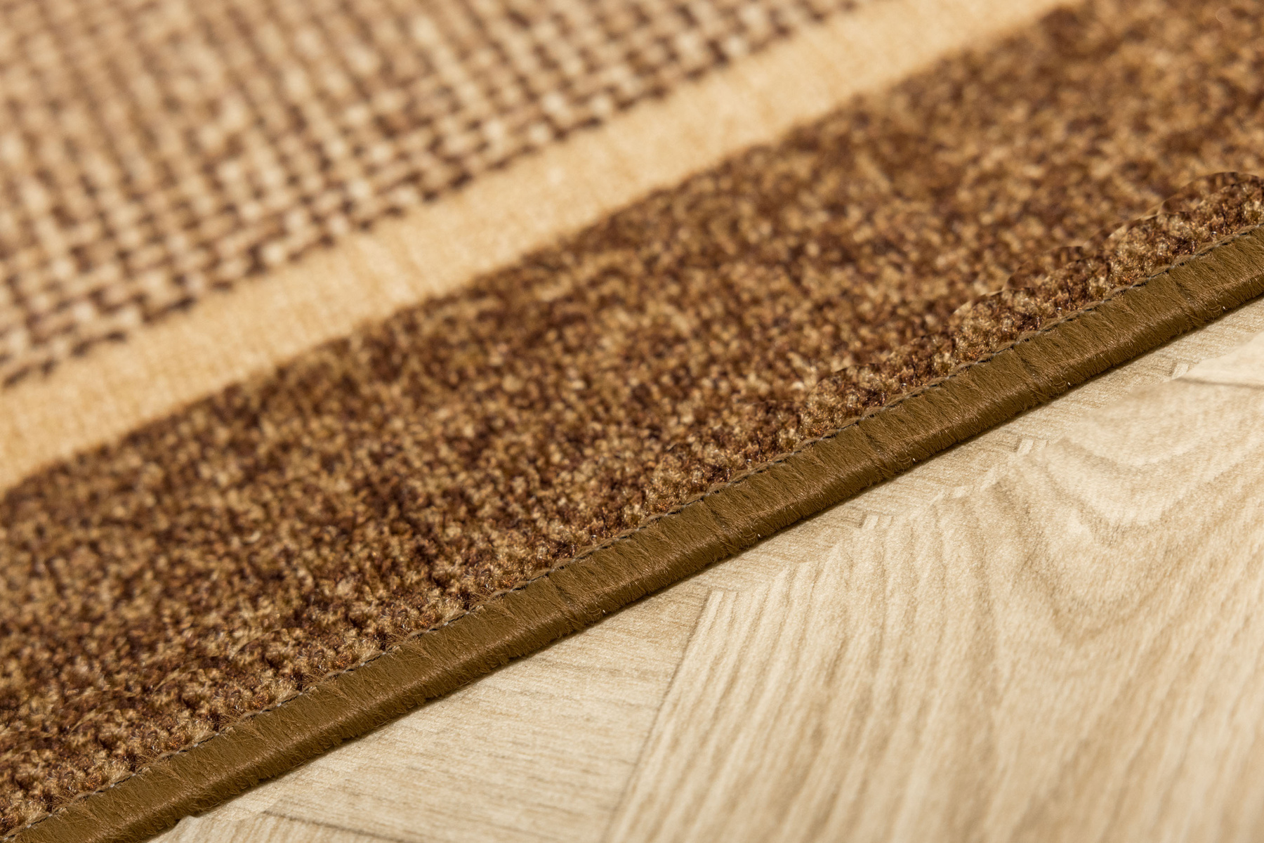 - Chodnik antypoślizgowy Terez z niskim pętelkowym runem o eleganckim, geometrycznym wzorze w odcieniach beżu i brązu oraz podgumowanym spodem.