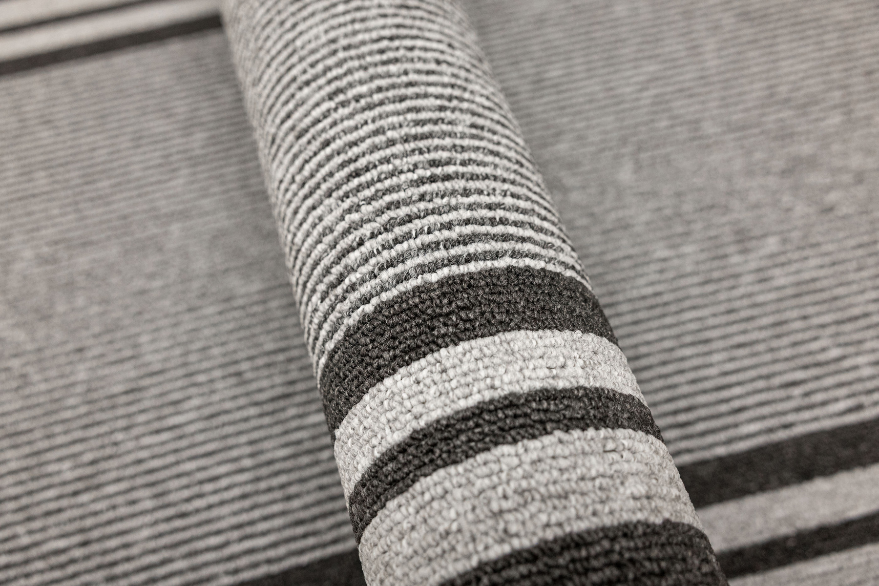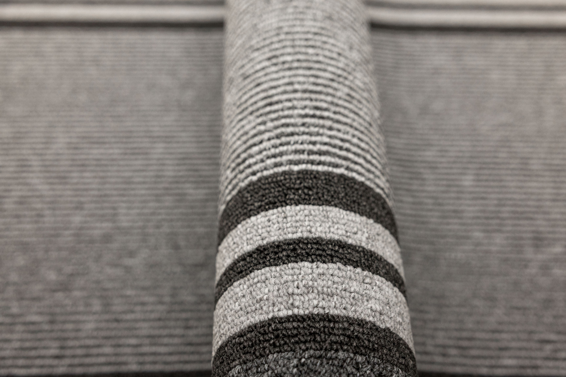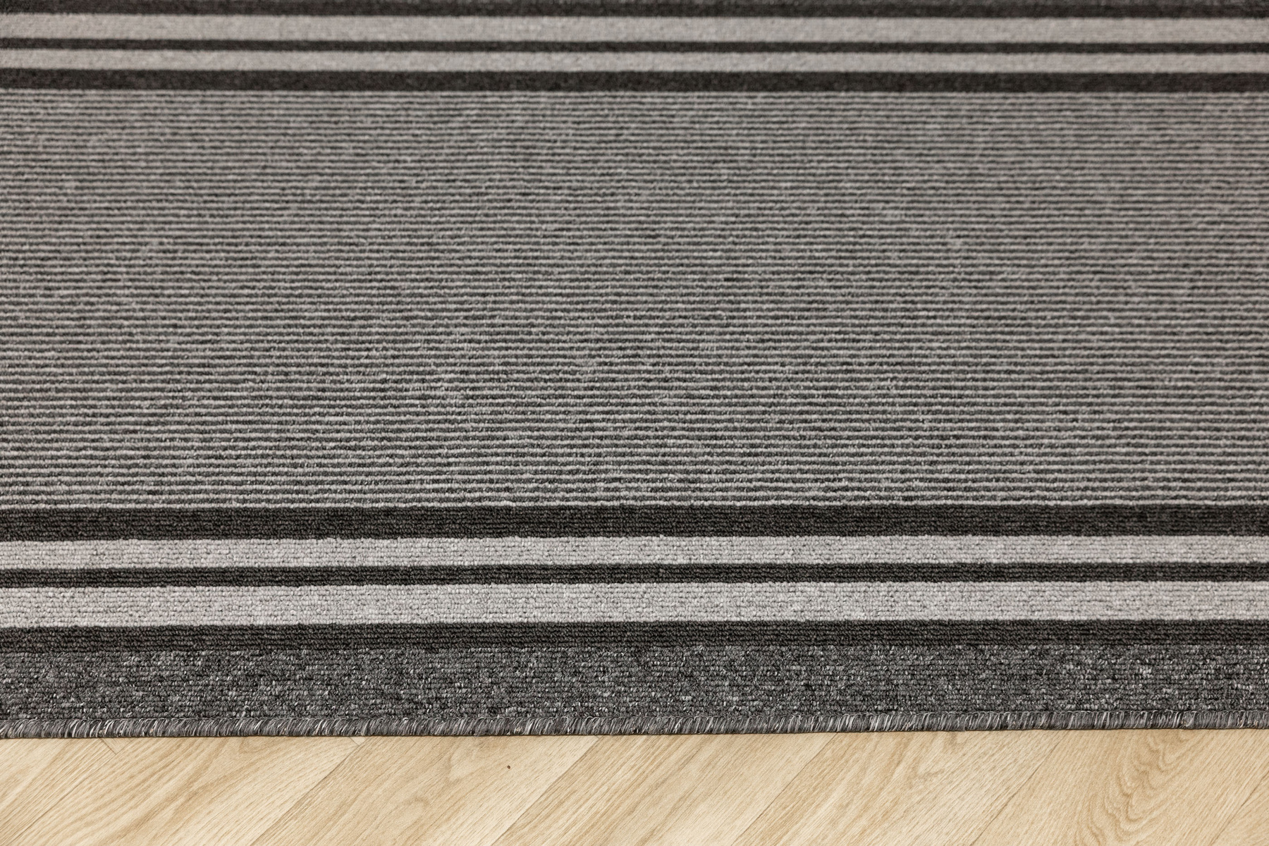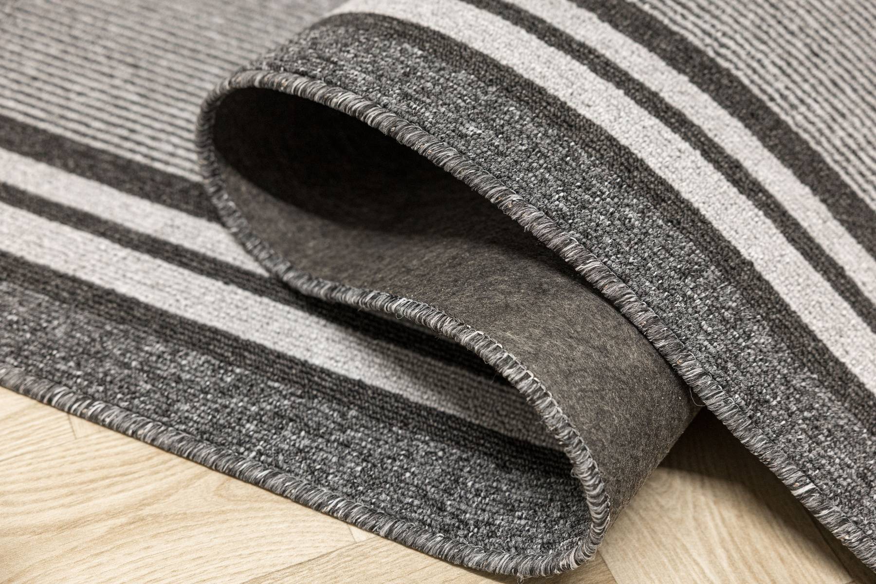 - Chodnik sznurkowy Colorado z minimalistycznym, geometrycznym wzorem z motywem pasków, linii w odcieniach szarości z filcowym podkładem typu ECO Grip o antypoślizgowych właściwościach.