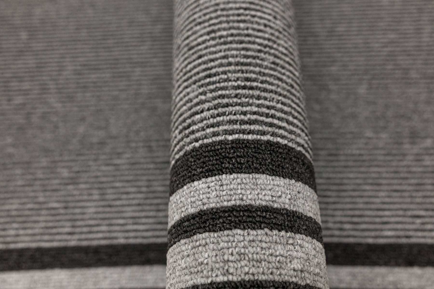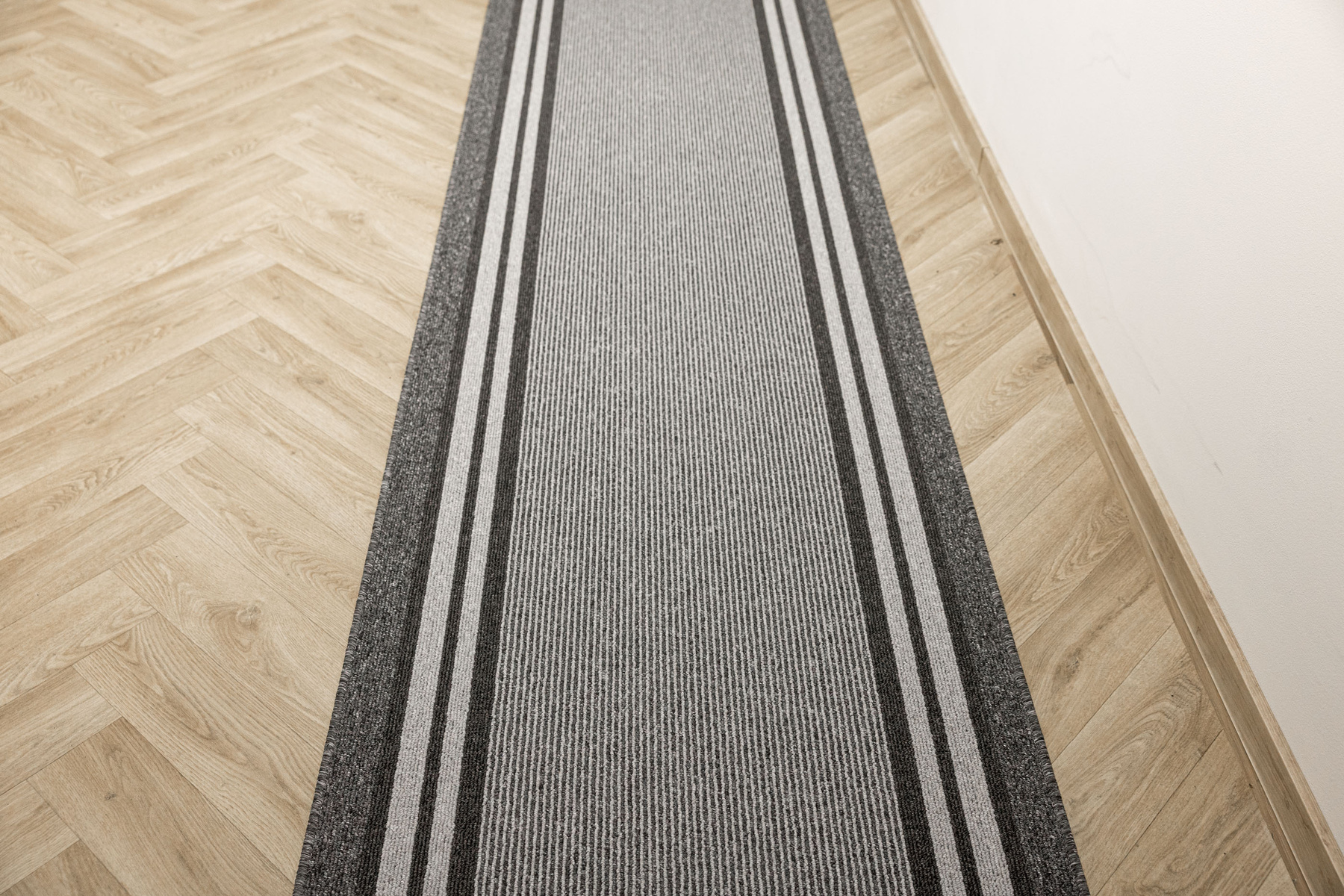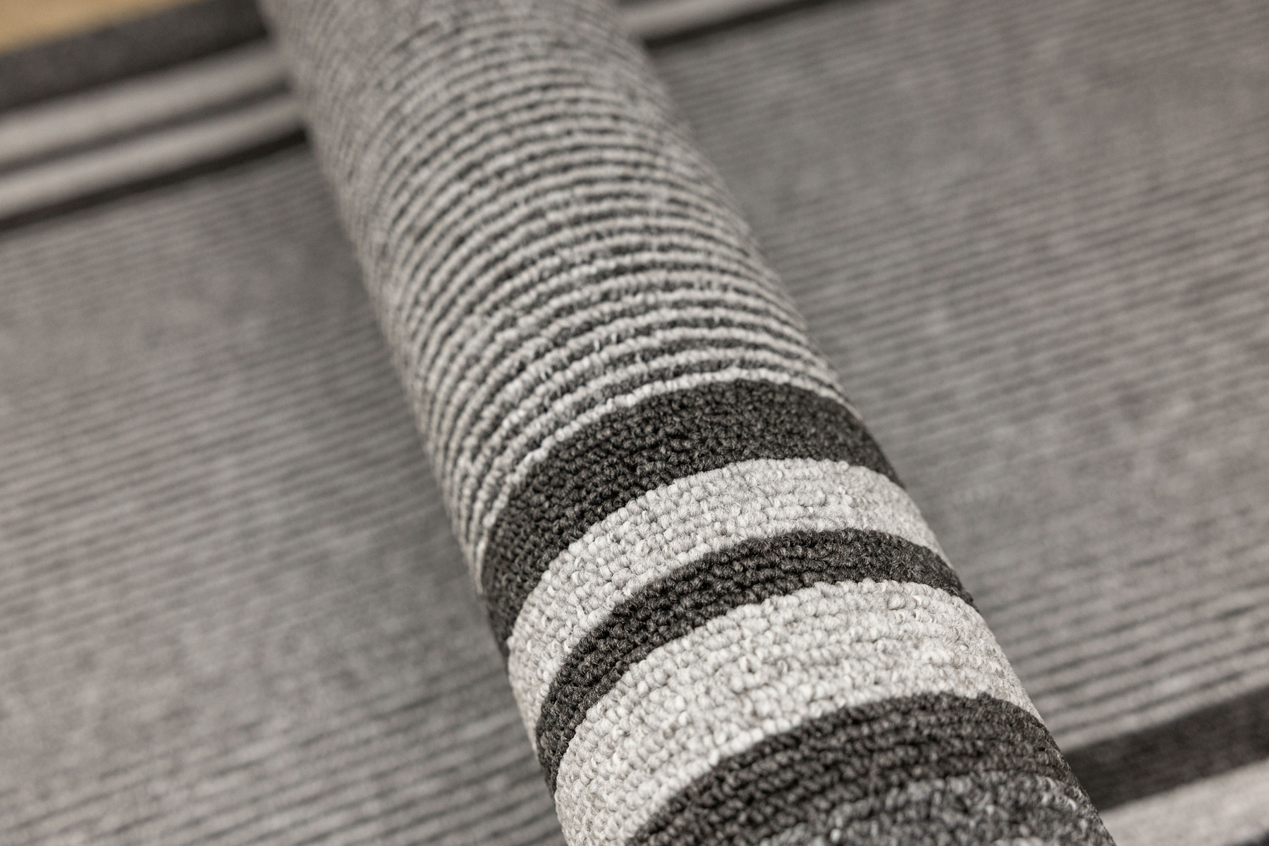 - Chodnik sznurkowy Colorado z minimalistycznym, geometrycznym wzorem z motywem pasków, linii w odcieniach szarości z filcowym podkładem typu ECO Grip o antypoślizgowych właściwościach.