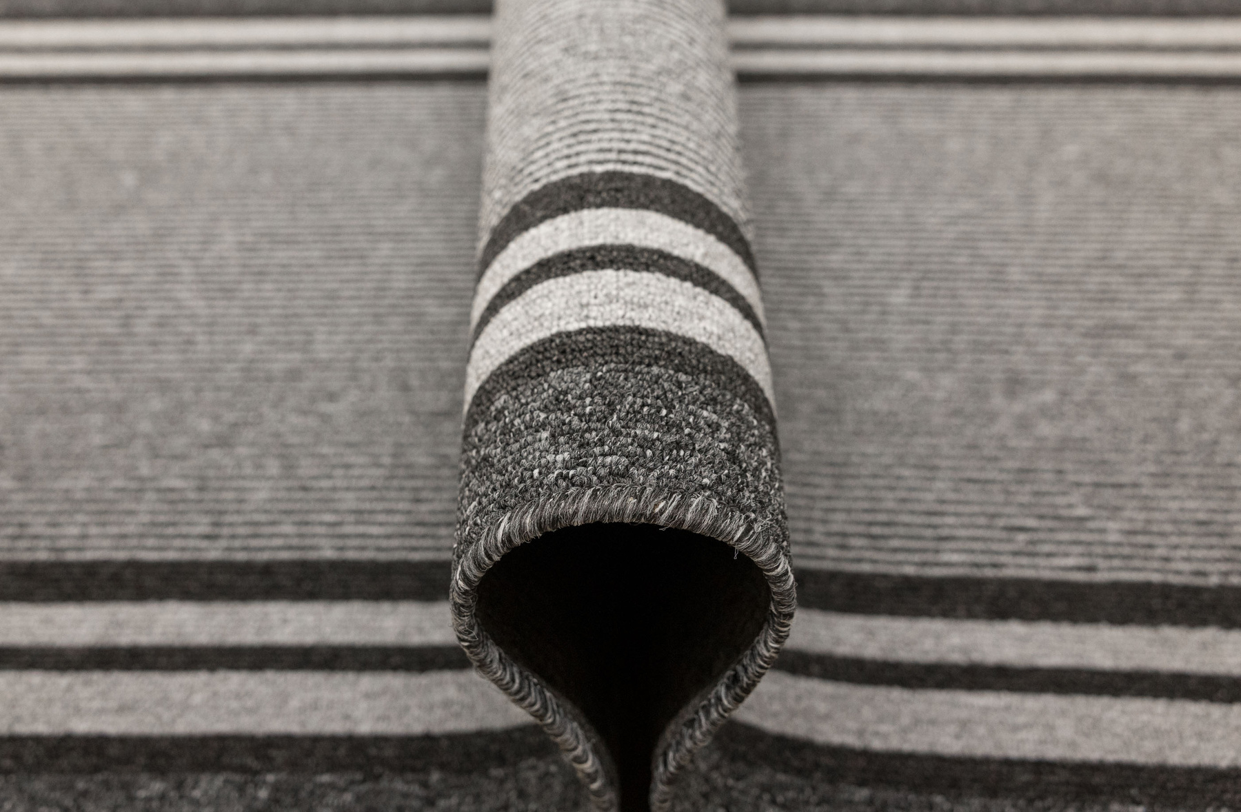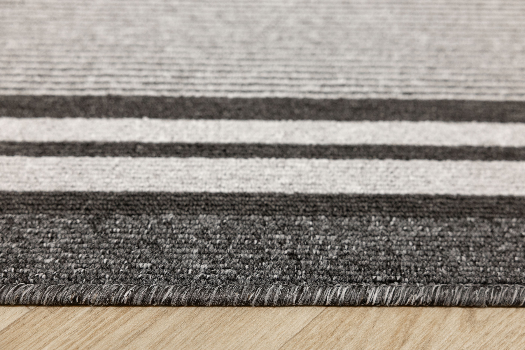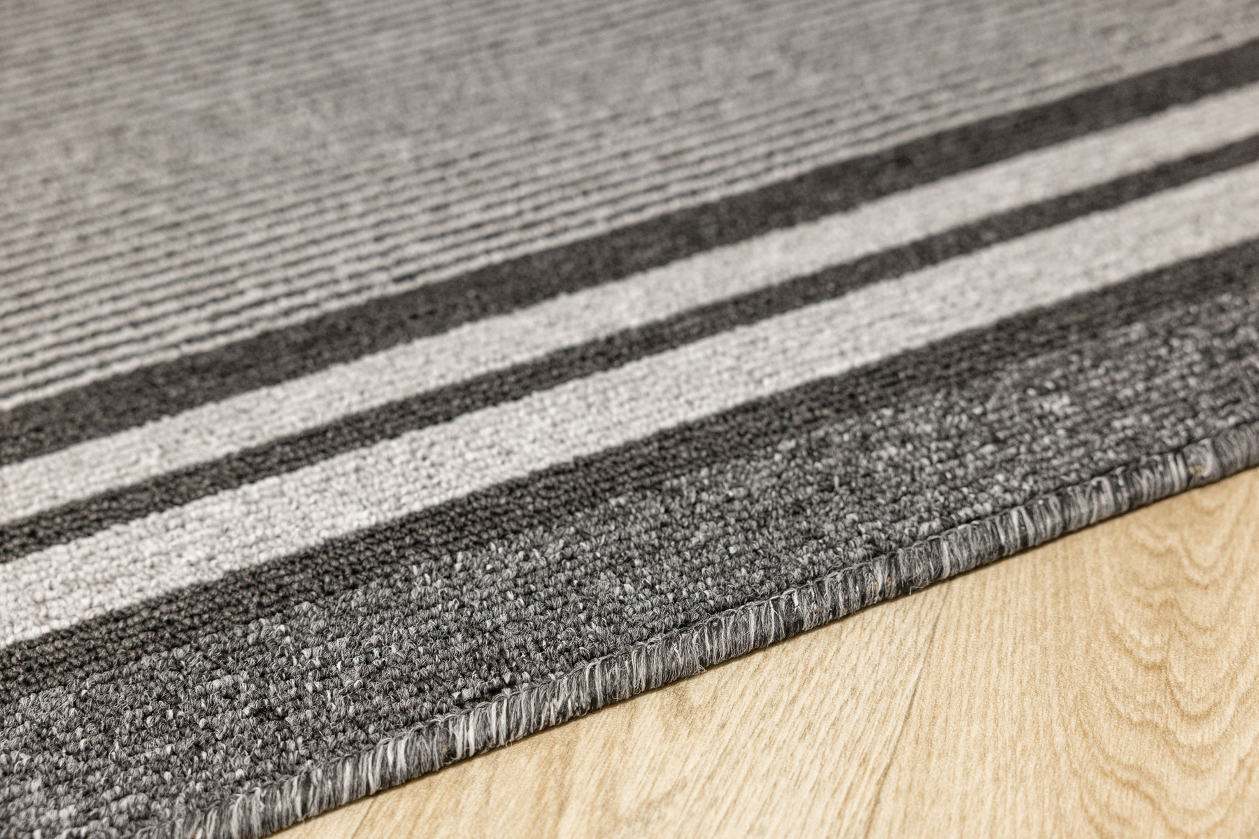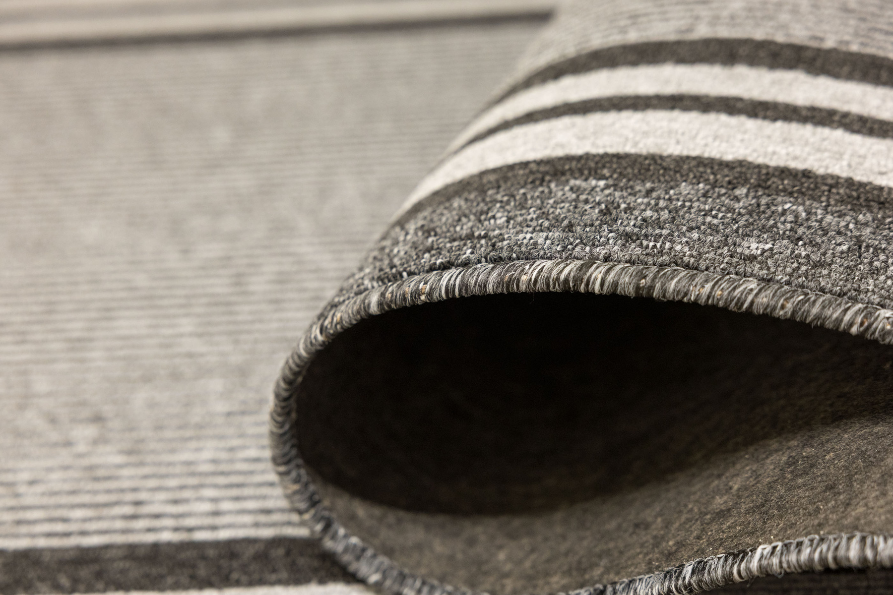 - Chodnik sznurkowy Colorado z minimalistycznym, geometrycznym wzorem z motywem pasków, linii w odcieniach szarości z filcowym podkładem typu ECO Grip o antypoślizgowych właściwościach.