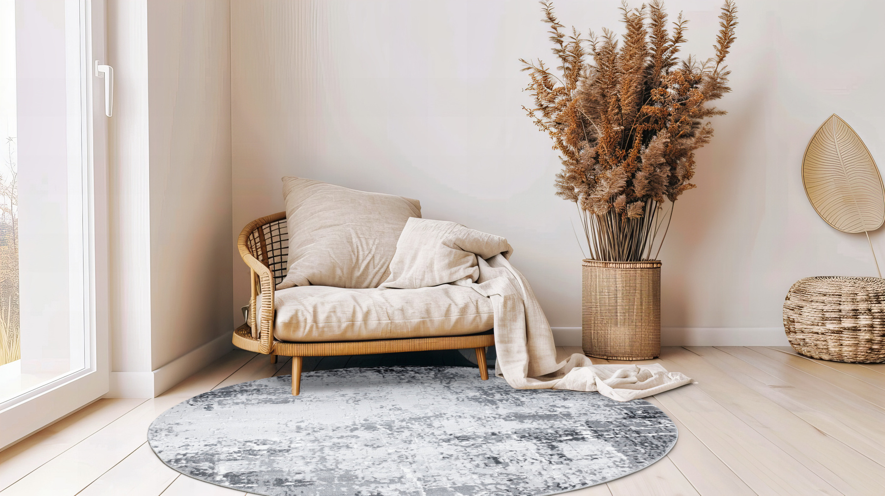 Dywan okrągły Nantes to wyjątkowy dodatek do aranżacji wnętrz, łączący w sobie nowoczesność i elegancję.