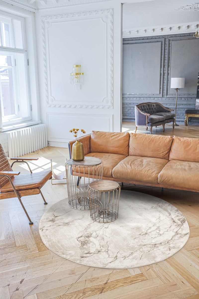 Okrągły Dywan Nantes NT071A Vizon/Vizon Szarobeżowy Marmur
