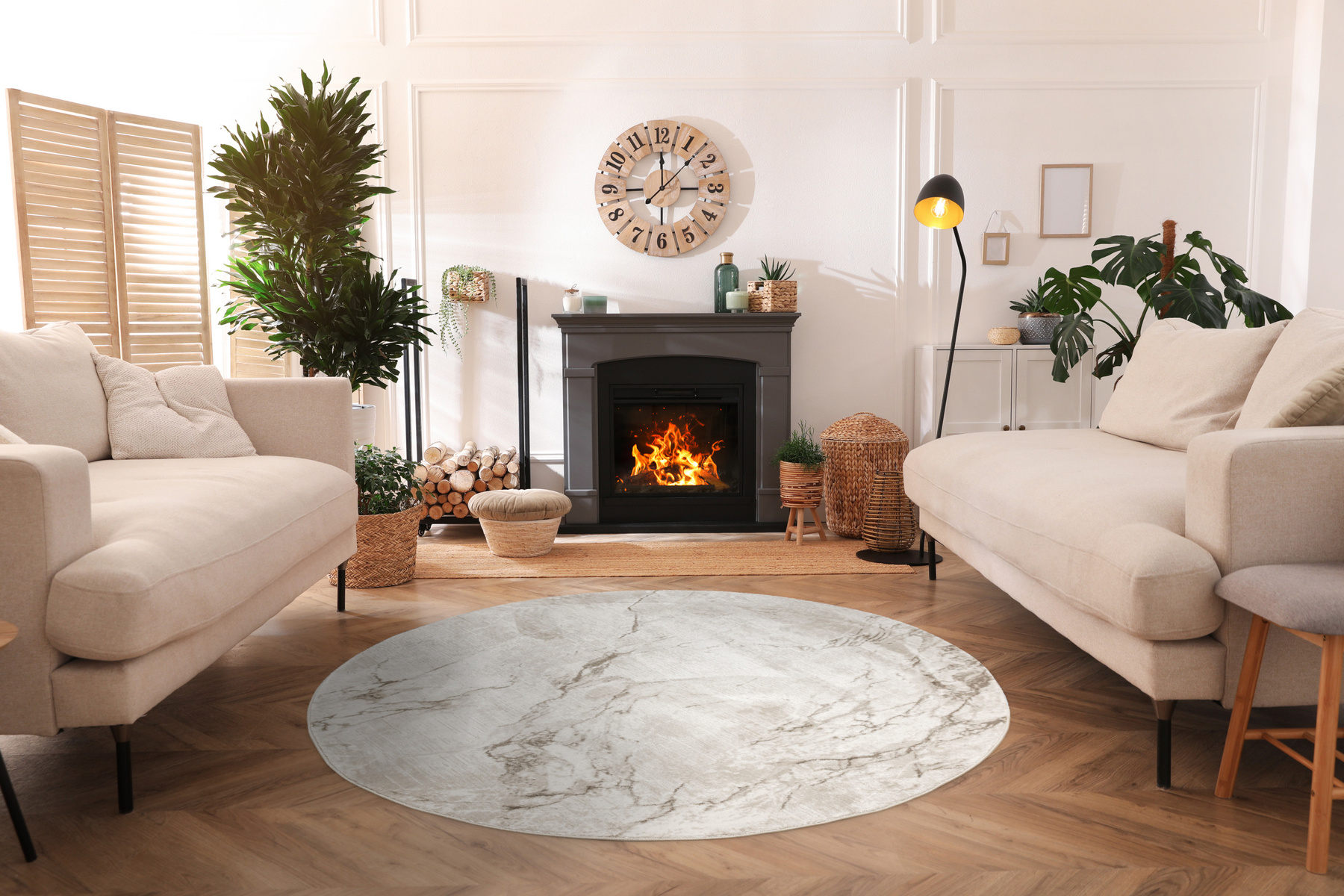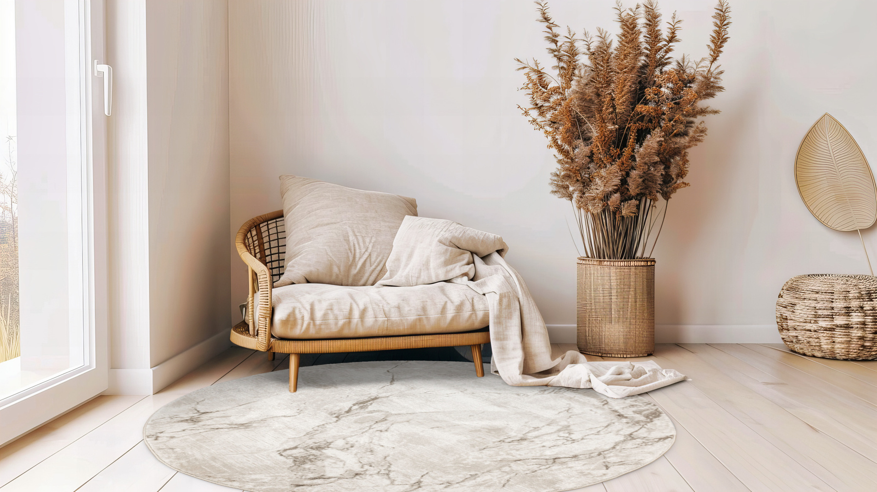 Dywan okrągły Nantes to wyjątkowy dodatek do aranżacji wnętrz, łączący w sobie nowoczesność i elegancję.