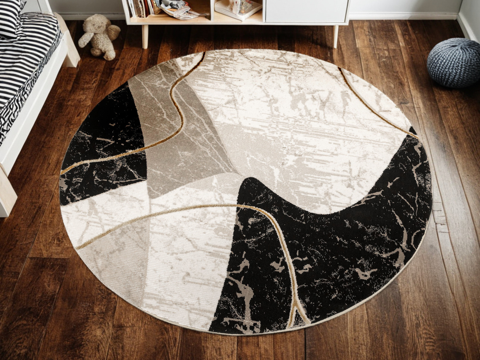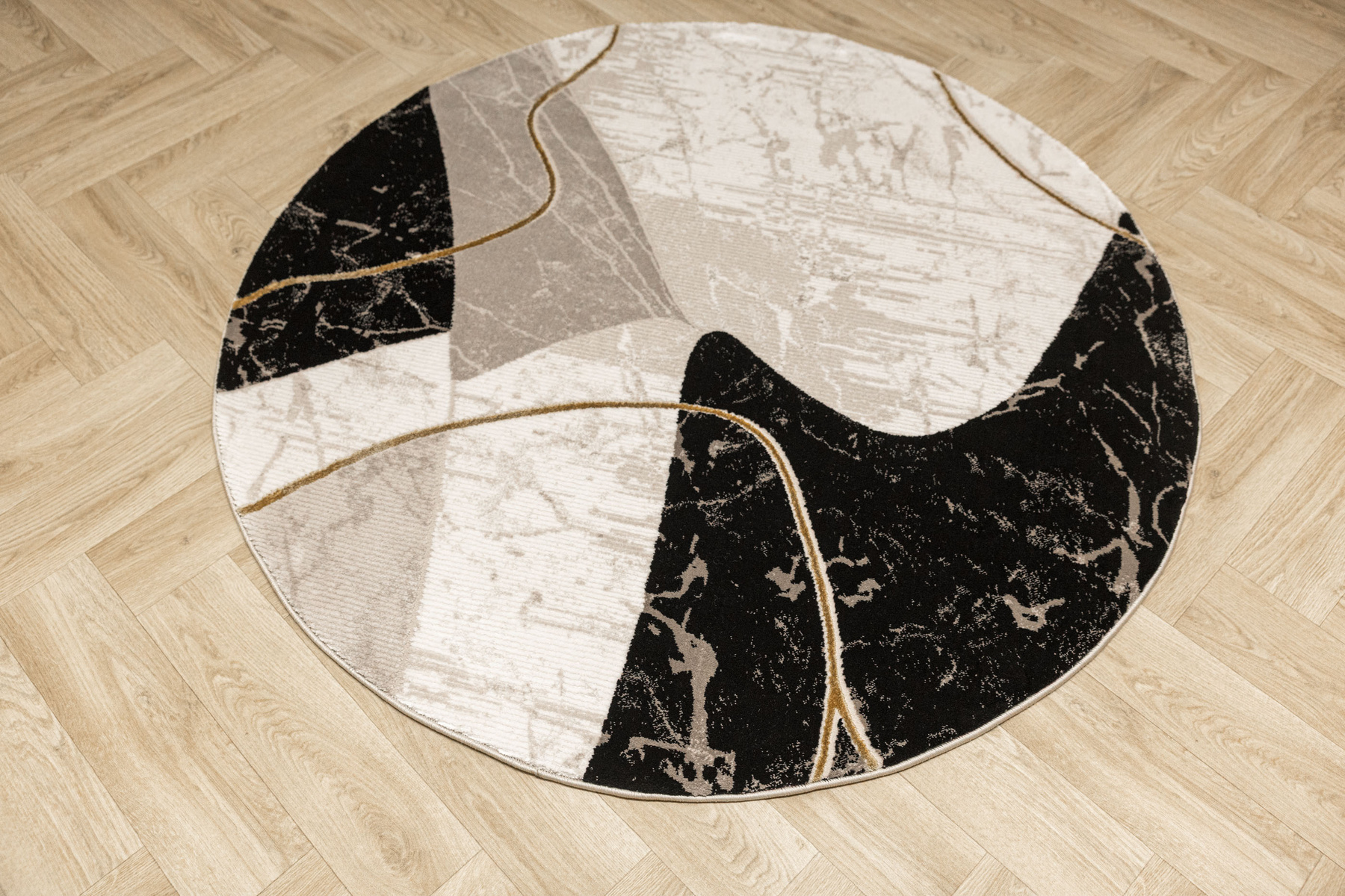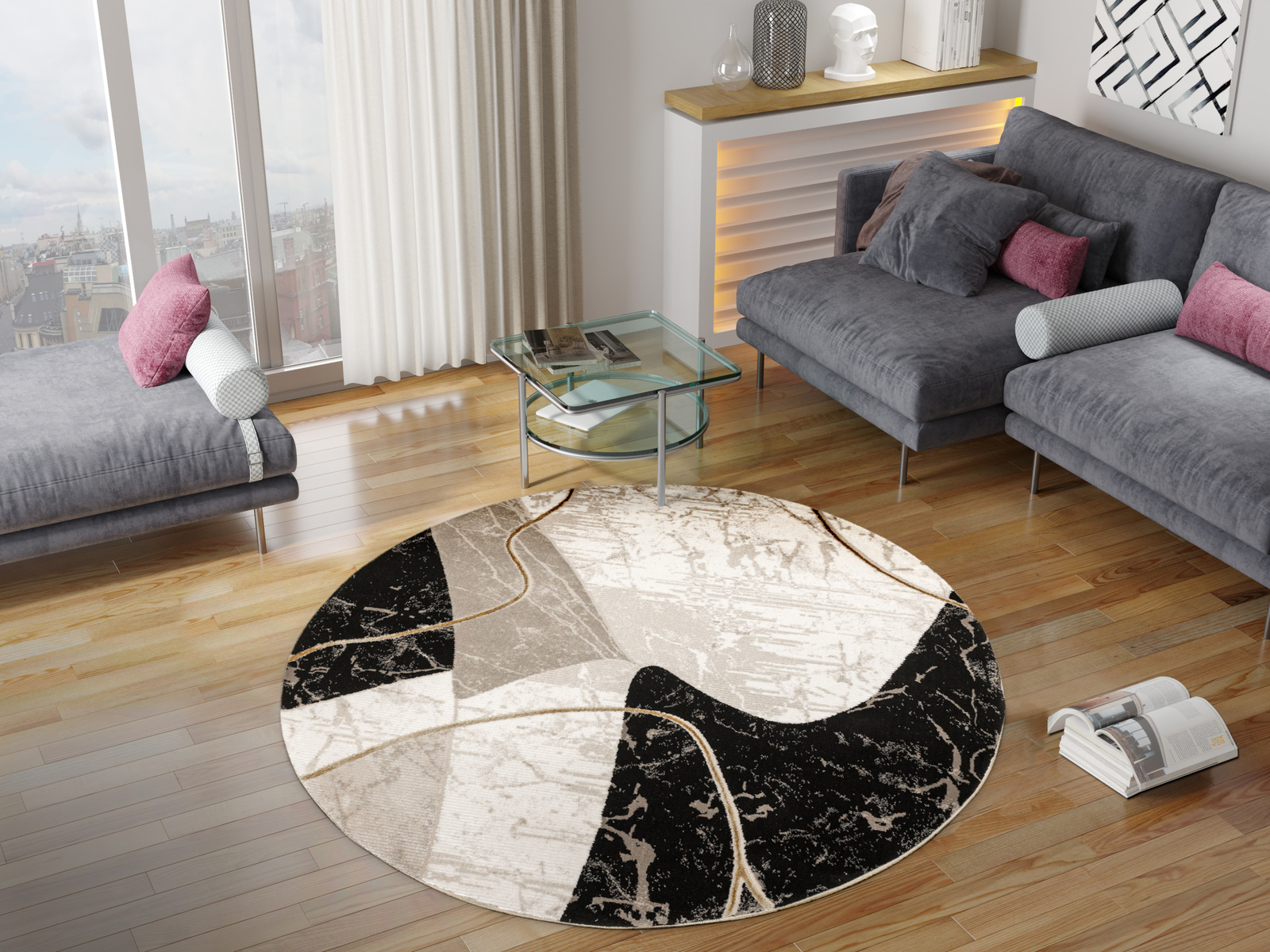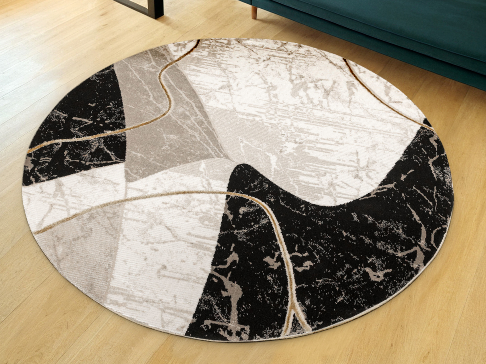 Okrągły Dywan Kashmir KR205S Black/Vizon Marmur Czarny Złoty