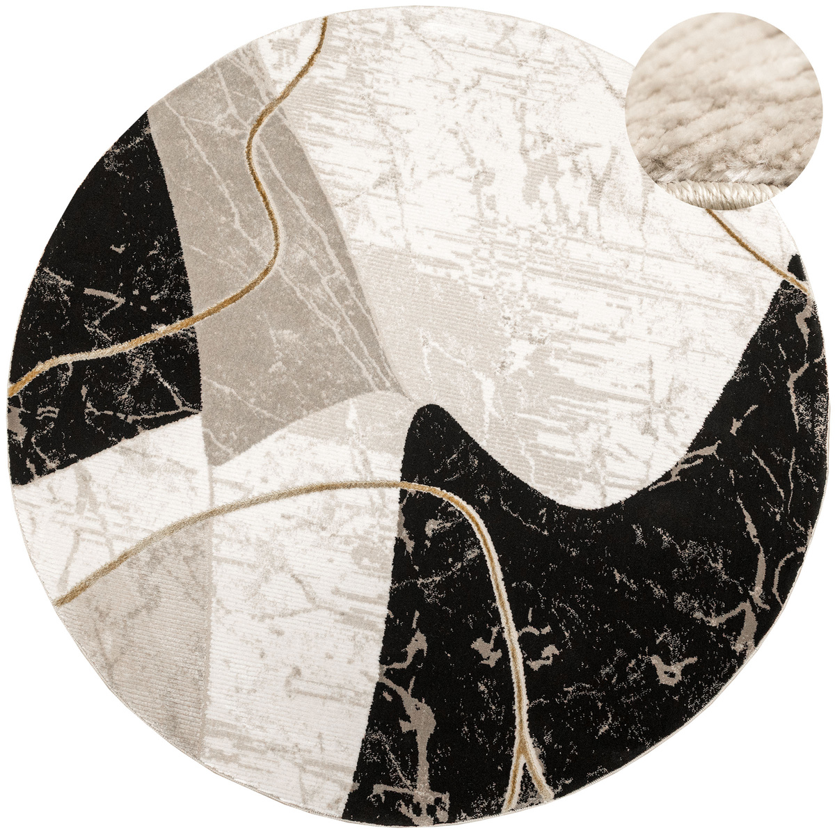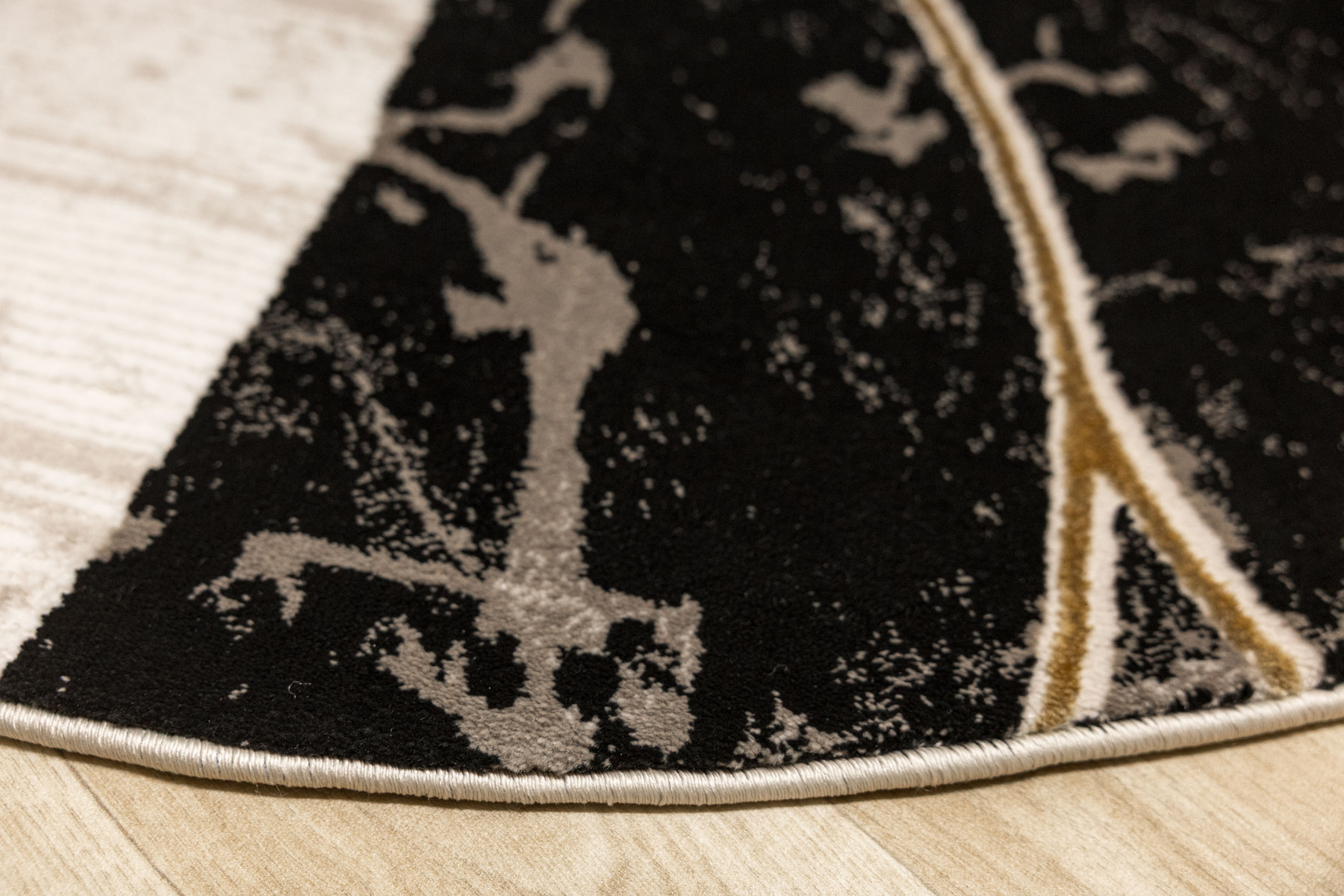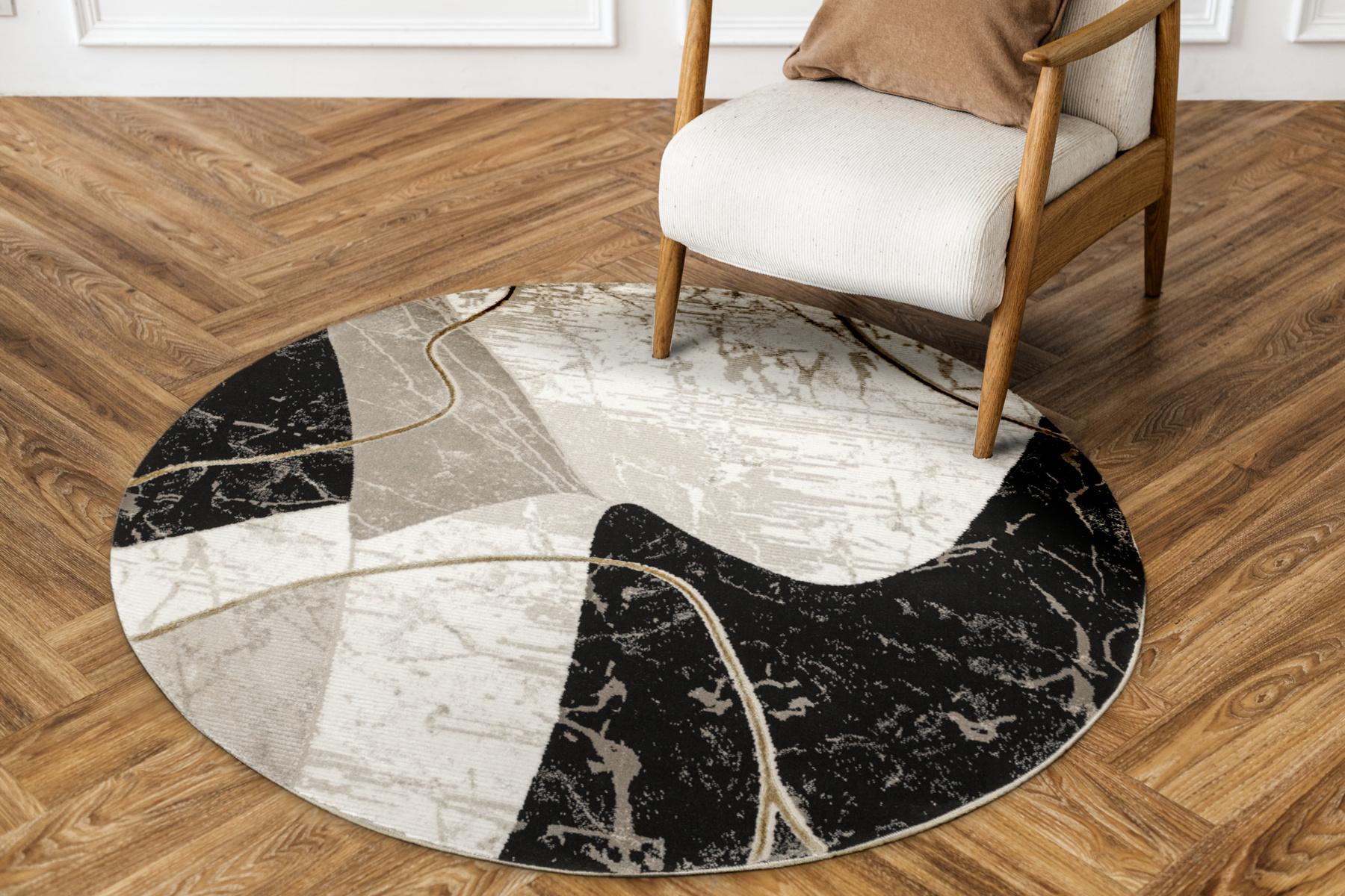 Okrągły Dywan Kashmir KR205S Black/Vizon Marmur Czarny Złoty